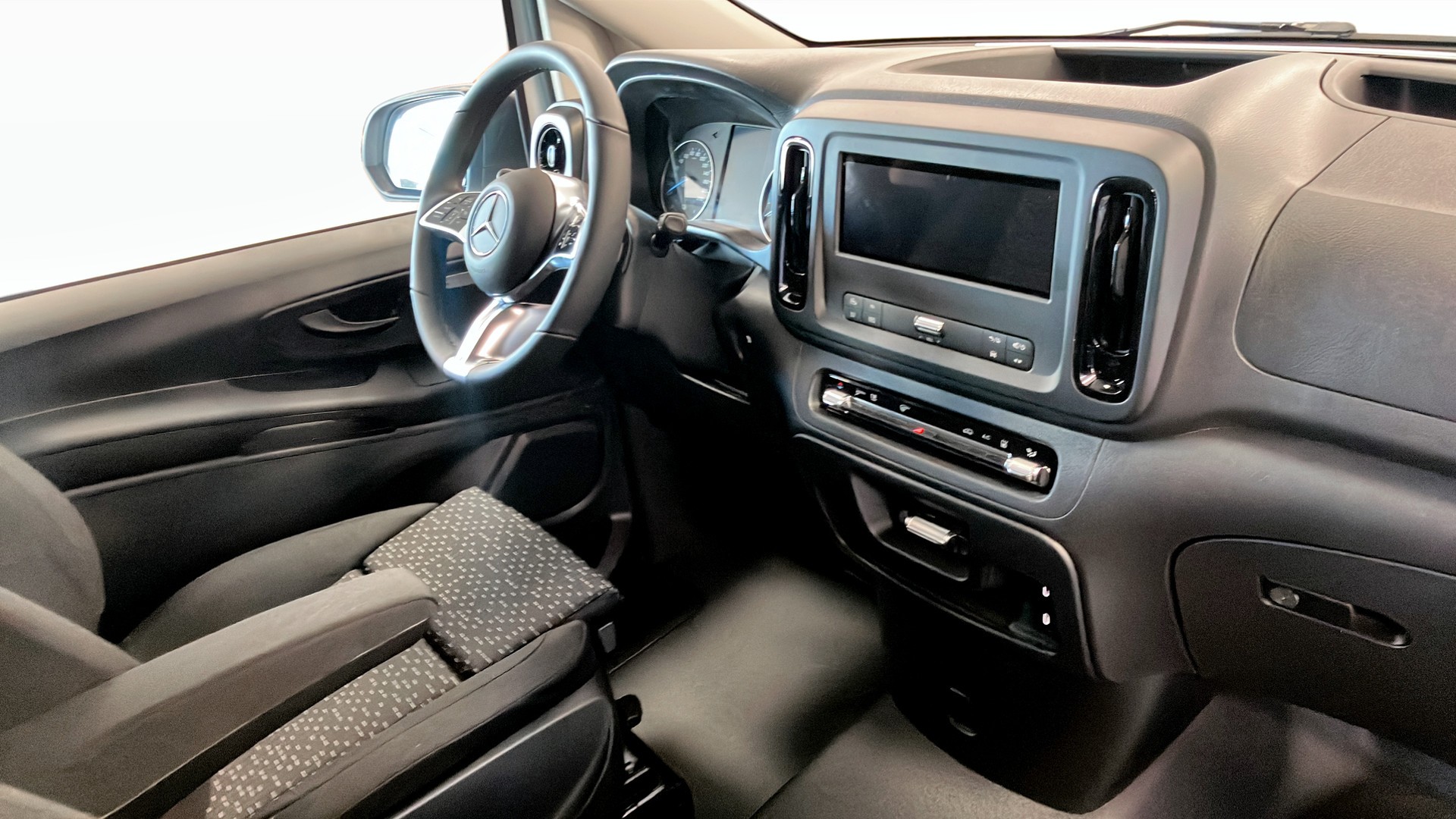 Bilen är fabriksny med 0 mil och välutrustad med bland annat backkamera, MBUX multimediasystem, farthållare, aktiv bromsassistent, dödvinkelassistent, uppvärmda stolar, klimatanläggning, smartphone-integration och trägolv i lastutrymmet. Praktiska bakdörrar med 180 graders öppning gör lastning och lossning enkel i vardagen.