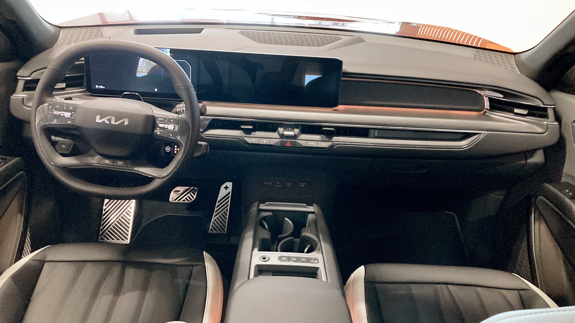 Med en räckvidd på upp till 505 km enligt WLTP och fyrhjulsdrift erbjuder denna bil bekvämlighet och säkerhet för både stadskörning och längre resor. Den stilrena karossen i färgen Flare Red Metallic förstärker bilens kraftfulla närvaro, medan de 21-tum stora aluminiumfälgarna ger en sportig finish. Invändigt möts du av en högteknologisk miljö med två 12,3-tumsskärmar plus en extra 5,3-tumsskärm, veganläderklädsel och läckra GT Line-detaljer.