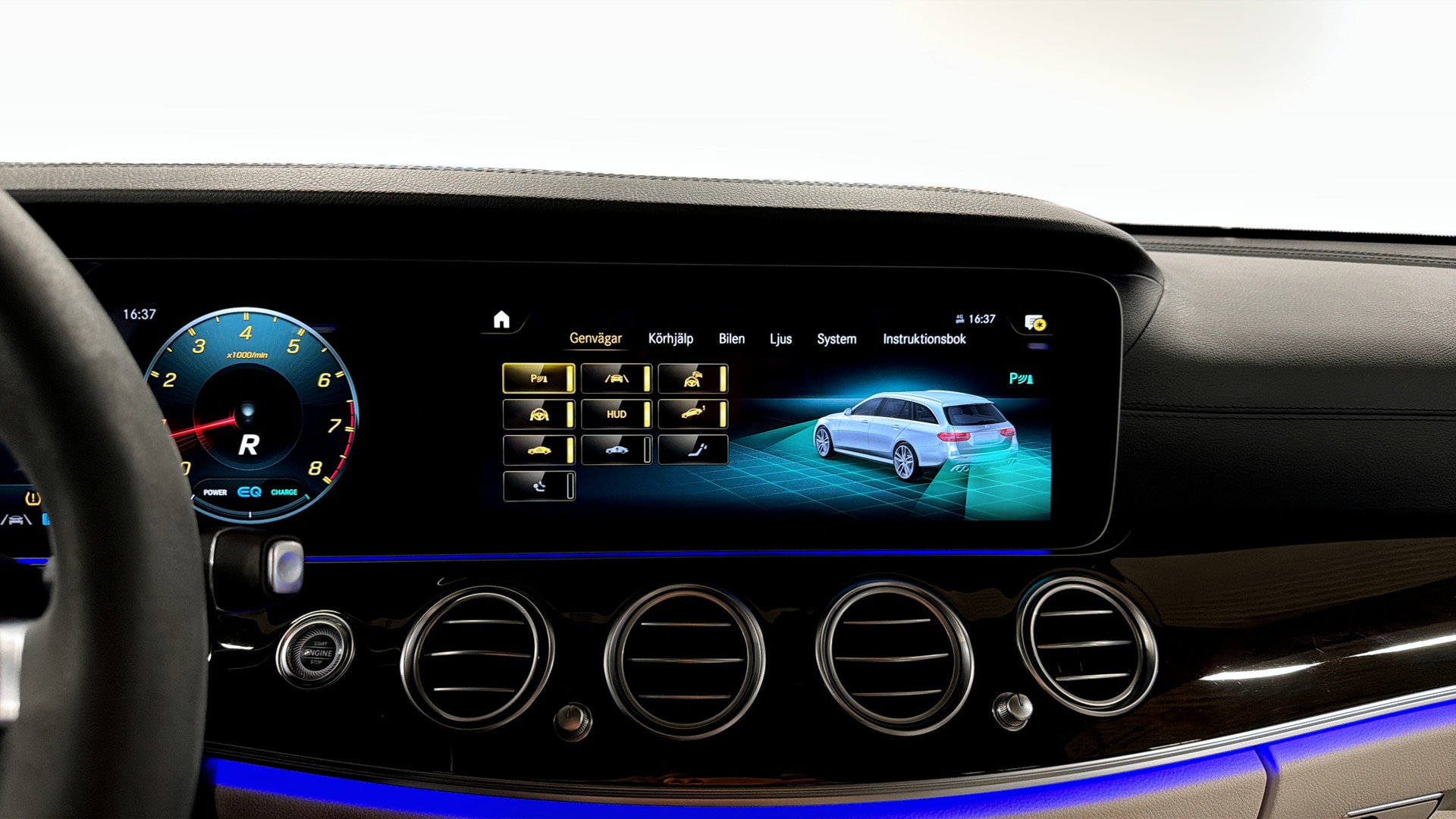 Burmester, Panorama glastak, Dragkrok, Trädekor, Ljus Nappaläder Klädsel, ventilation i framsäten, 360- graders kamera, Sportavgassystem, AMG Night package, Apple Carplay, Android Auto, Dynamiskt halvljus, Keyless-Go och mycket mer.