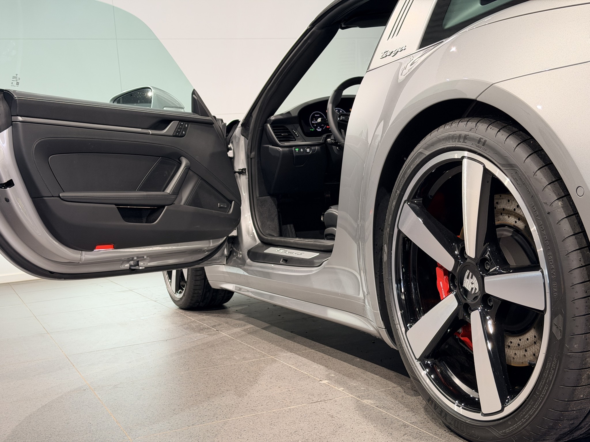 Den svarta suffletten tillsammans med läderinteriör med sömmar i Crayon ger bilen ett exklusivt och sportigt uttryck. En mycket välutrustad 911 Targa 4S för dig som söker något utöver det vanliga.