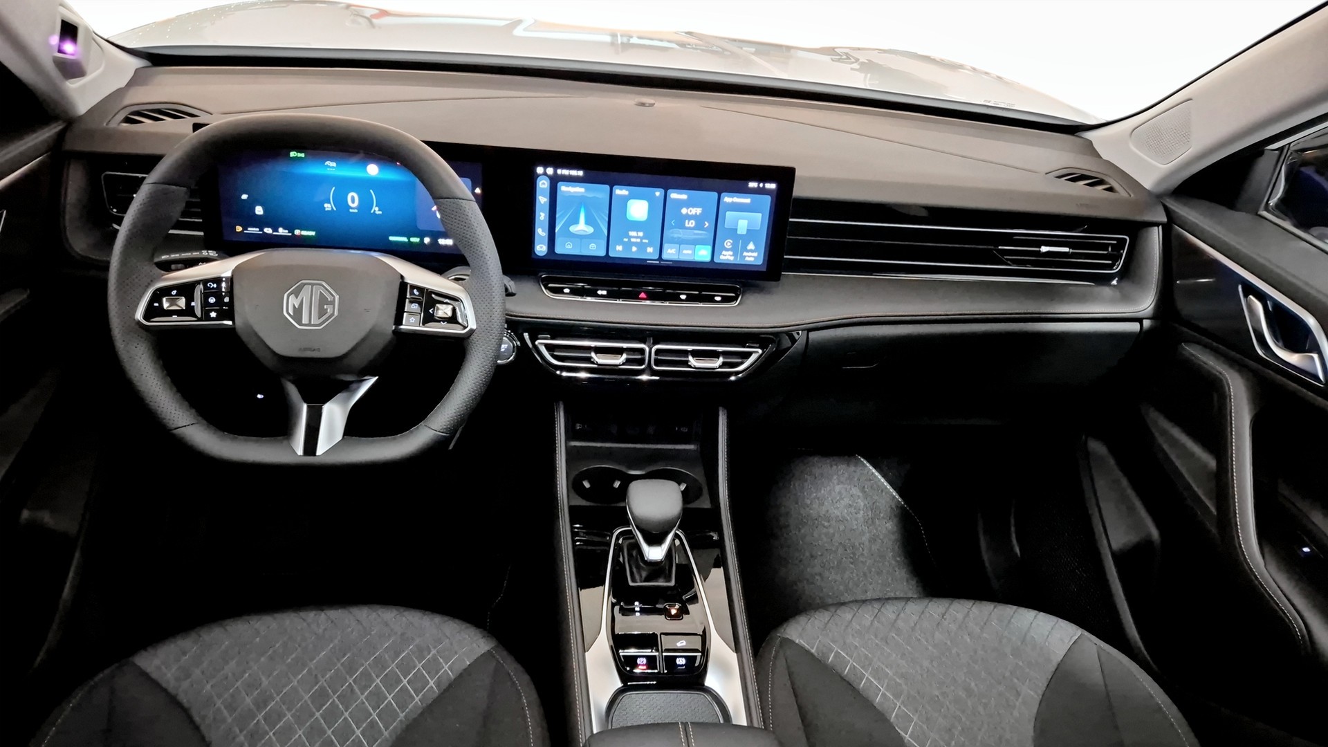 Infotainmentsystemet har HD-skärm med navigation, Bluetooth, Apple CarPlay och Android Auto samt appstyrning via MG iSmart, så du kan t.ex. förvärma bilen via mobilen.