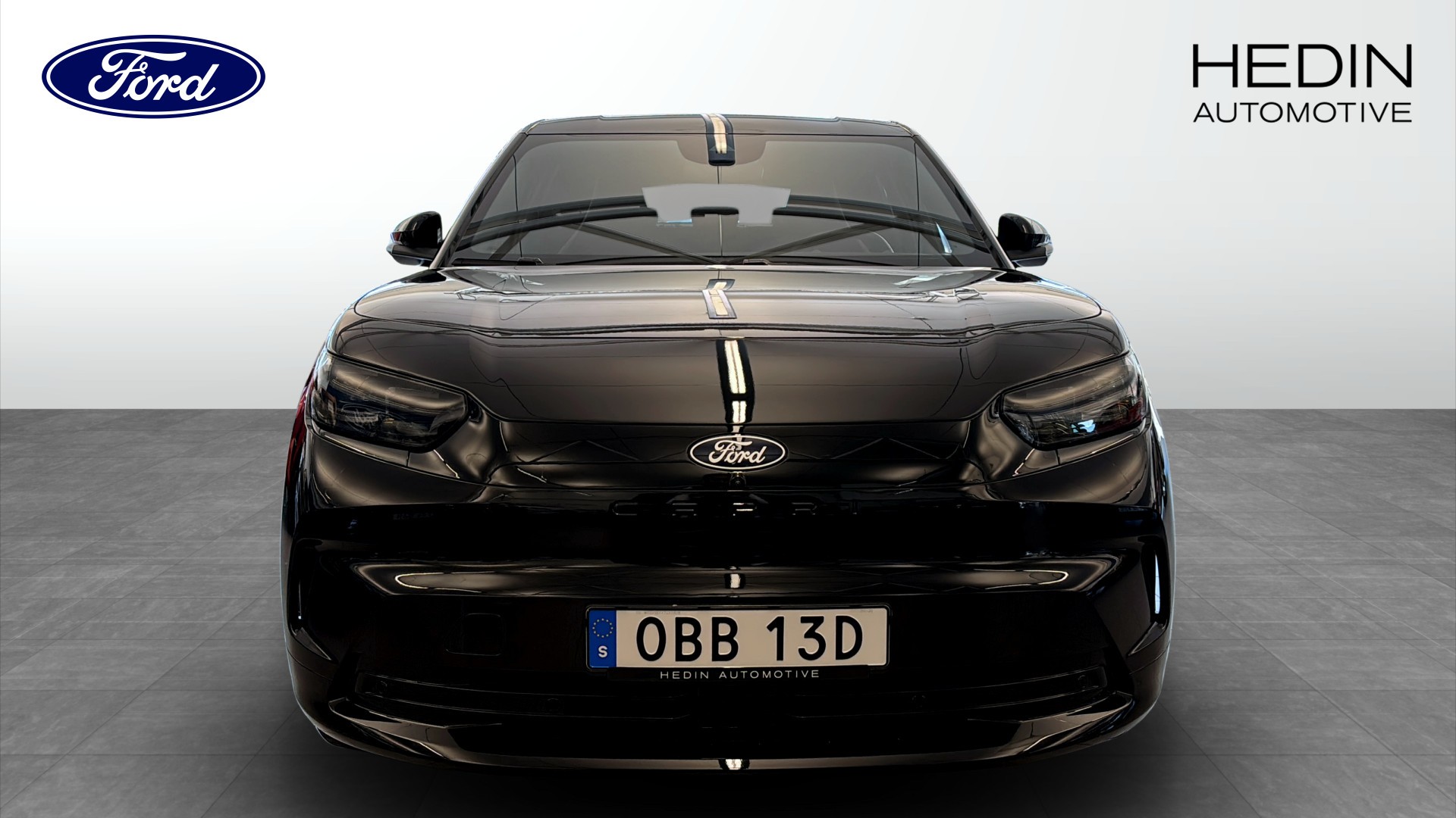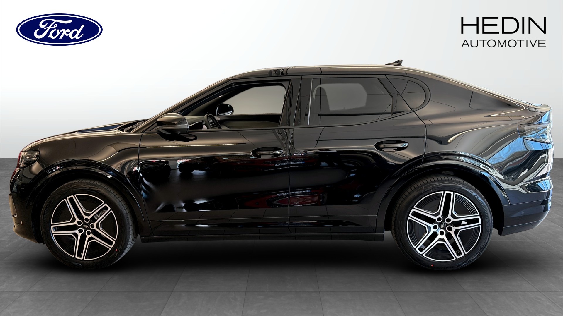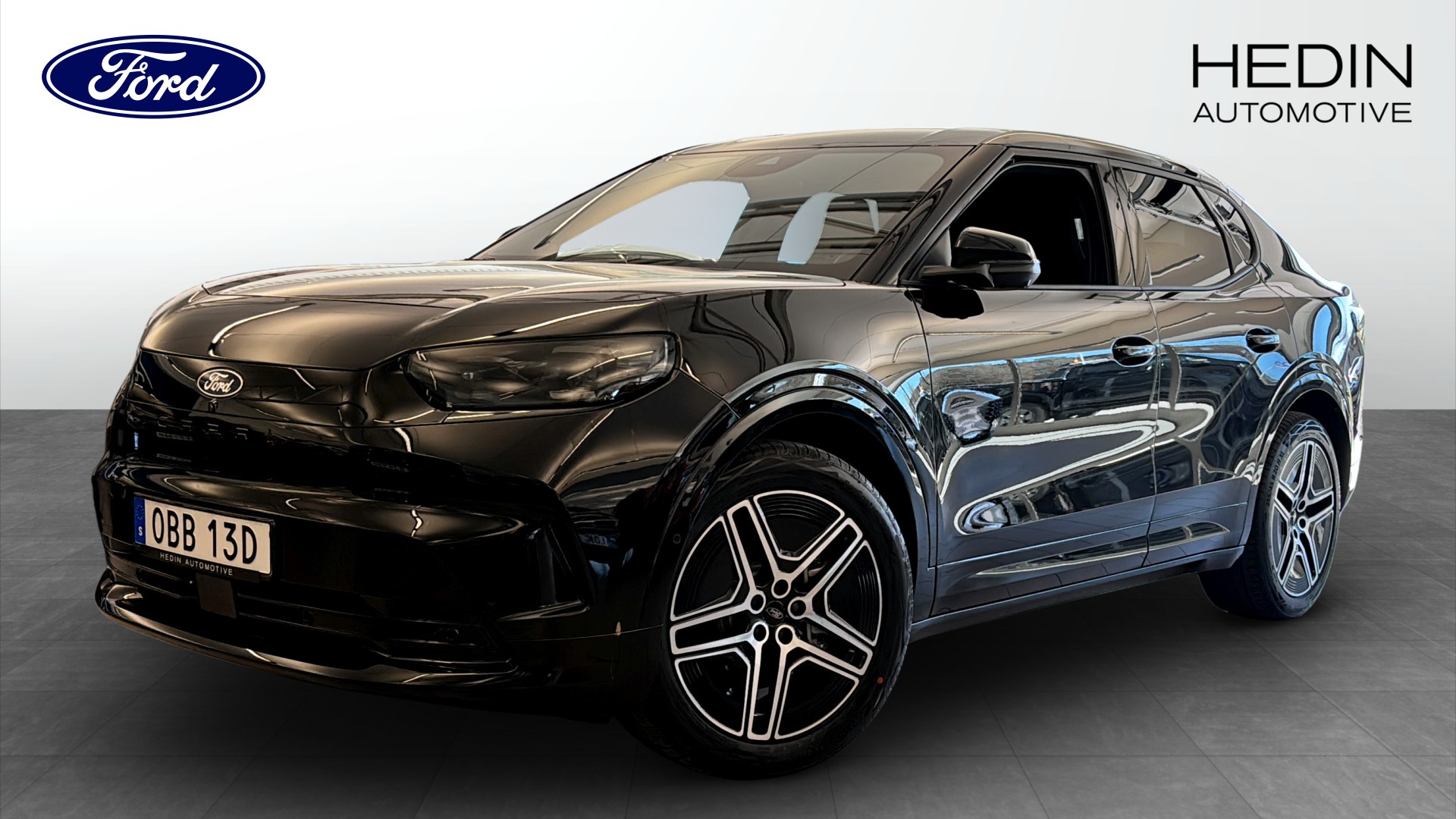 Ford Capri med Premium Long Range RWD Business Edition, årsmodell 2025, i stilren svart metallic. Detta är en demo med endast 400 mil och erbjuder en riktigt stark kombination av räckvidd, komfort och modern teknik.
