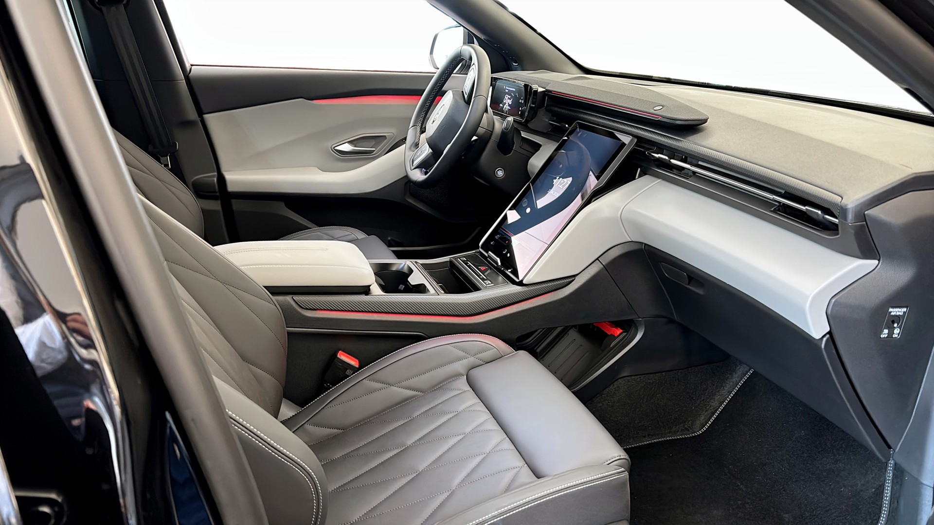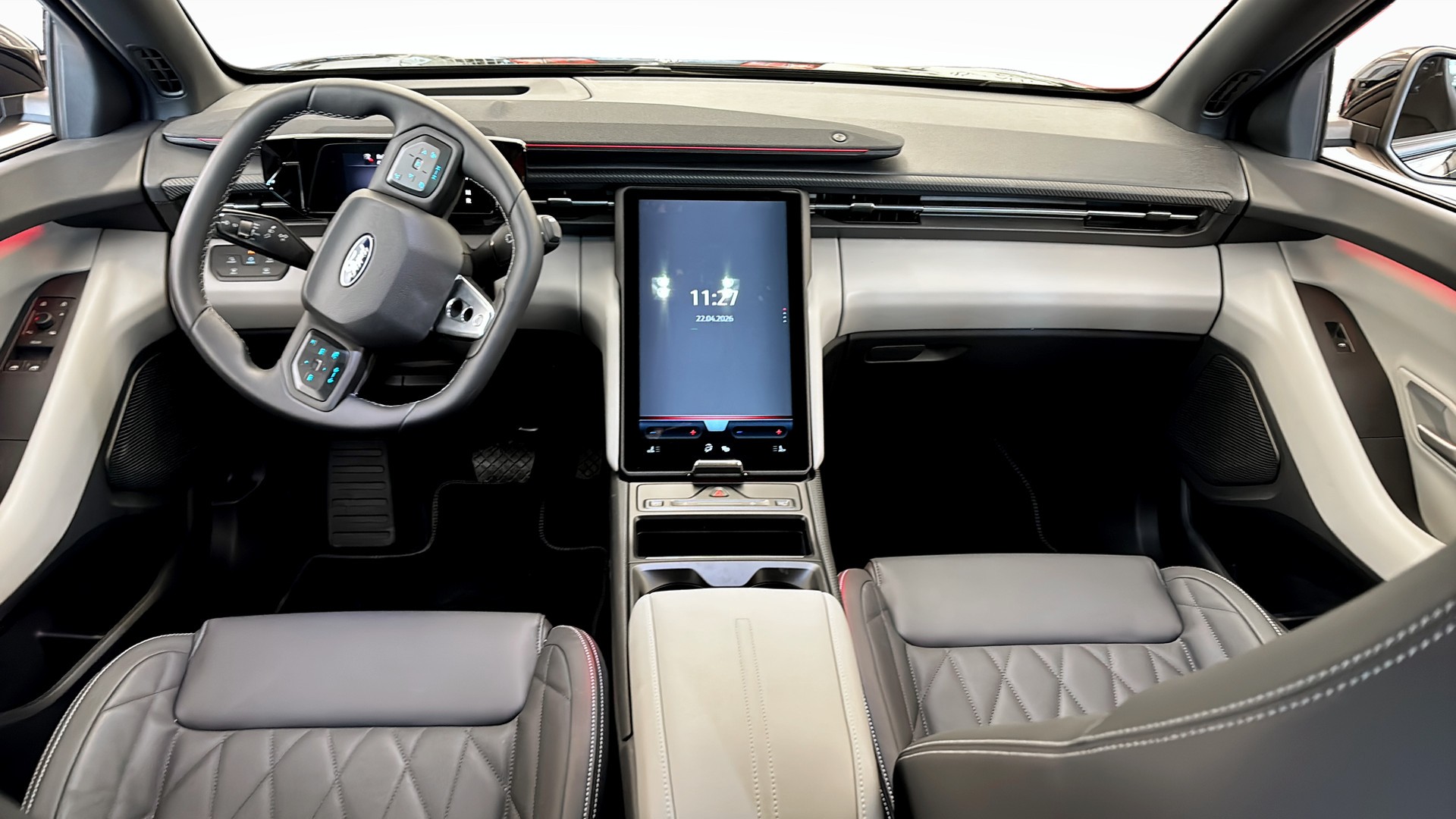 Bilen är välutrustad med bland annat helskinn, massagestolar, head up-display, 360-kamera, adaptiv farthållare, elutfällbar dragkrok, handsfree-baklucka, rattvärme, trådlös laddning samt Apple CarPlay och Android Auto. Här får du dessutom flera smarta förarassistanssystem som döda vinkel-varning, körfilsassistans och autobroms.
