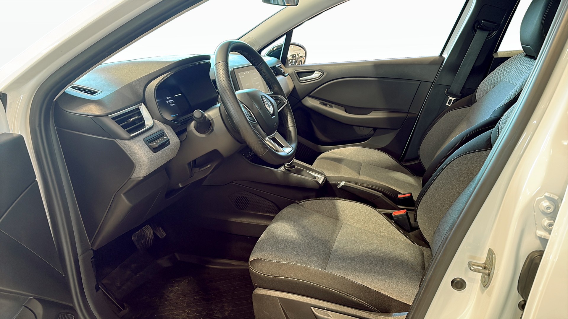 Renault Clio HEV 145 Evolution 2024 i snyggt utförande Vit Glaciär – en småbil med modern hybridteknik och låg förbrukning. Perfekt för dig som vill kombinera smidighet i stan med komfort på längre resor.