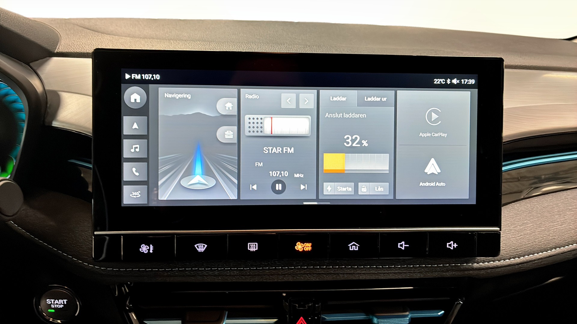 - Apple CarPlay, Android Auto, Bluetooth, navigation och appstyrning (iSmart light)