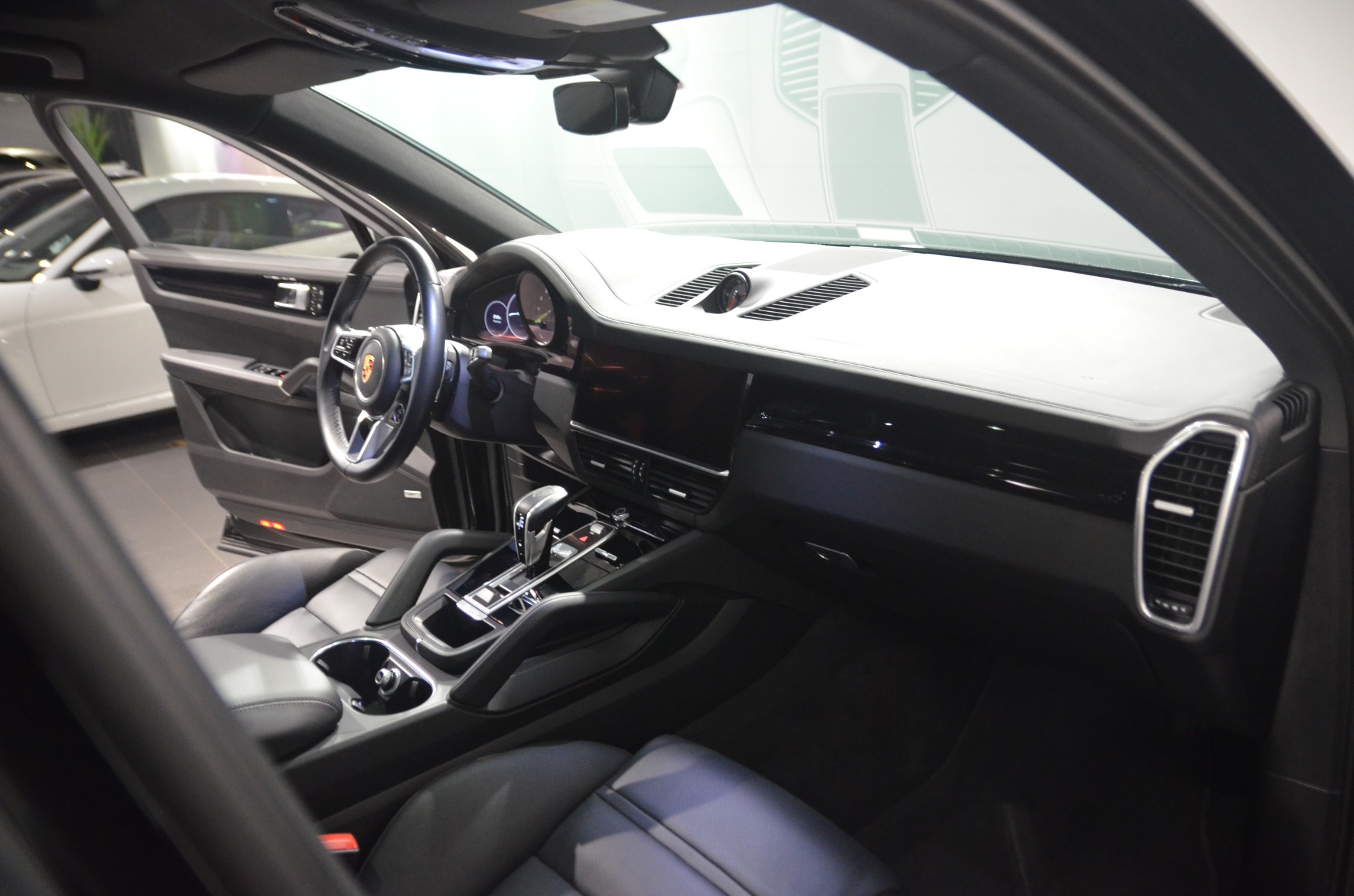 Det här exemplaret är mycket välutrustat med bland annat adaptiv luftfjädring, adaptiv farthållare, head-up display, 18-vägs adaptiva sportstolar, sätesventilation fram samt uppvärmda stolar fram och bak. Dessutom får du Park Assist med Surround View, Lane Change Assist, tonade LED-strålkastare, SportDesign-paket i svart och 22-tums Cayenne Sport Classic-fälgar som verkligen lyfter bilens uttryck.