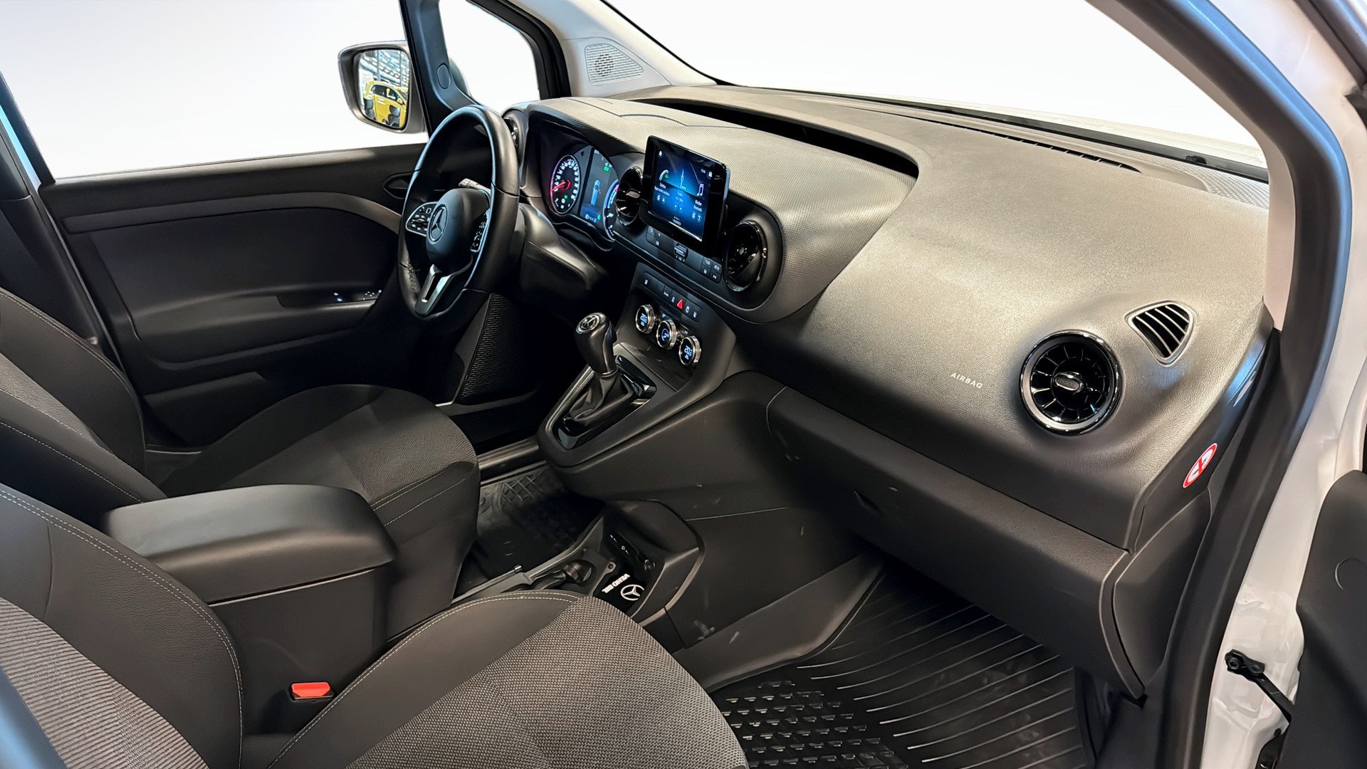 Invändigt får du MBUX multimediasystem med DAB, smartphoneintegration och hållare för telefon, multifunktionsratt samt justerbar ratt i höjd- och längdled. Säkerhets- och hjälpystem som ATTENTION ASSIST, farthållare, backkamera, ESP, ljus- och regnsensor samt Mercedes-Benz nödanropssystem bidrar till en trygg och smidig körning.