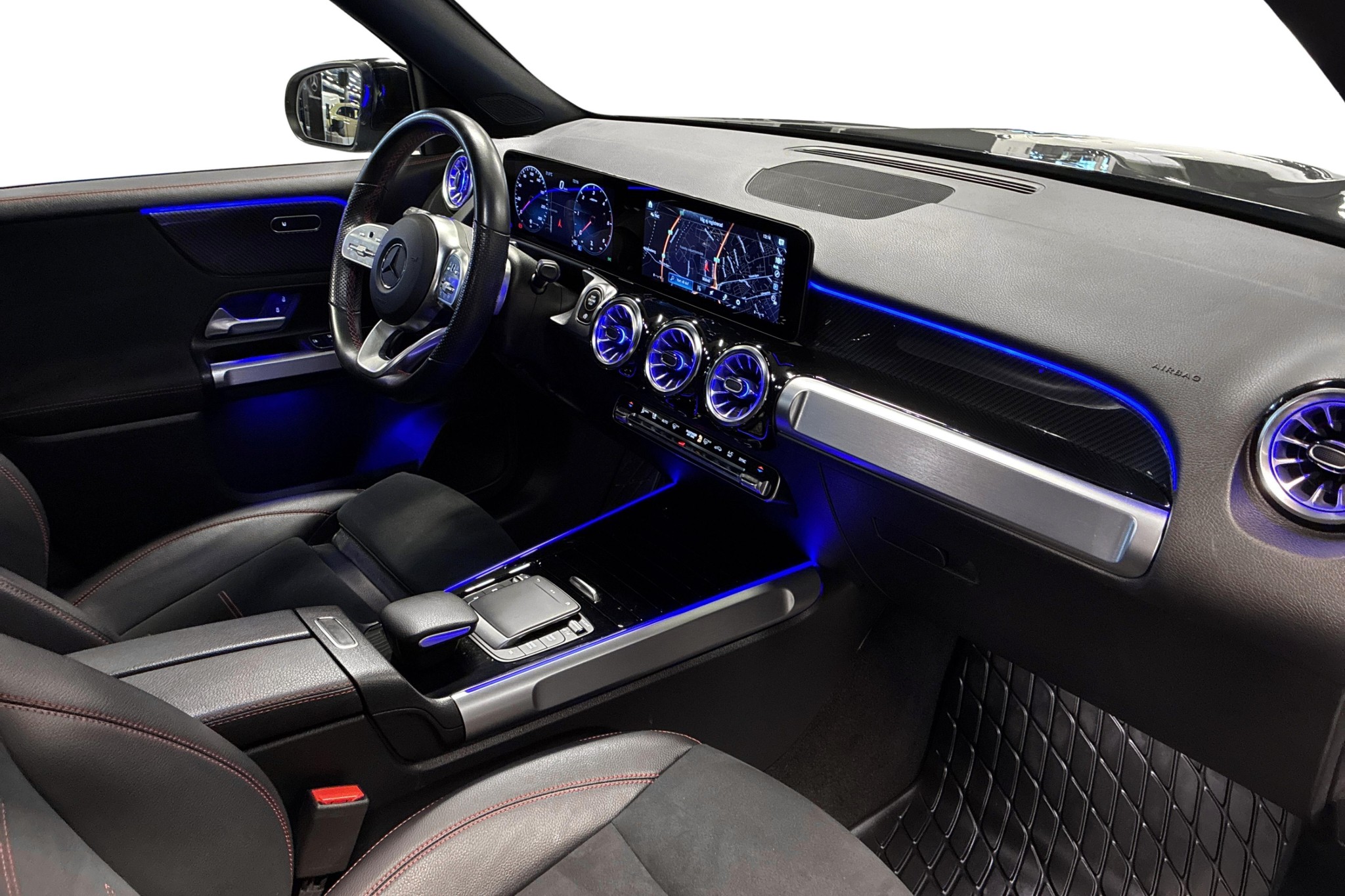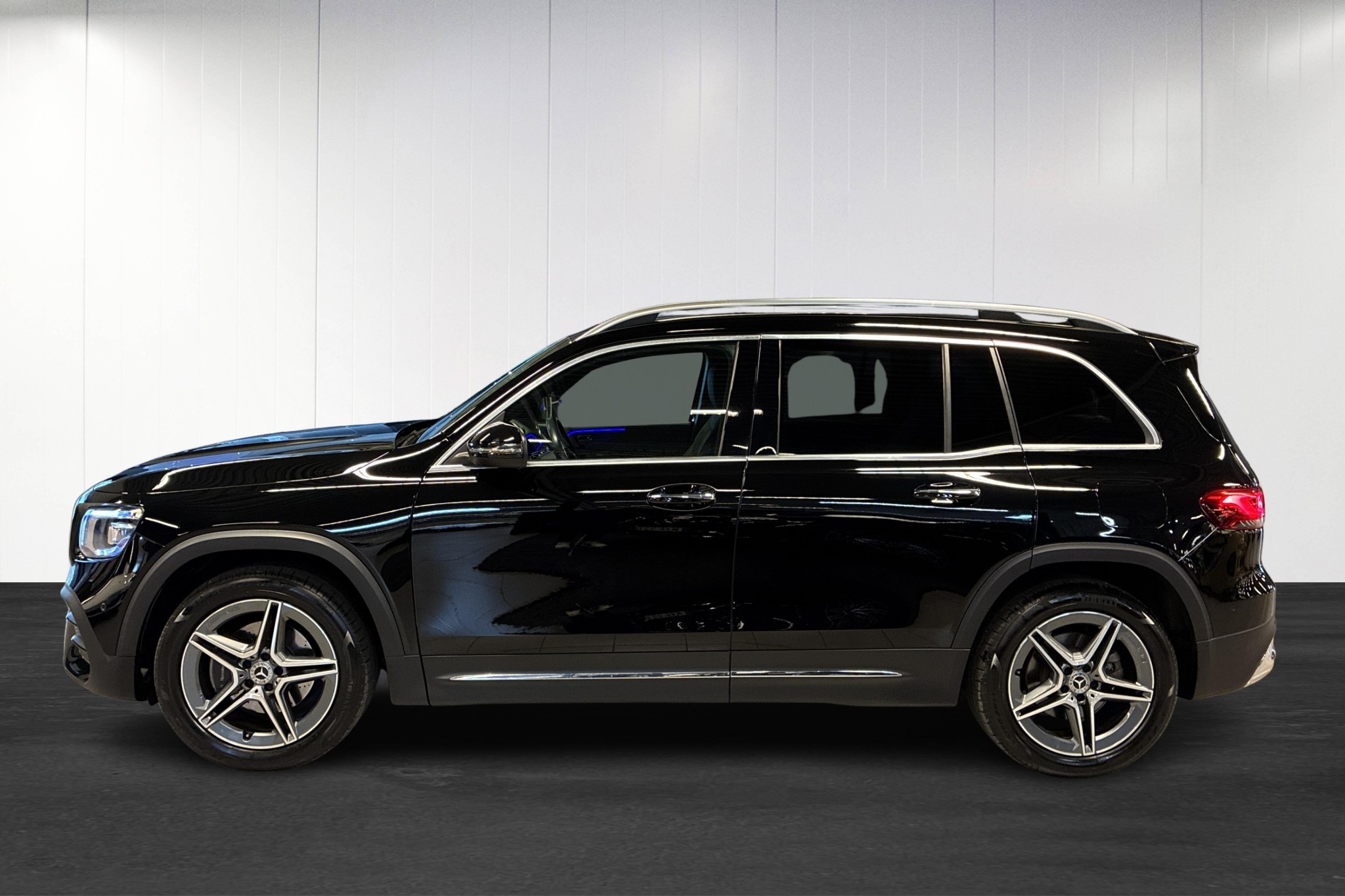 Mercedes-Benz GLB 200 d 4M AMG Line, 2023, i elegant nattsvart – en flexibel och lyxig SUV med sju sittplatser och fyrhjulsdrift. Endast ca 3900 mil på mätaren gör den i princip som ny.