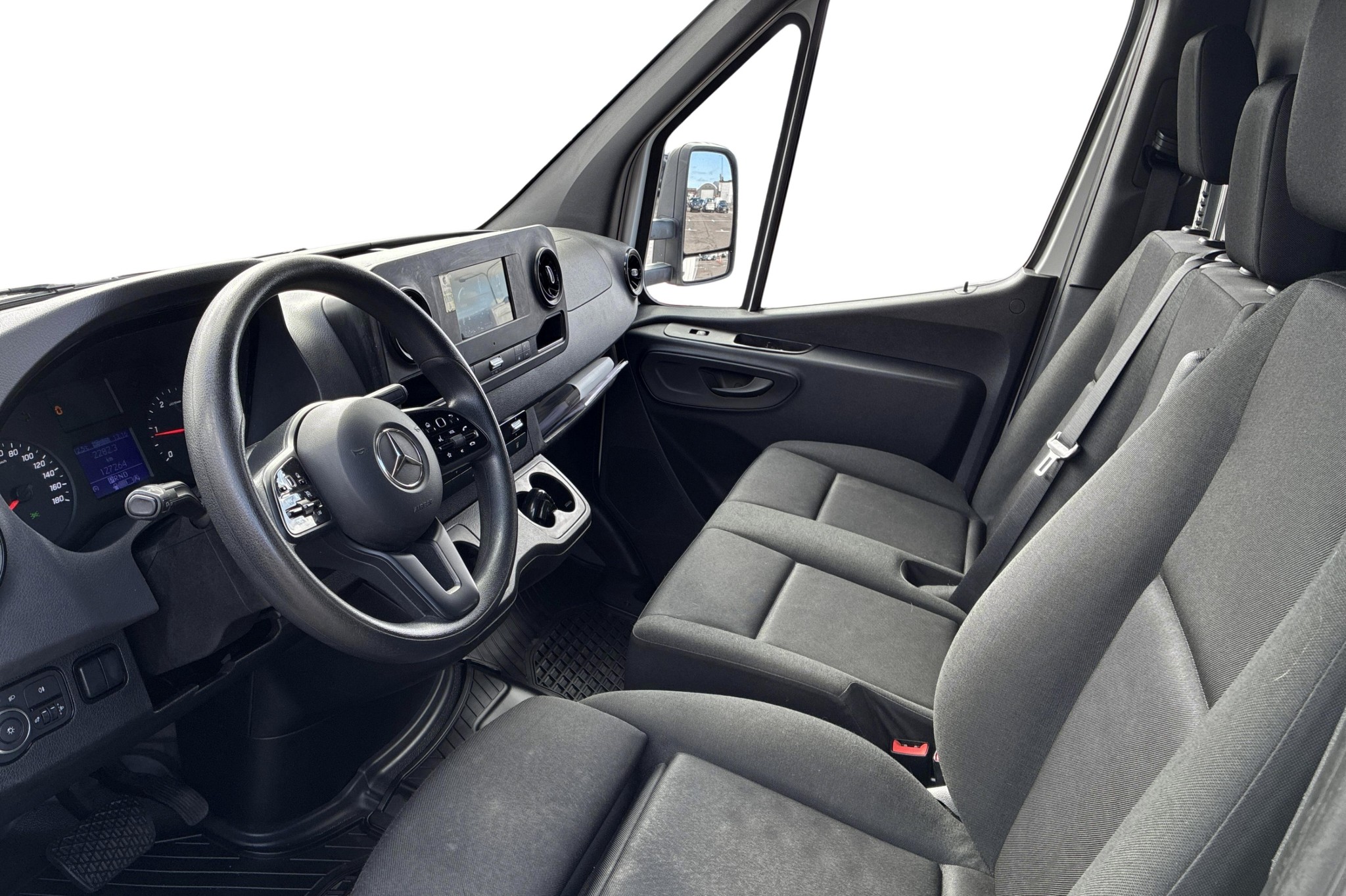 Föraren har det bekvämt i komfortförarsäte med armstöd och eluppvärmning, multifunktionsratt och MBUX-multimediasystem med 7” pekskärm, Bluetooth och digitalradio (DAB). Kupévärmare med tidur, hylla ovanför vindrutan, mugghållare och inklädd bakvägg bidrar till en praktisk och trivsam arbetsmiljö.