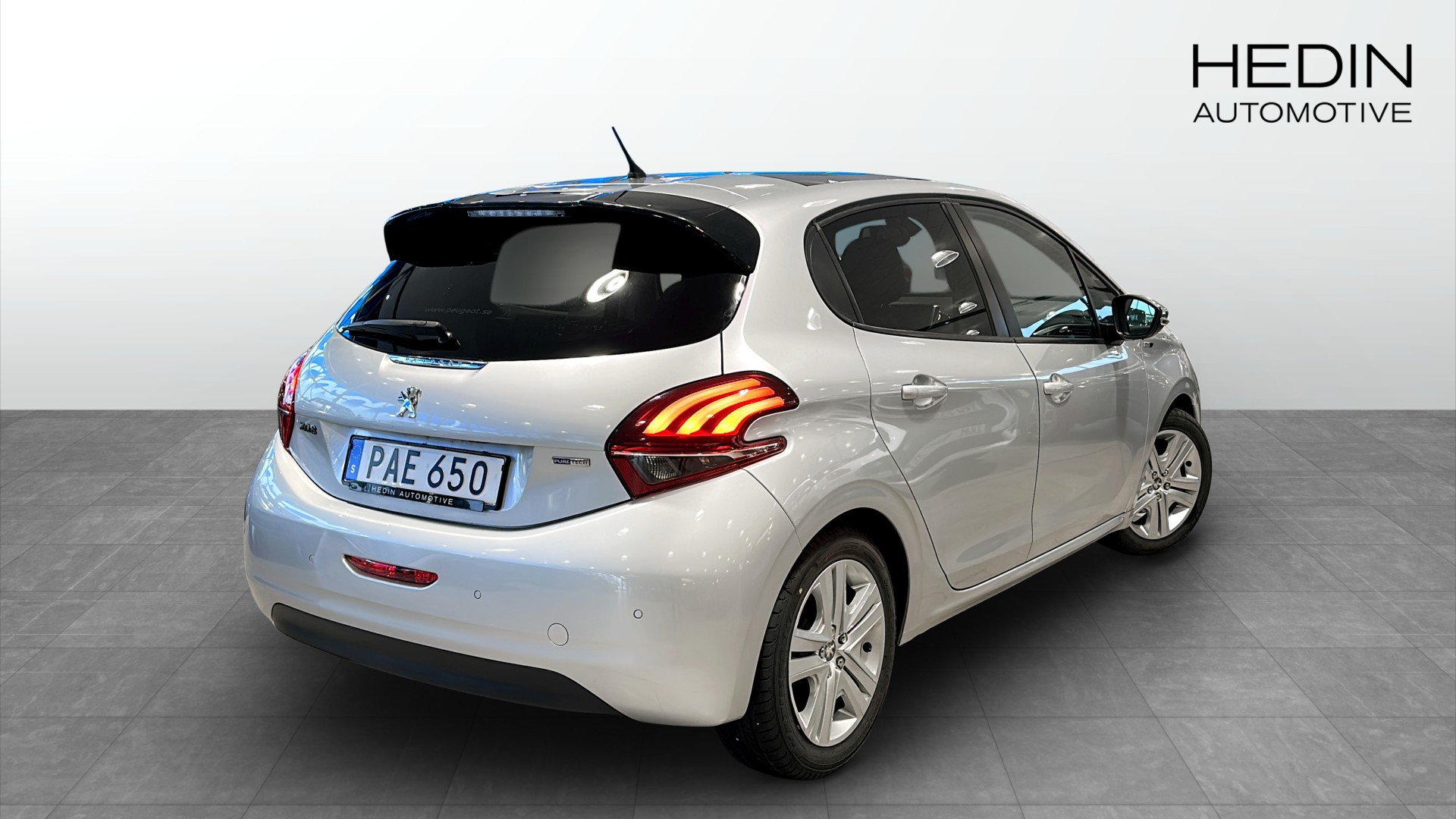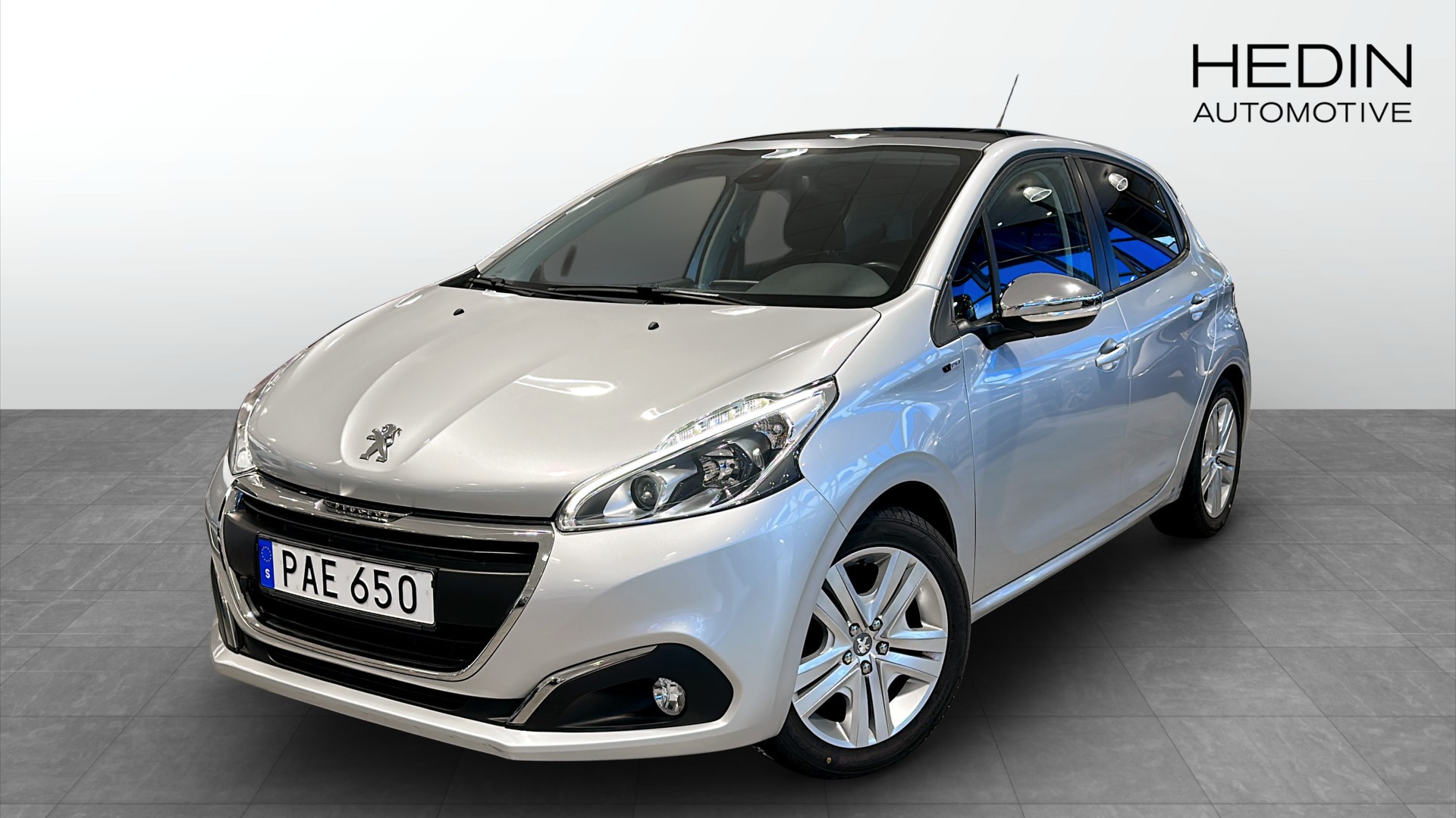 Peugeot 208 1.2 Style i snygg silverlack. En perfekt kombination av smidig stadsbil och bekväm pendlarbil med snål bensinmotor (från ca 4,3 l/100 km blandad körning) och manuell växellåda.