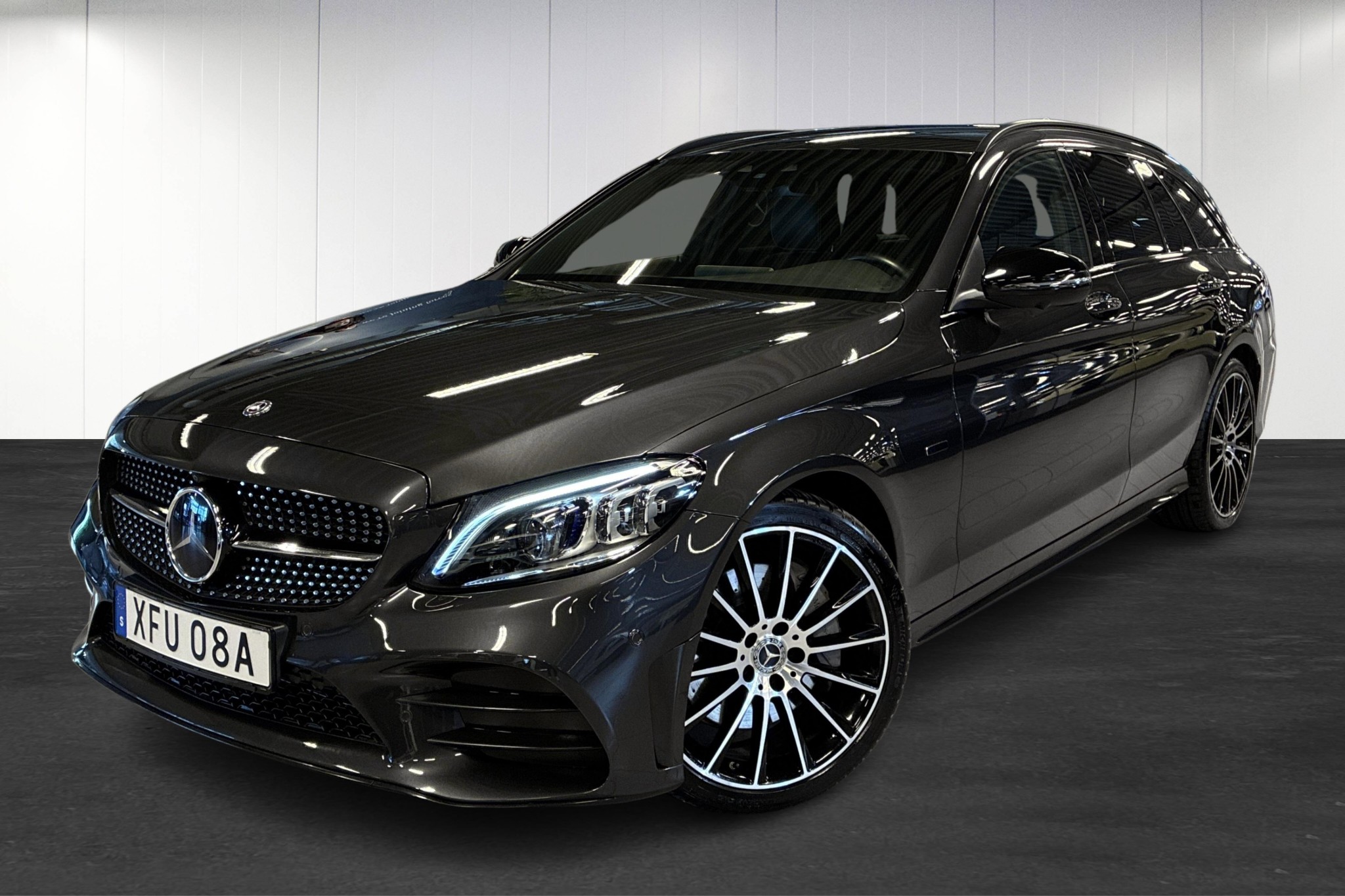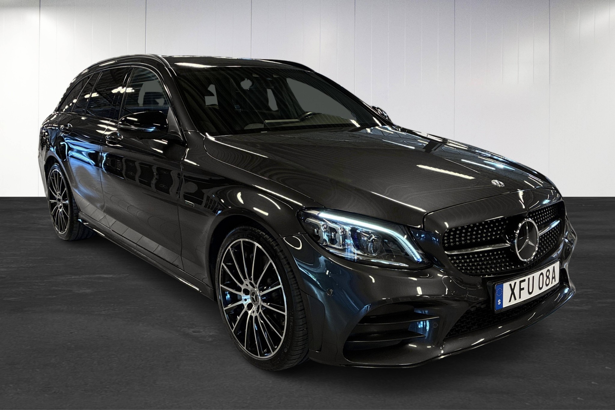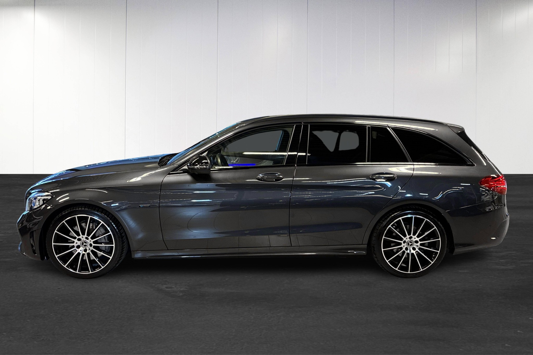 Mercedes-Benz C 300 de Kombi Plug-in Hybrid 4Matic, 2020, i elegant grafitgrå metallic – en sportig och lyxig familjekombi med extremt låg förbrukning och stark prestanda. Bilen har gått endast ca 8387 mil och kombinerar diesel och el med upp till ca 4–5 mils elmöjlighet enligt WLTP, perfekt för både vardagspendling och långresor.