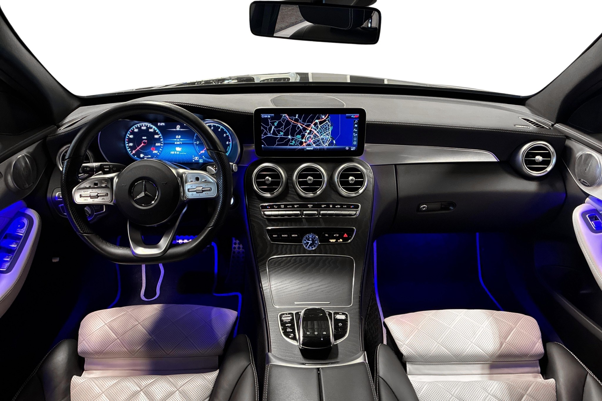 För uppkoppling och ljud får du Burmester Premium Sound, COMAND-navigation, Apple CarPlay/Android Auto, trådlös mobilladdning, smartphone-integrationspaket och flera USB-uttag. Säkerhetsmässigt finns bland annat aktiv filbytesassistent, vägmärkesigenkänning, ISOFIX, fotgängarskydd och stöldskyddspaket.