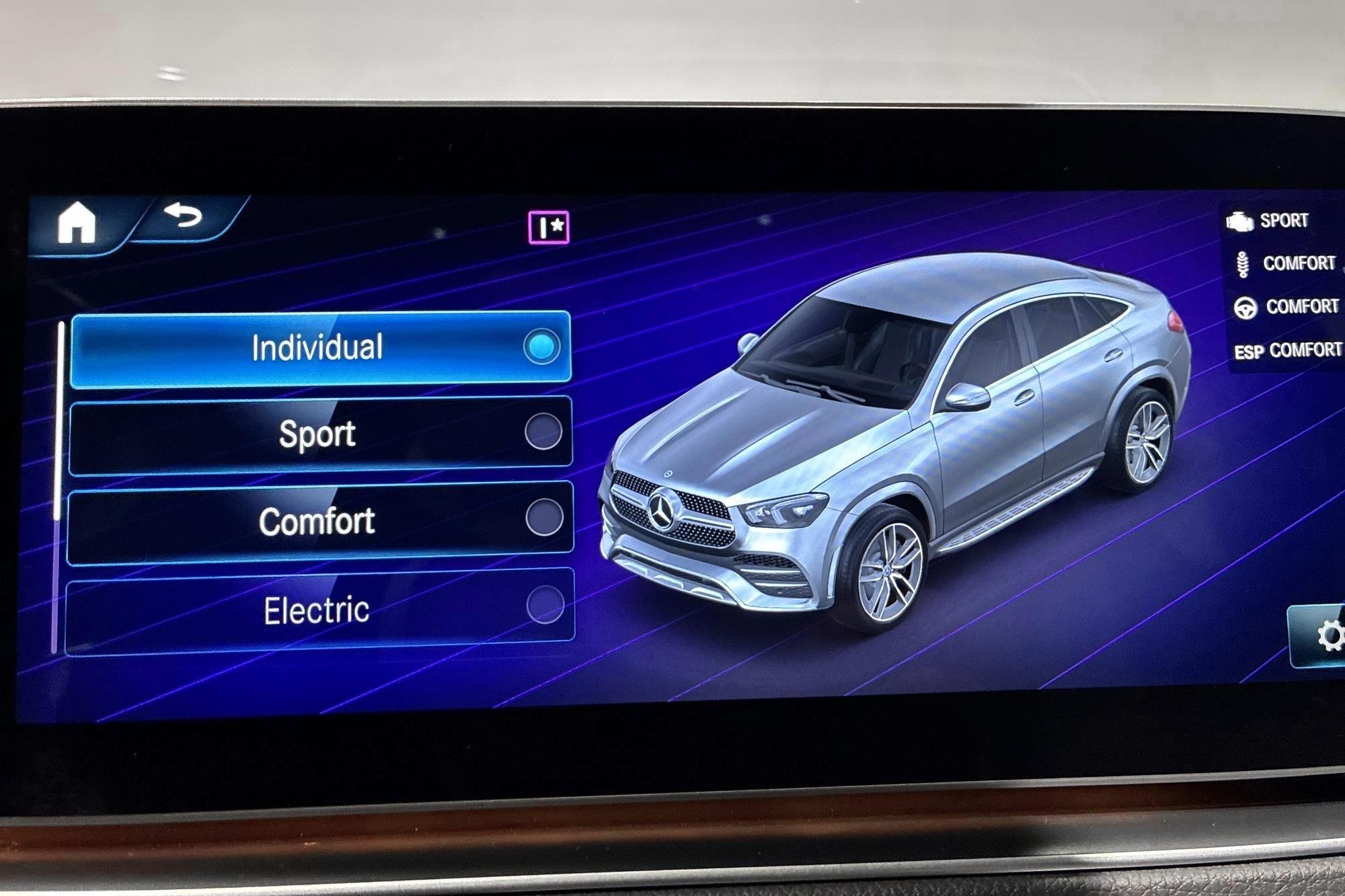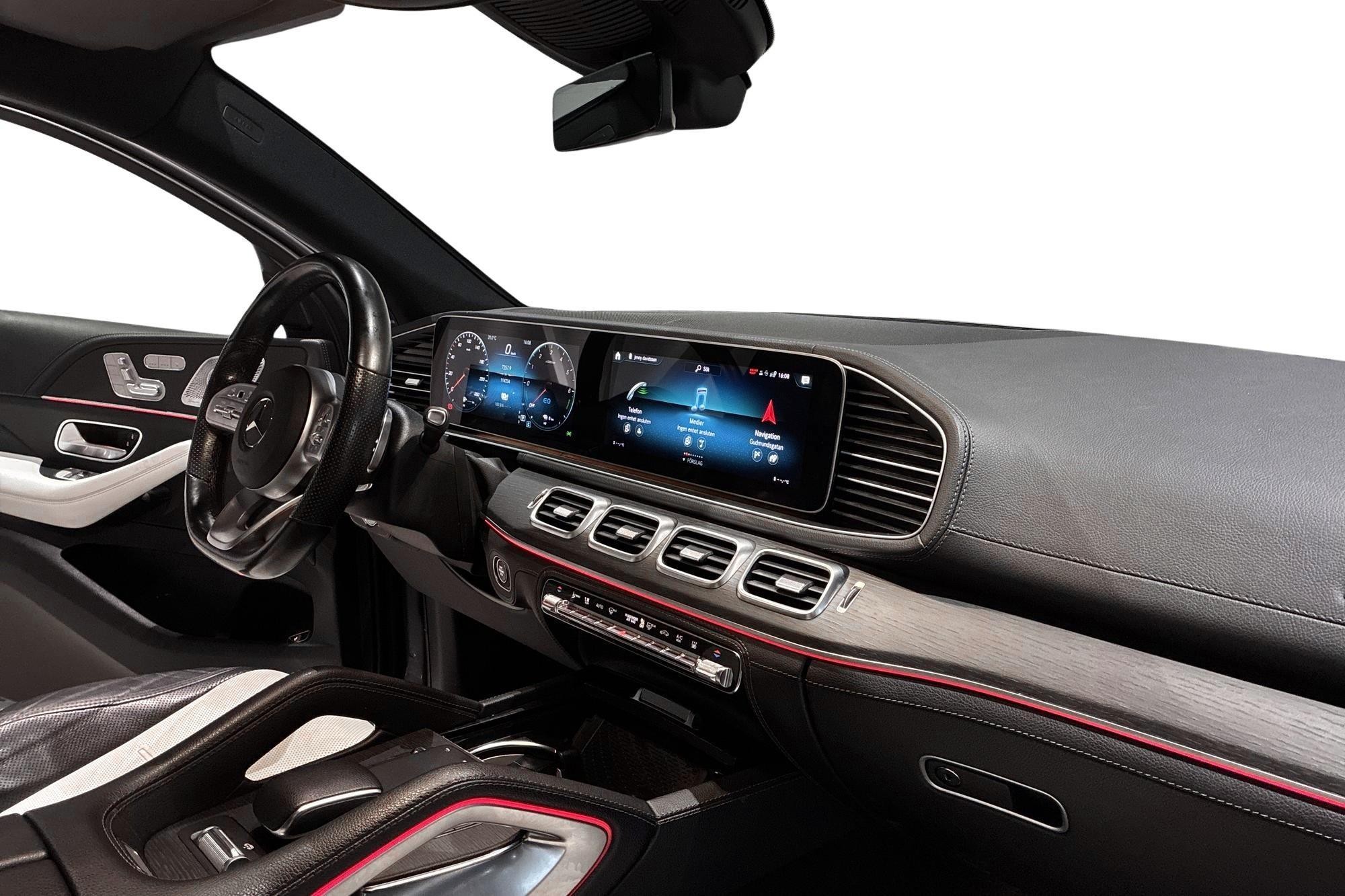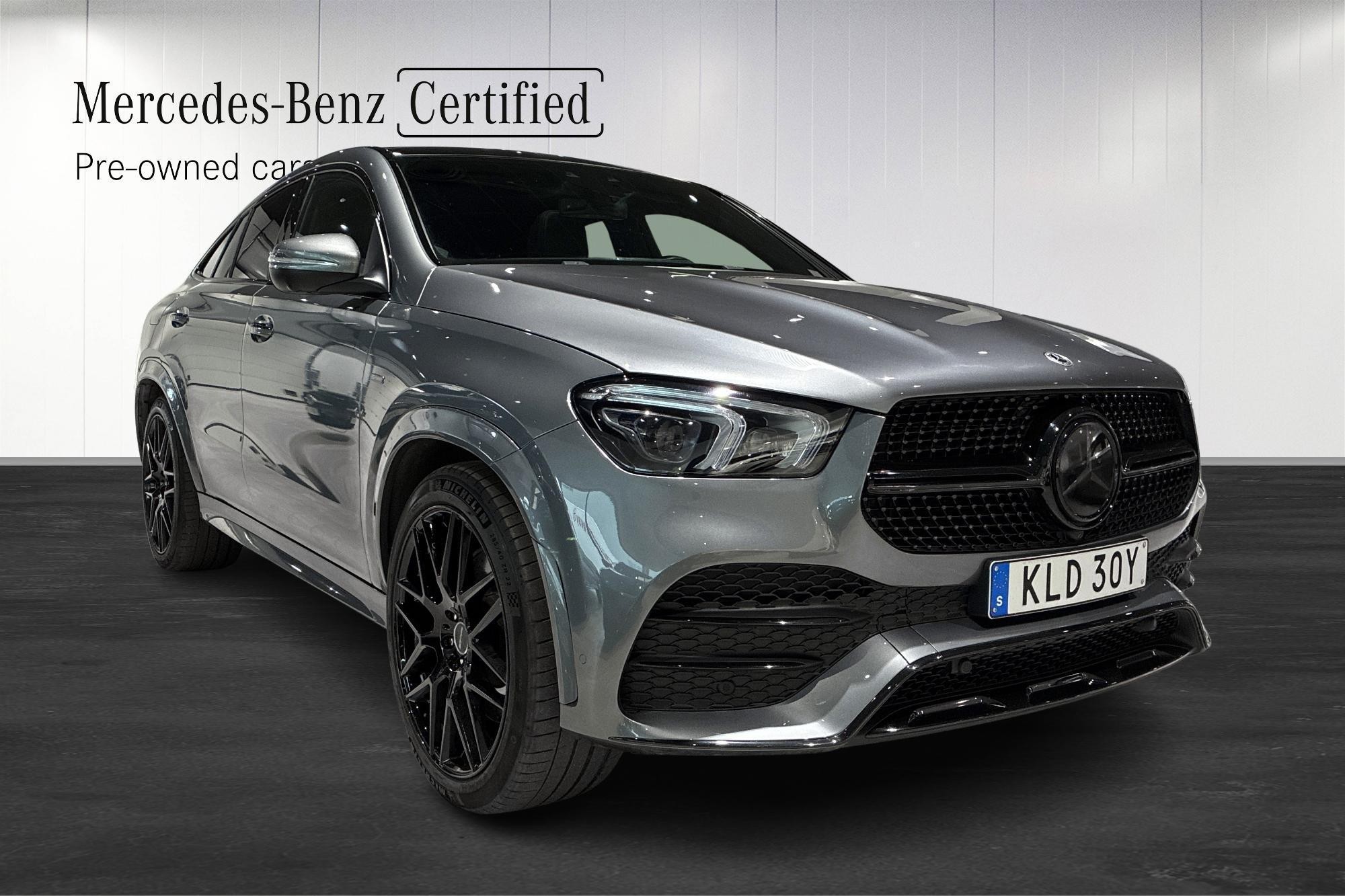 Mercedes-Benz GLE 350 de 4MATIC Coupé AMG Line, 2020, i ett mycket fint skick med endast ca 1 1500 mil på mätaren. En kraftfull och snål plug-in hybrid med dieselmotor, fyrhjulsdrift och automat som ger både komfort och trygghet året runt – elräckvidd upp till ca 9–10 mil enligt WLTP.