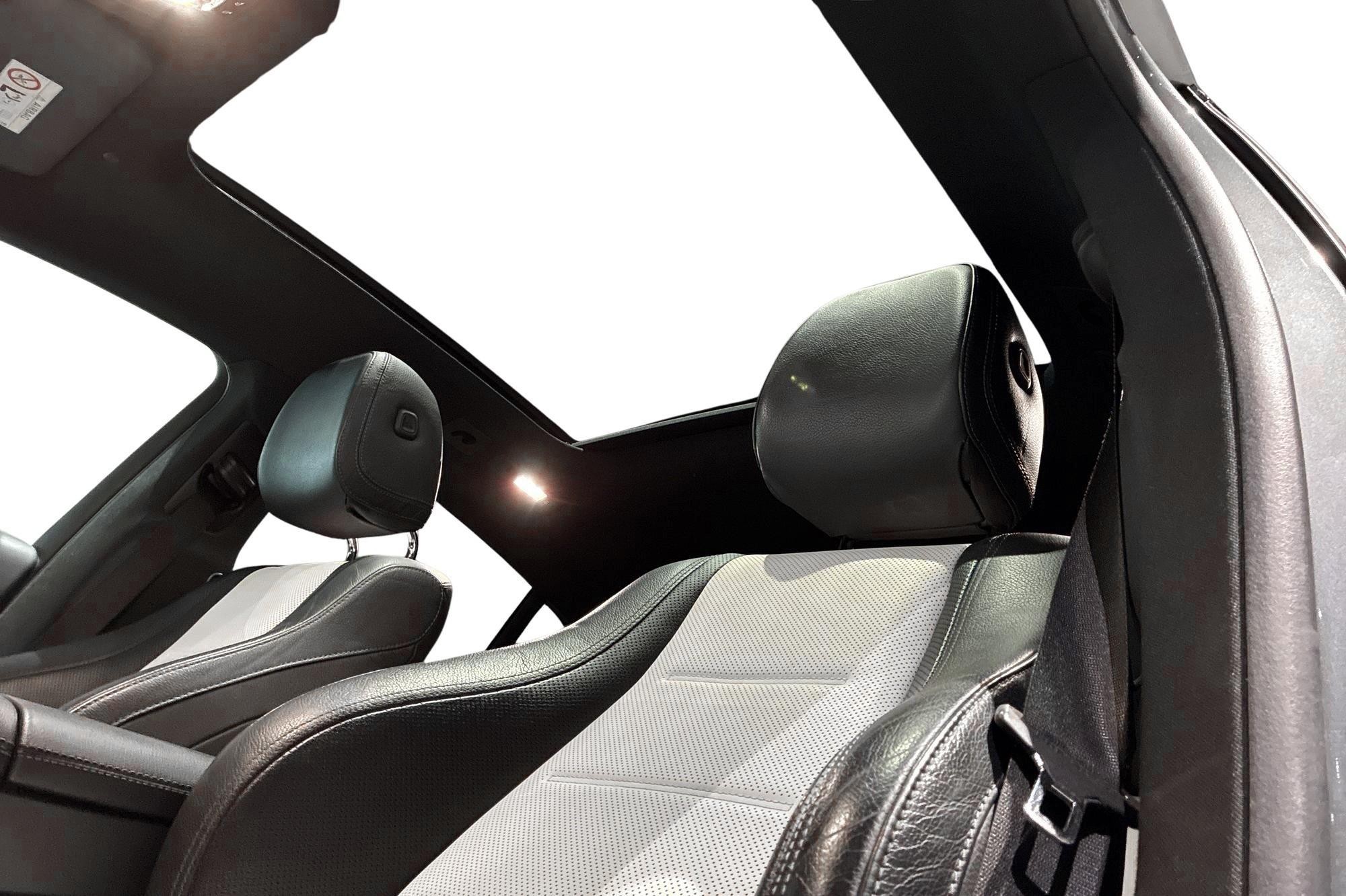 AMG Line-paketet ger bilen ett sportigt och exklusivt uttryck, och i kupén möts du av en påkostad interiör med helskinn, elstolar fram med minne, 4-zons klimatanläggning och Burmester premiumljud. Panoramaglastak och tonade rutor bidrar till en ljus och ombonad känsla för alla fem sittplatser.