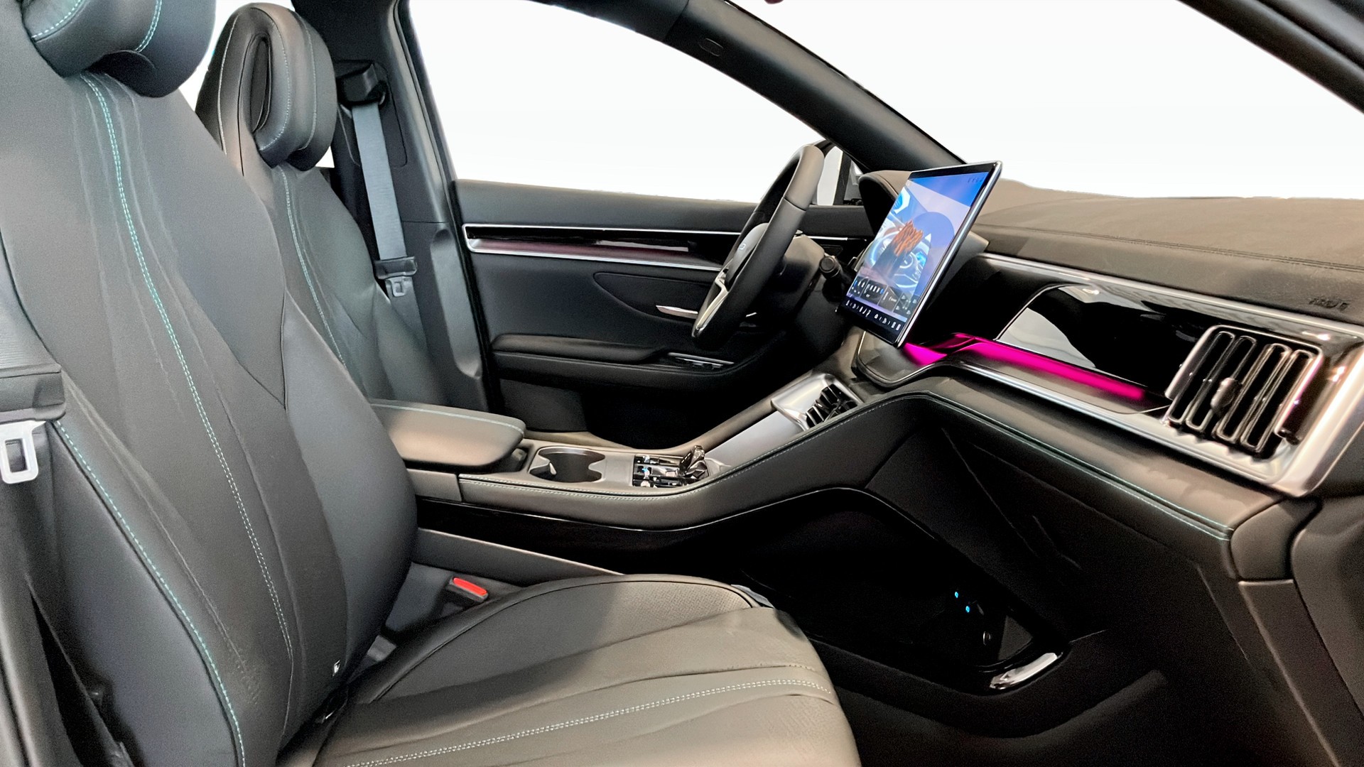 Interiören bjuder på svart veganläder, elektriska stolar fram (förarstol med minne och ventilation), panoramatak, uppvärmd ratt, trådlös mobilladdning och ett kraftfullt Infinity ljudsystem. Den elektriskt roterbara pekskärmen med Apple CarPlay och Android Auto gör det enkelt att alltid vara uppkopplad.