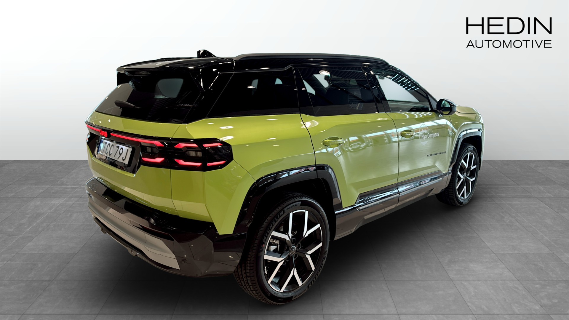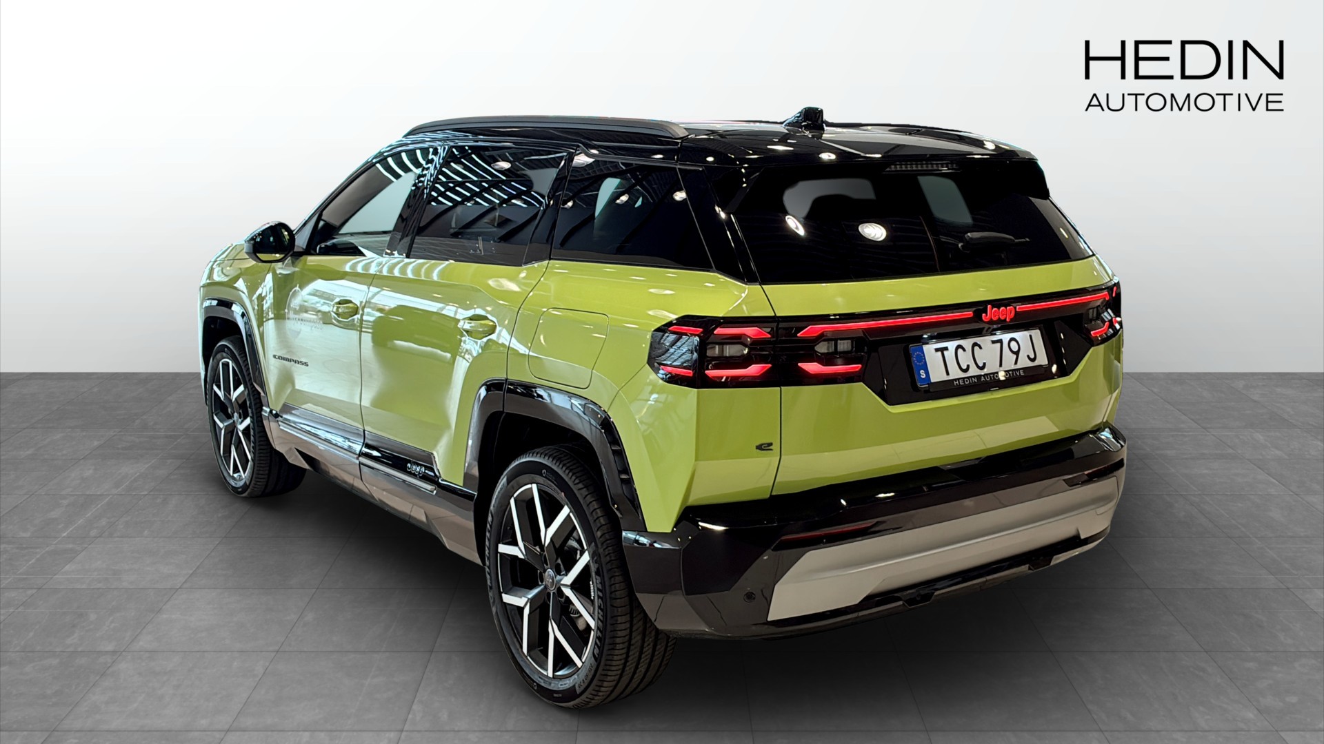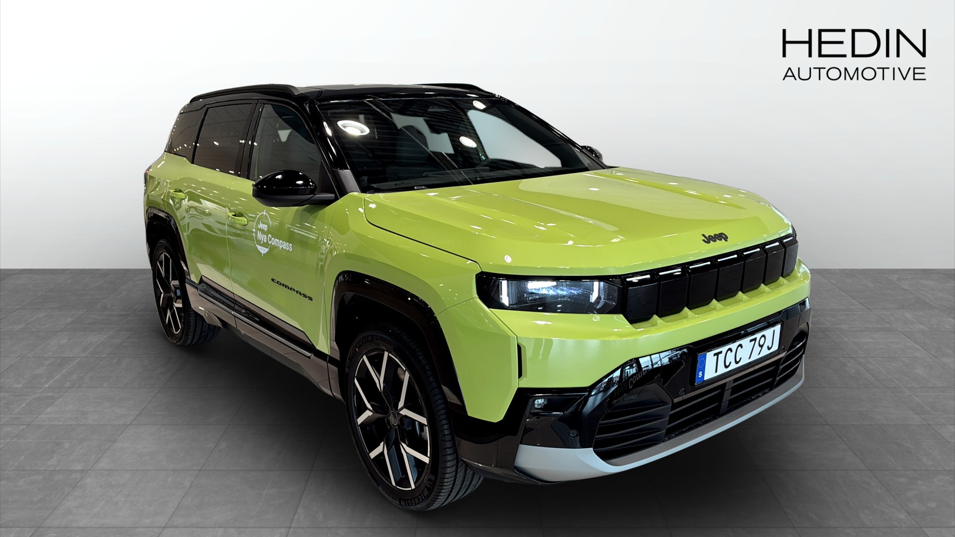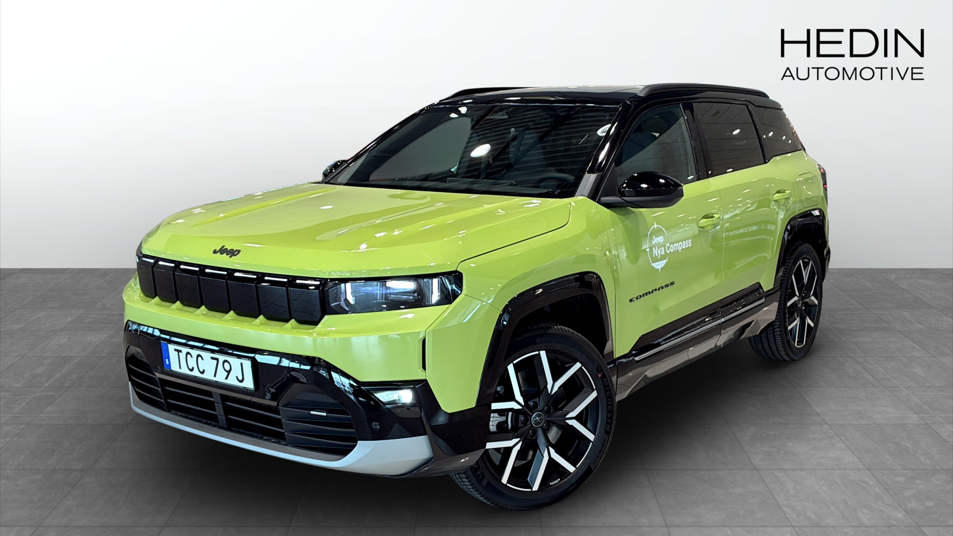 Jeep Compass Summit BEV 210 hk FWD First Edition Premium Pack, årsmodell 2026, i en riktigt läcker Hawaii Green med svart tak. En helt ny eldriven SUV med automatlåda, 0 mil och en WLTP-räckvidd på upp till 500 km.
