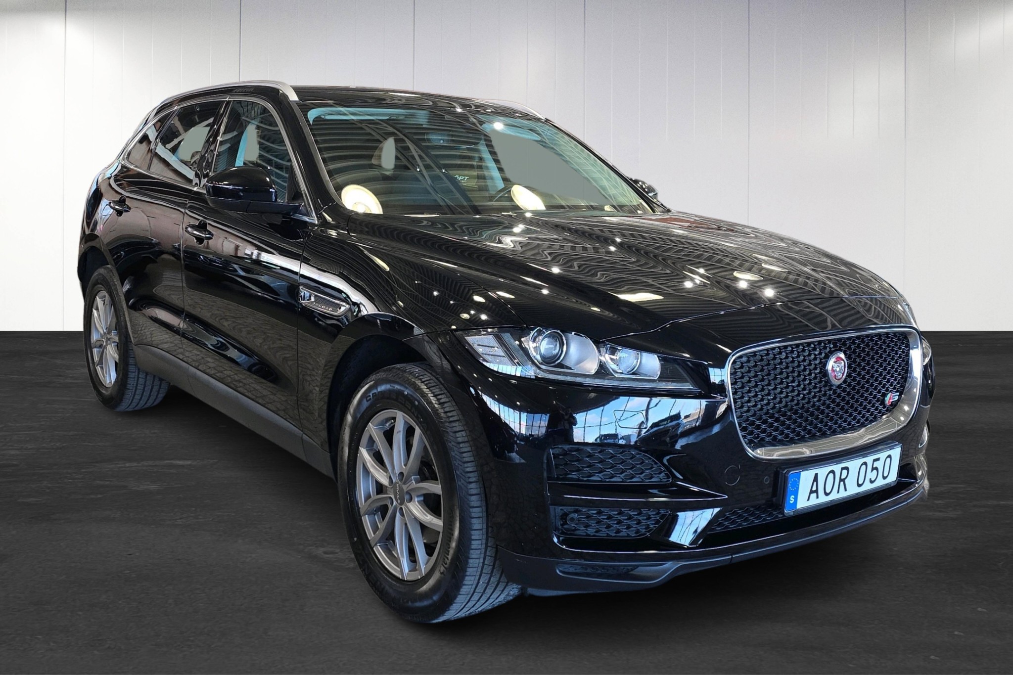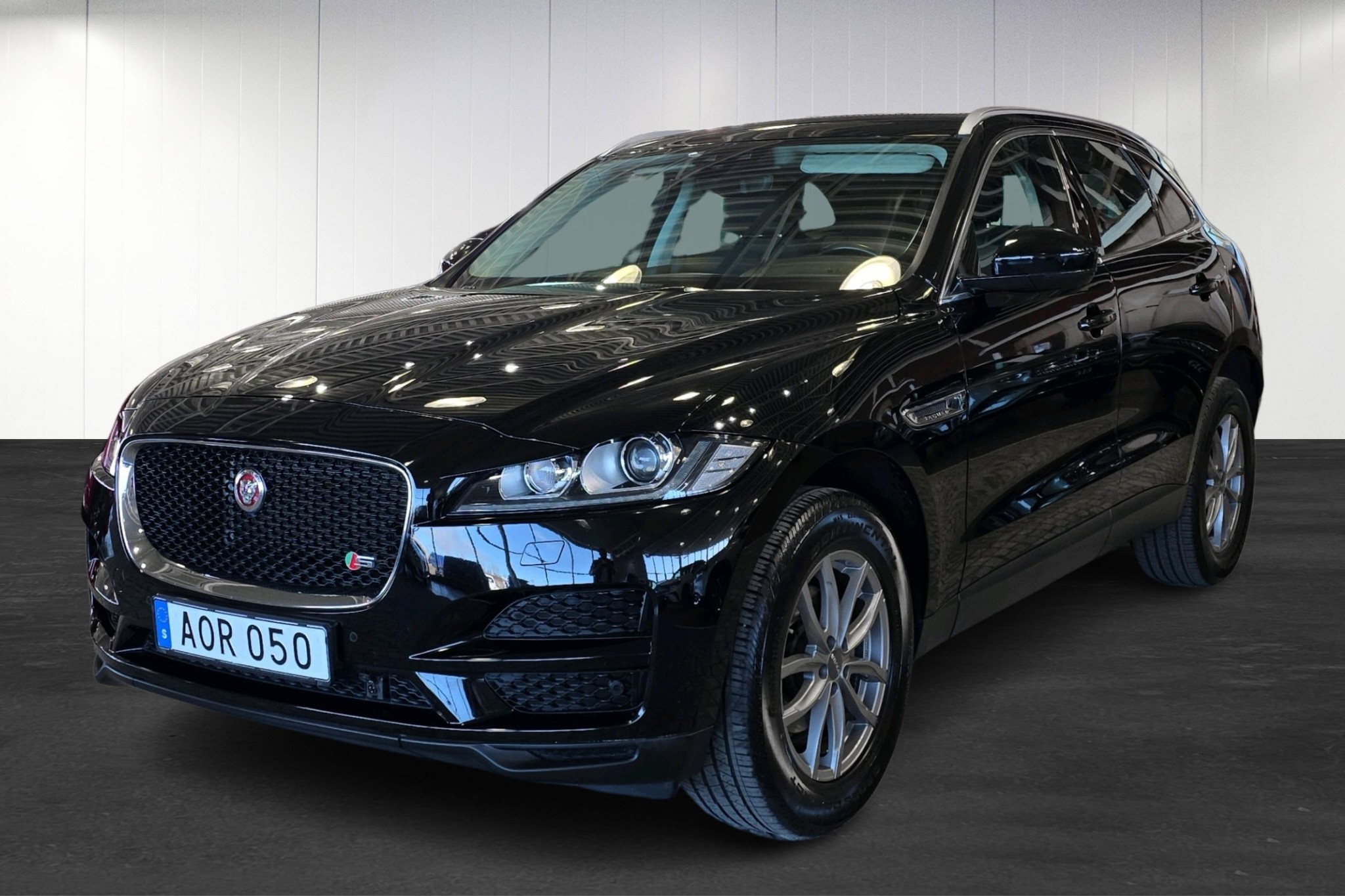 Jaguar F-Pace 2.0 D180 RWD, 2018 – en sportig och lyxig SUV i snyggt Ebony Black med låg körsträcka på ca 9000 mil. Här får du en rymlig och komfortabel bil med fem sittplatser, stark och snål dieselmotor på 180 hk samt automatlåda och bakhjulsdrift för en riktigt trevlig körupplevelse.