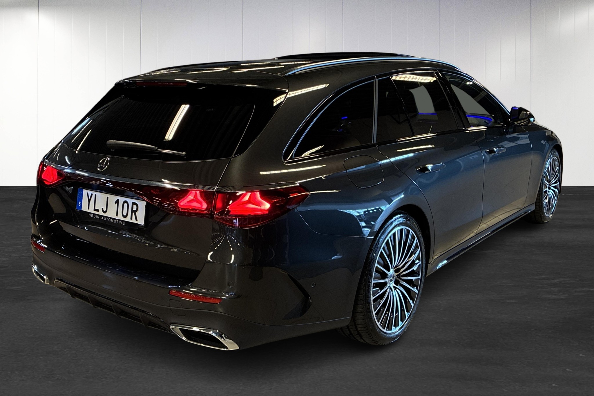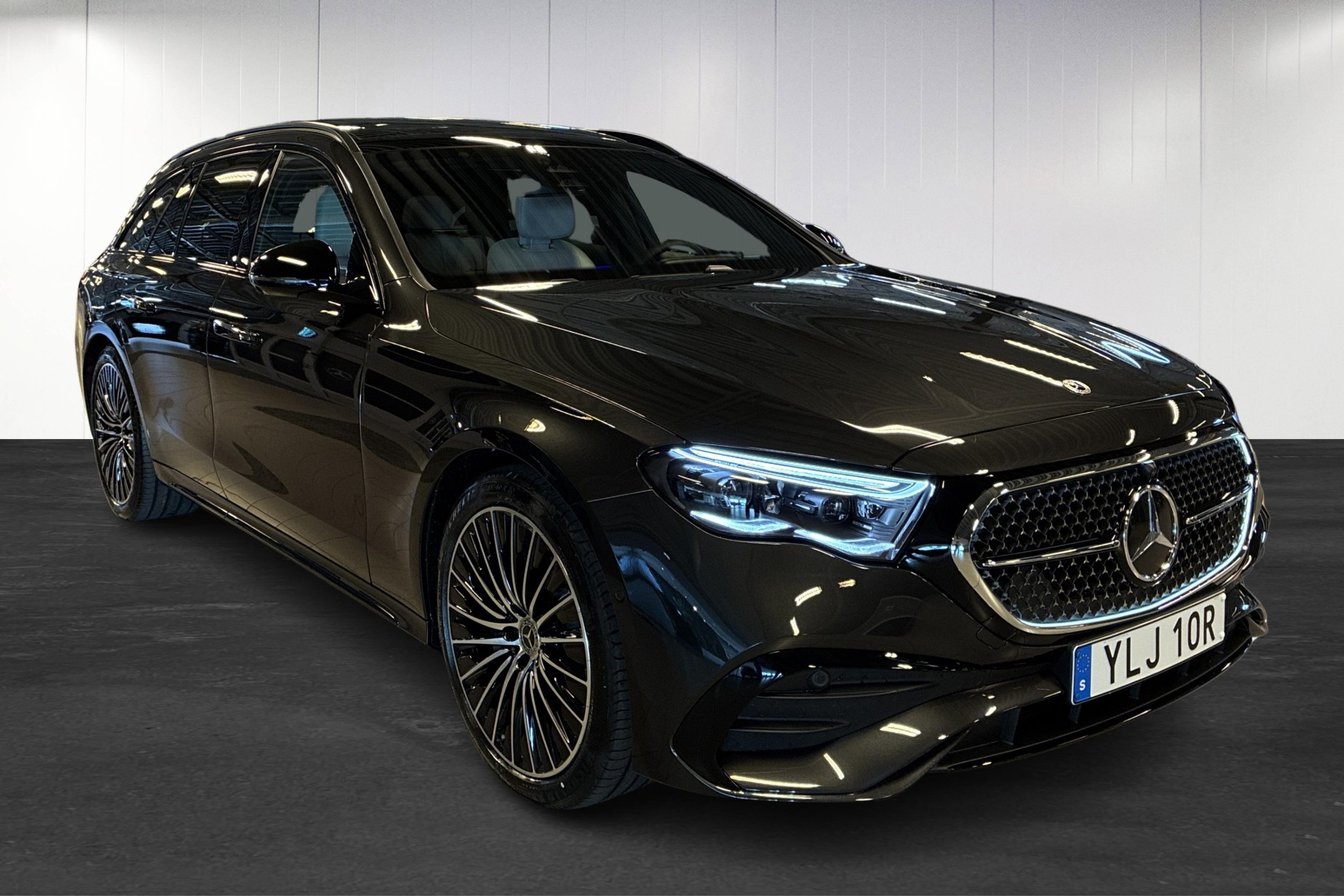 Mercedes-Benz E 300 de 4MATIC T AMG Advanced Edition, 2026, med endast ca 1100 mil – en lyxig och sportig kombi med imponerande räckvidd som laddhybrid (upp till ca 10 mil el enligt WLTP) och stark dieselhybrid på totalt 311 hk och fyrhjulsdrift.