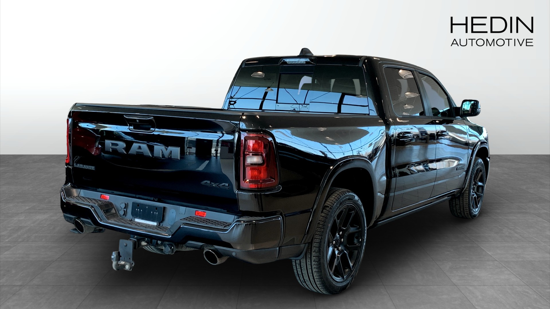 RAM 1500 Laramie Crew Cab 2025 4WD – svart, ny och redo för allt du kastar på den. Här får du amerikansk fullsize-pickup med lyxig komfort och massor av kraft: Rak 6-cylindrig motor med dubbla turbos på 426 hk, automatlåda och fyrhjulsdrift gör både vardag och fritid enkel, oavsett om du drar tungt eller bara vill åka bekvämt.
