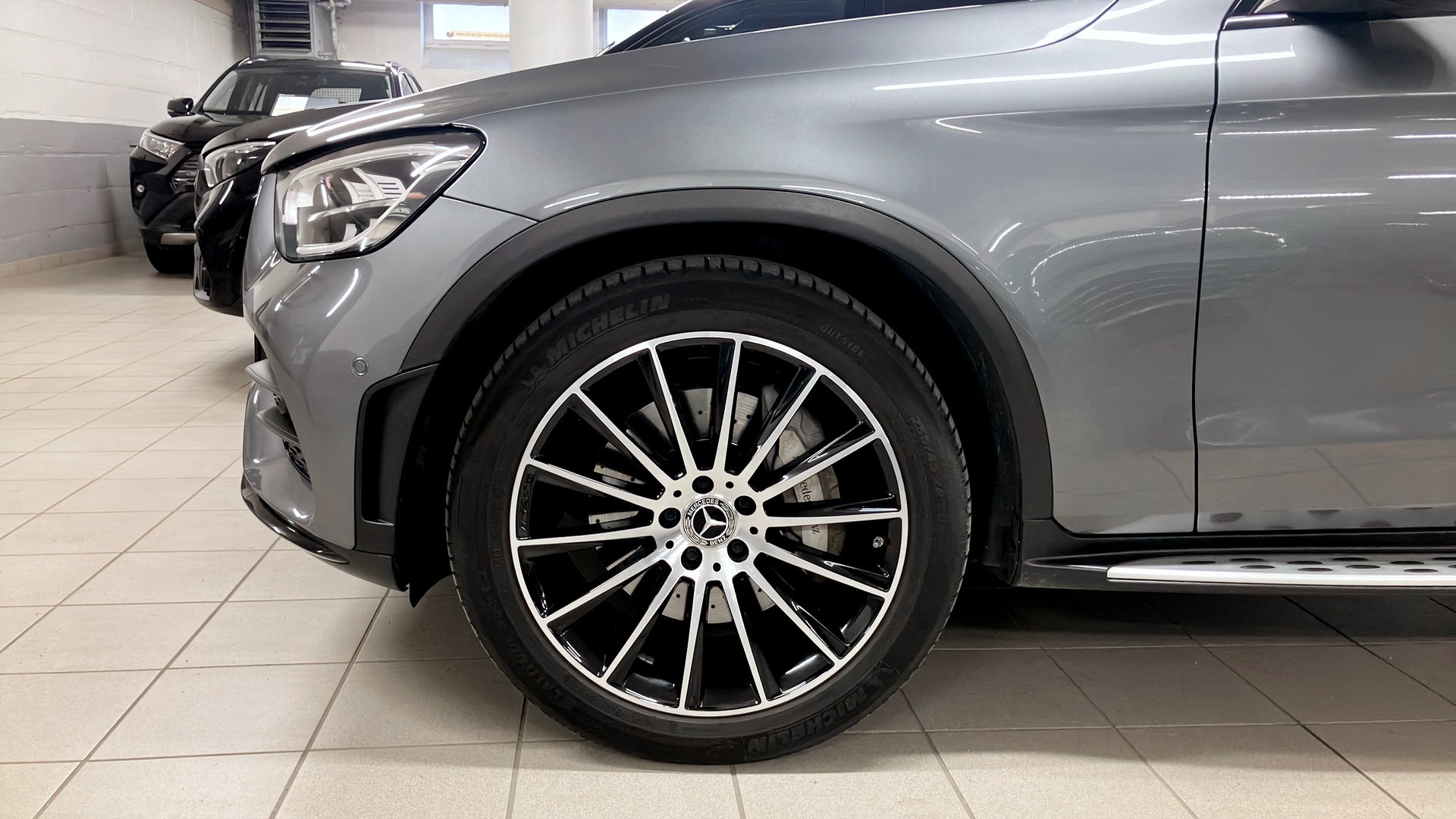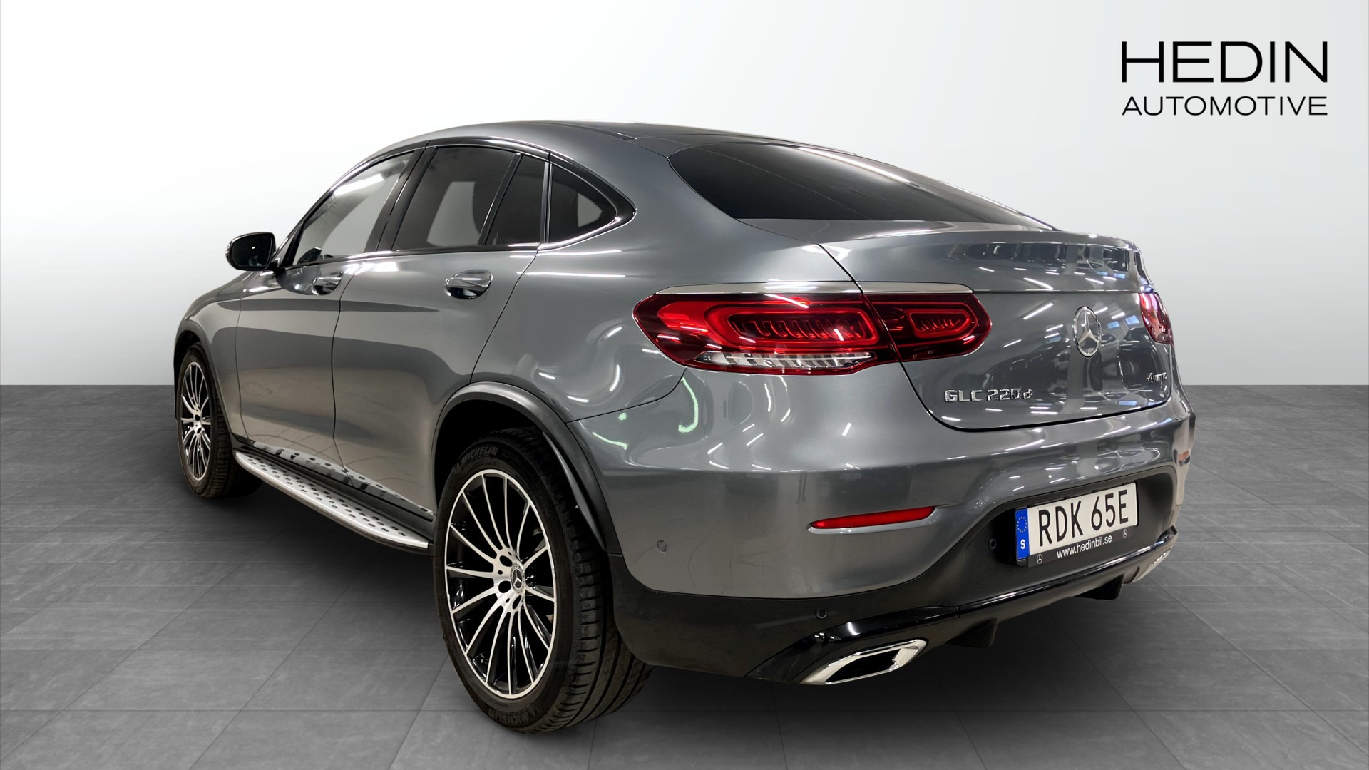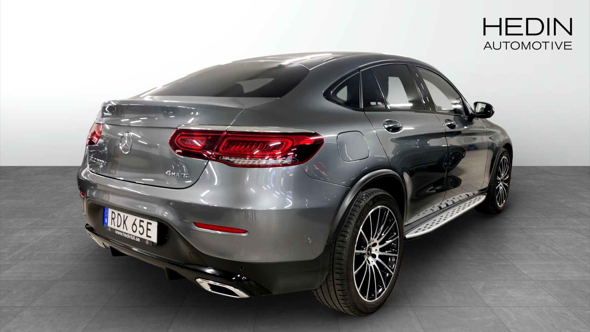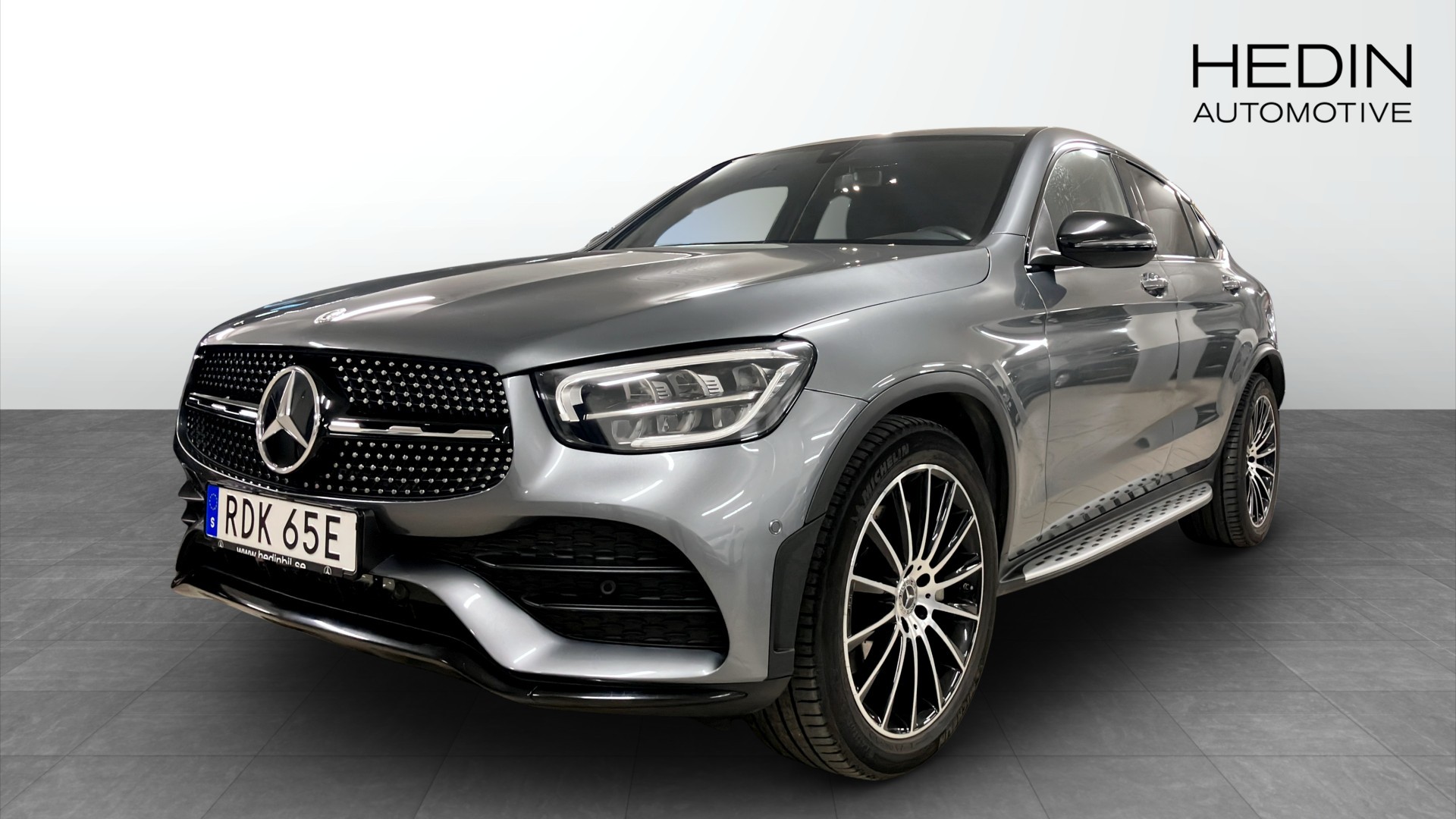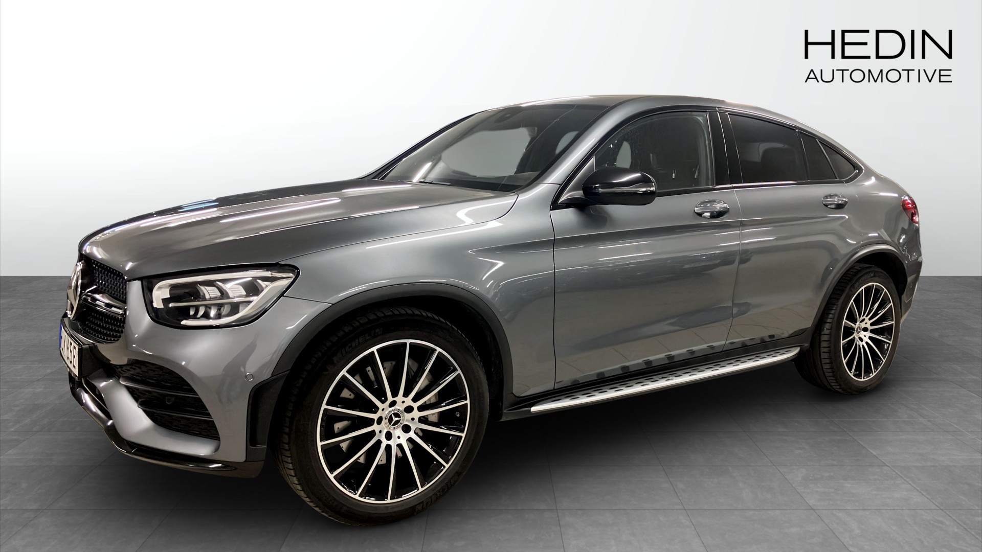 Mercedes-Benz GLC 220 d 4MATIC Coupé, 2019 (modellår 2020) i elegant Selenitgrå metallic – en sportig SUV‑coupé med fyrhjulsdrift, automat och låg körsträcka på endast ca 965 mil.