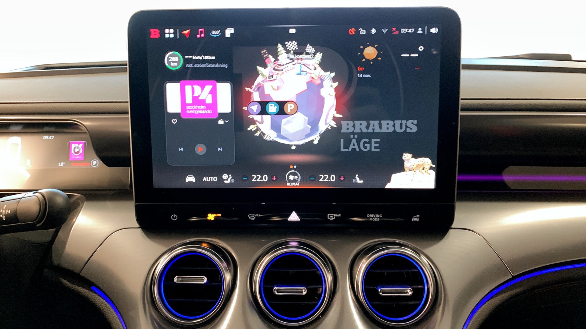 Panoramaglastak, elbaklucka, elstolar med minnesfunktion, propilot med adaptiv farthållare, 360 gr parkeringssensorer, värmepump, intelligent uppvärmning av batteriet, Beats högtalarsystem 13 st högtalare, filhållningssystem, rattvärme, döda vinkelvarnare, projicerande Brabus logga, dragkapacitet 1600 kg, simulerat motorljud, Cyber sparks LED strålkastare, trådlös mobilladdare, Hello Smart appen som möjliggör förvärmning av kupén bla och mycket mer.