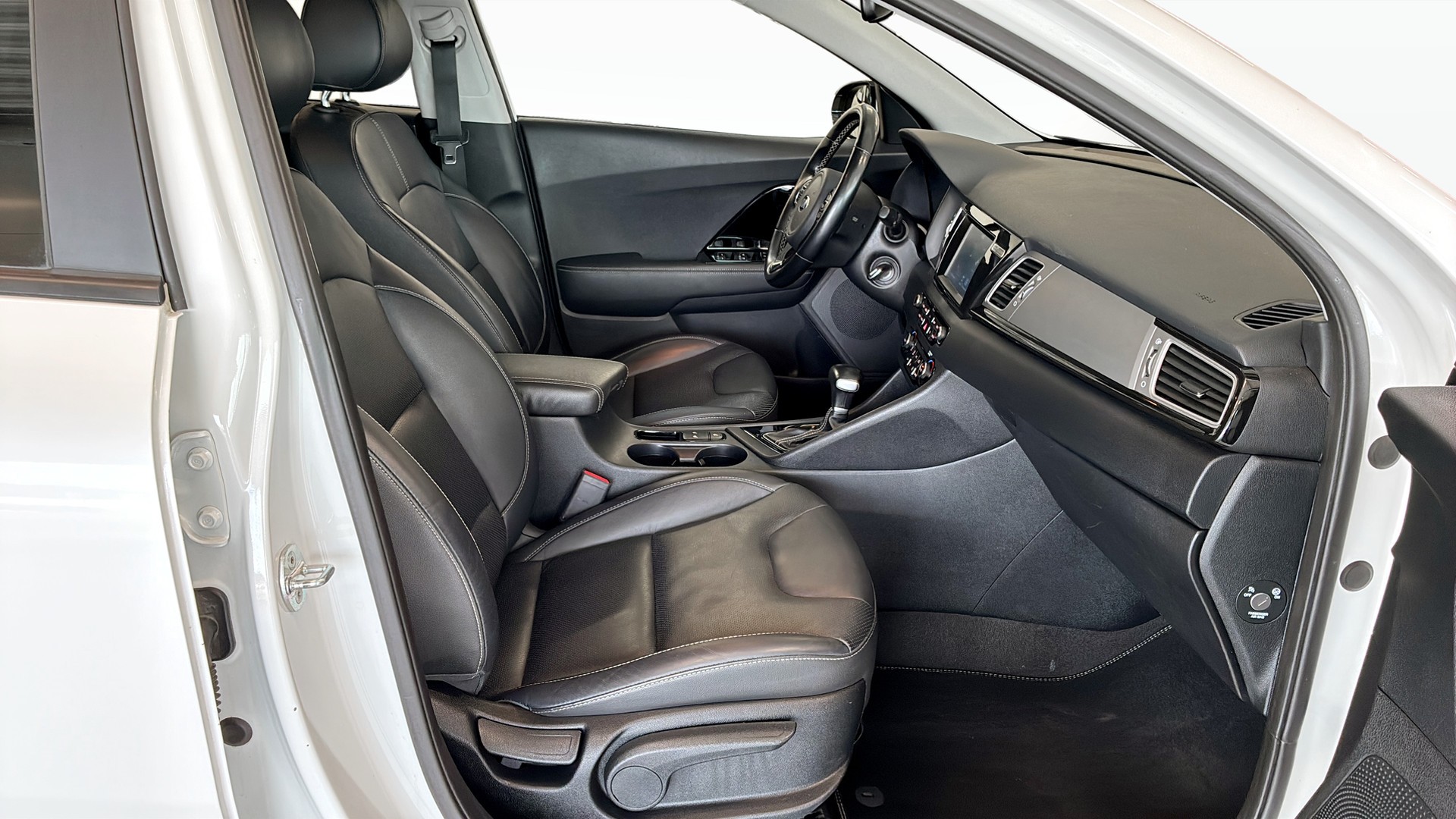 Kia Niro 1.6 Hybrid Advance Plus 2 i snygg Snow White Pearl med svart interiör – en smart och praktisk hybrid för dig som vill köra bekvämt, bränslesnålt och modernt.