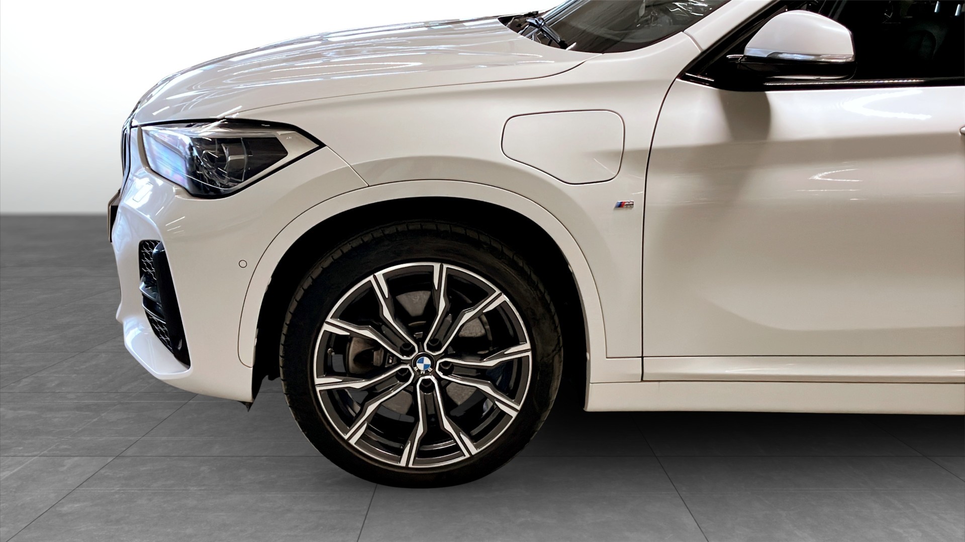 BMW X1 xDrive Plug-in Hybrid M Sport, årsmodell 2022, i stilren vit kulör och med endast 410 mil. Här får du en välutrustad premium-SUV som kombinerar automatlåda, fyrhjulsdrift och laddhybridteknik för både smidig vardagskörning och hög komfort.