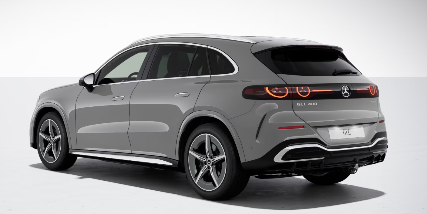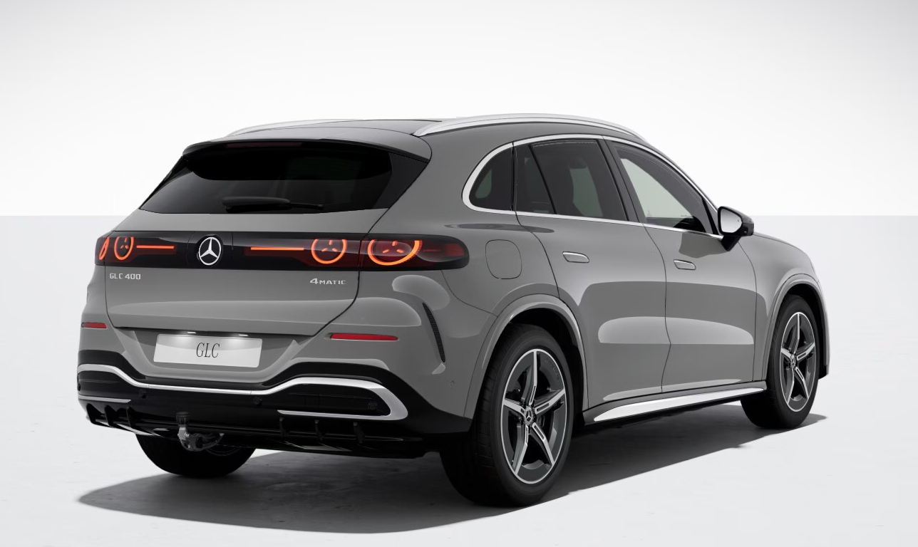 Mercedes-Benz GLC 400 4MATIC 140th Anniversary Edition, årsmodell 2026, i elegant grå metallic. En helt ny, eldriven SUV med fyrhjulsdrift, automatlåda och en imponerande WLTP-räckvidd på upp till 638 km.