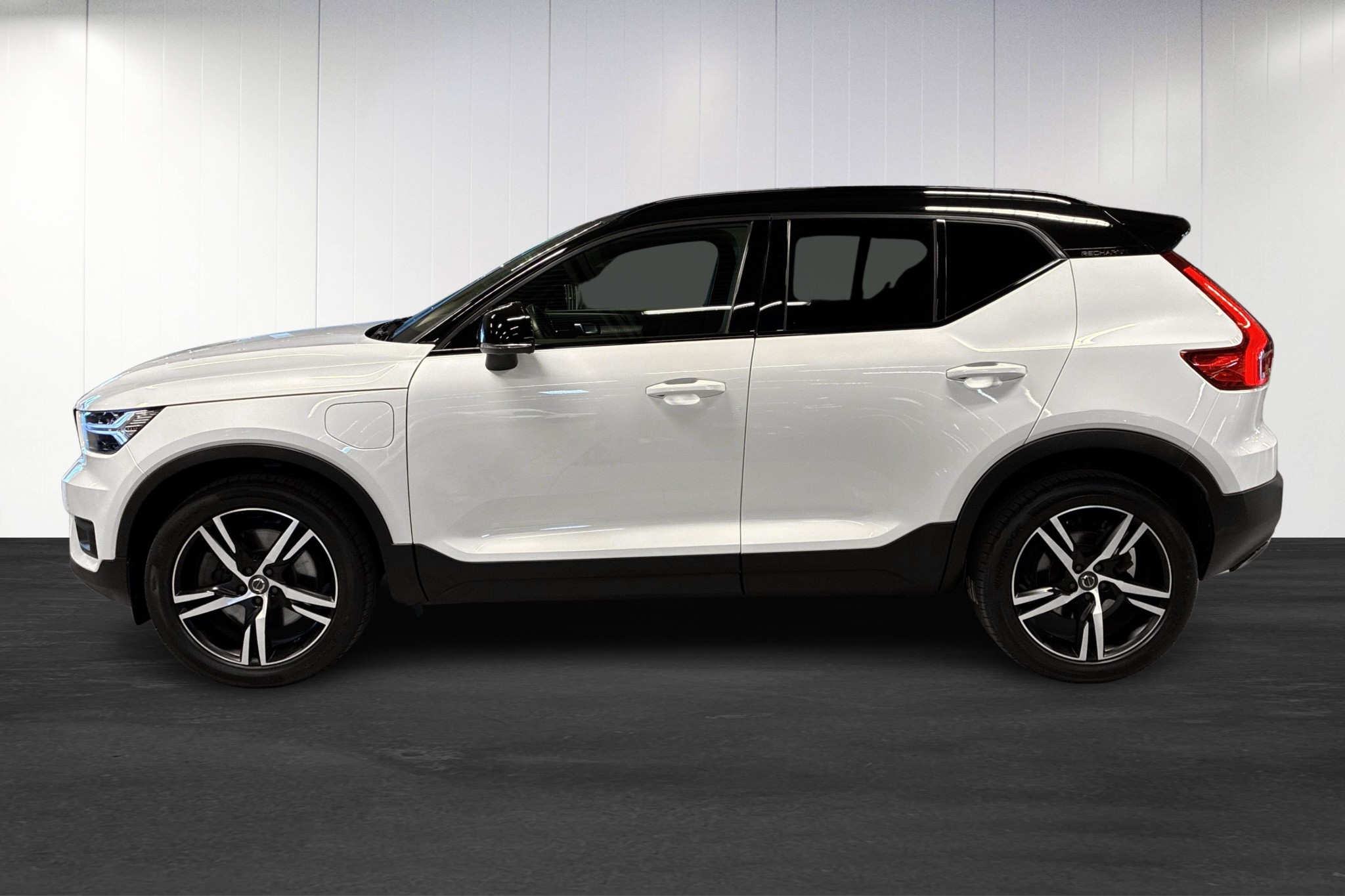 Volvo XC40 Recharge T5 DCT, årsmodell 2021, i stilren vit kulör. En laddhybrid-SUV som kombinerar Volvos komfort och säkerhet med smidig automatlåda, pigga 261 hk och möjlighet till eldrift för många av vardagens resor.