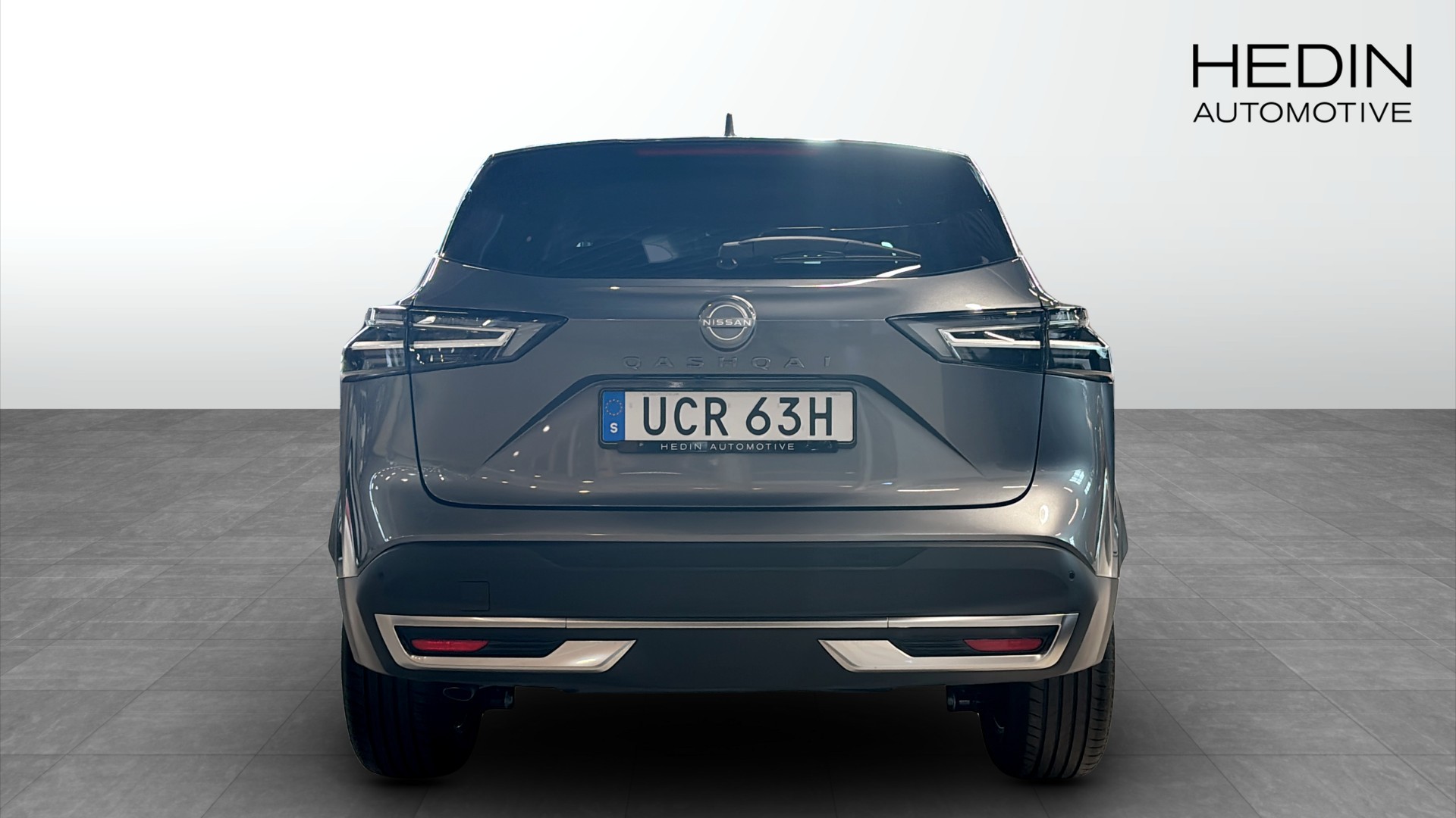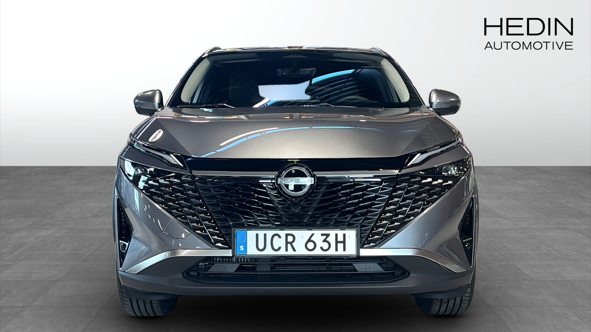 Nissan Qashqai N-Connecta årsmodell 2026 i stilren grå färg – en helt ny SUV med automatlåda och bensinhybrid som kombinerar smidig körning med låg förbrukning på 0,63 l/mil enligt WLTP.