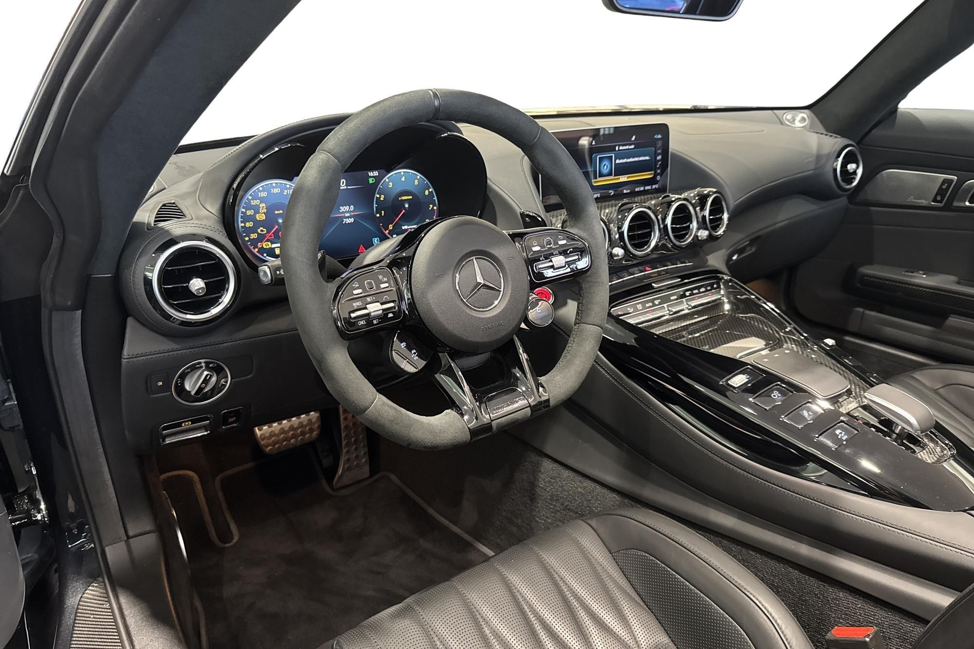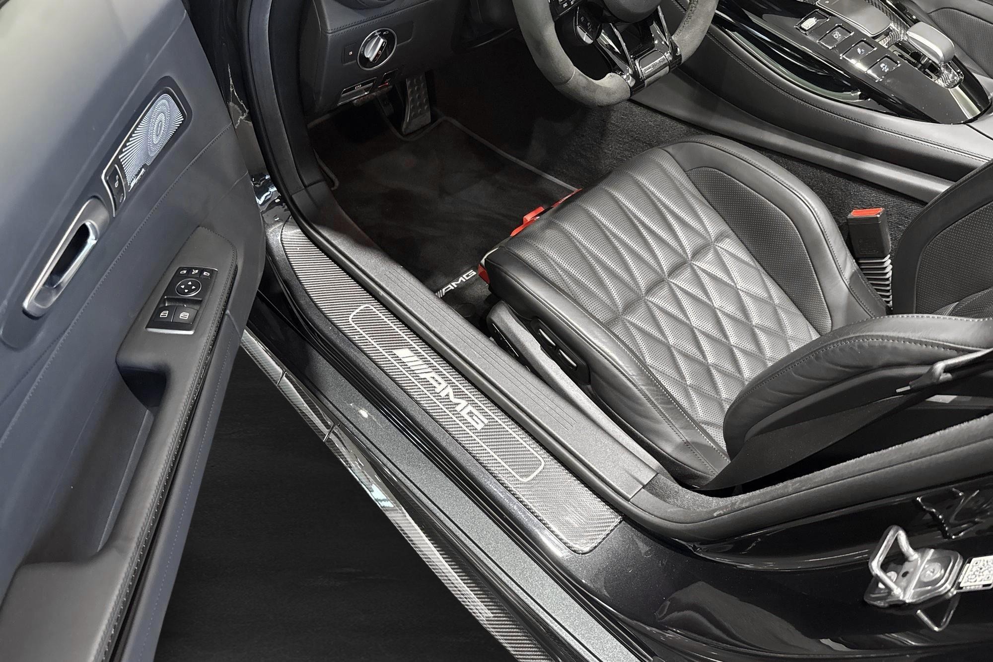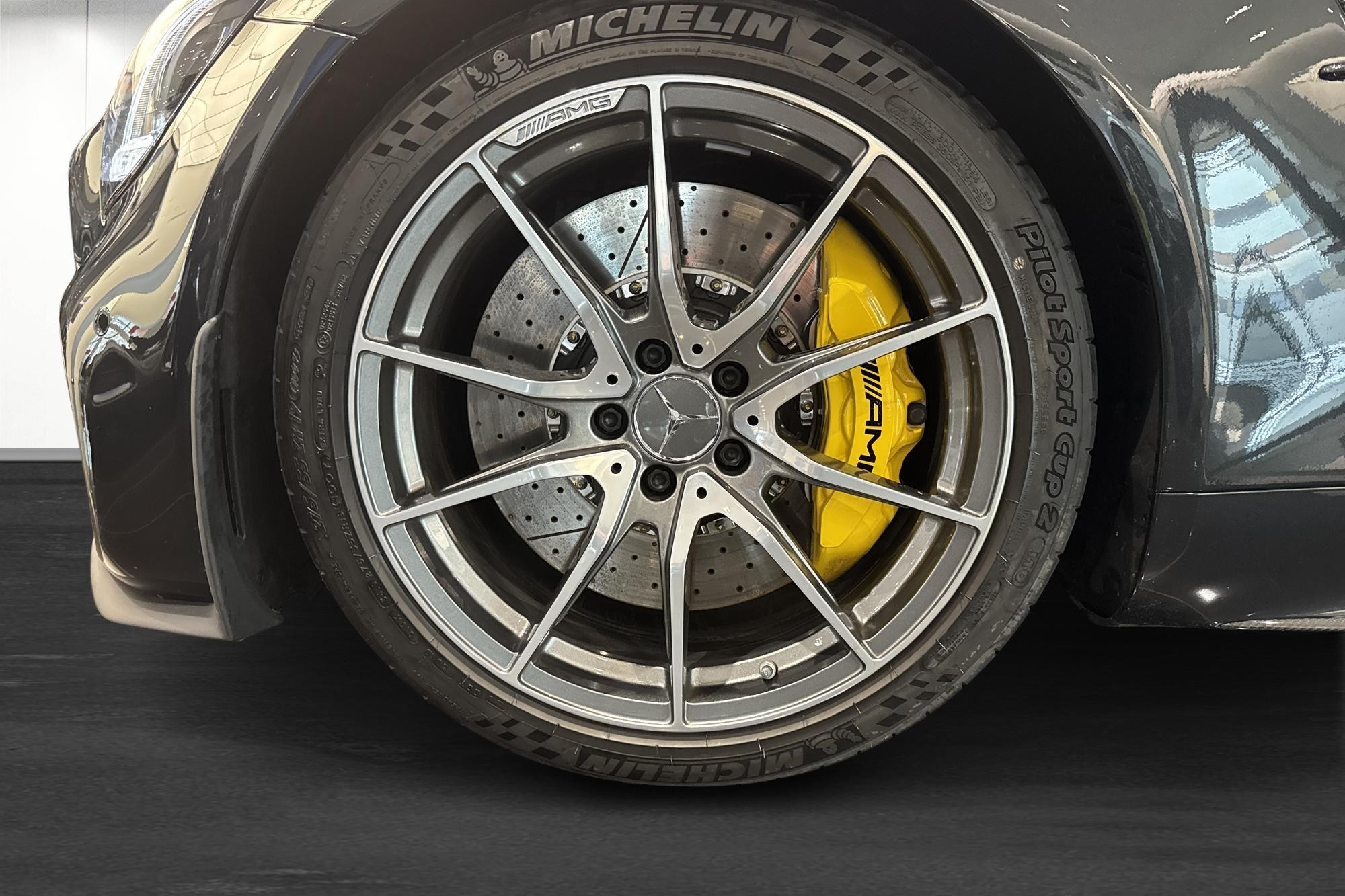 Utrustad med bland annat AMG bakaxelstyrning, AMG RIDE CONTROL, AMG Track Pace, kolfiberpaket exteriört och intererört, Burmester high-end surround sound, AIRSCARF, Apple CarPlay, Parkeringskameror, PARKTRONIC, adaptiv farthållare Distronic, dödvinkelassistent samt ventilerade och eluppvärmda komfortstolar m.m