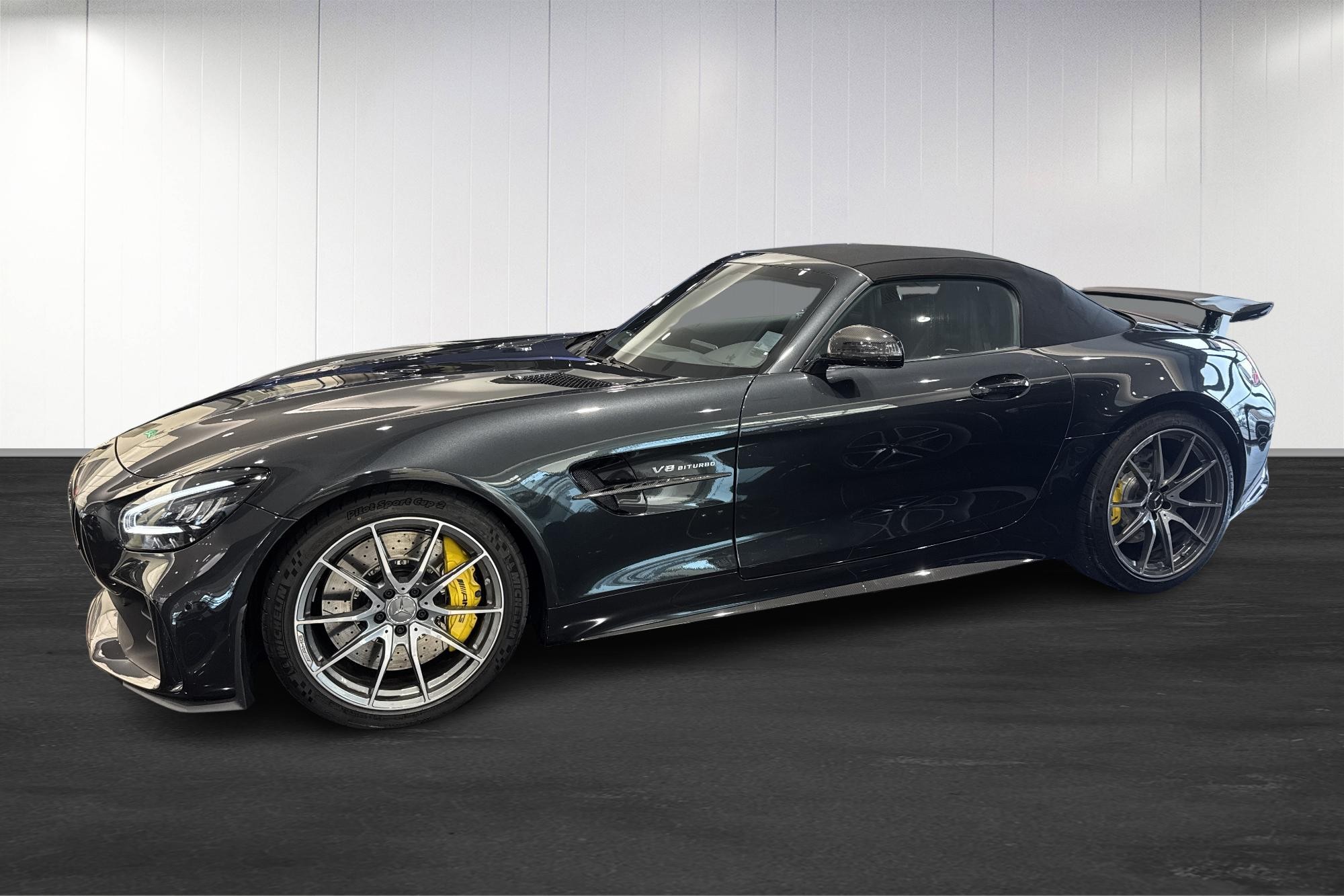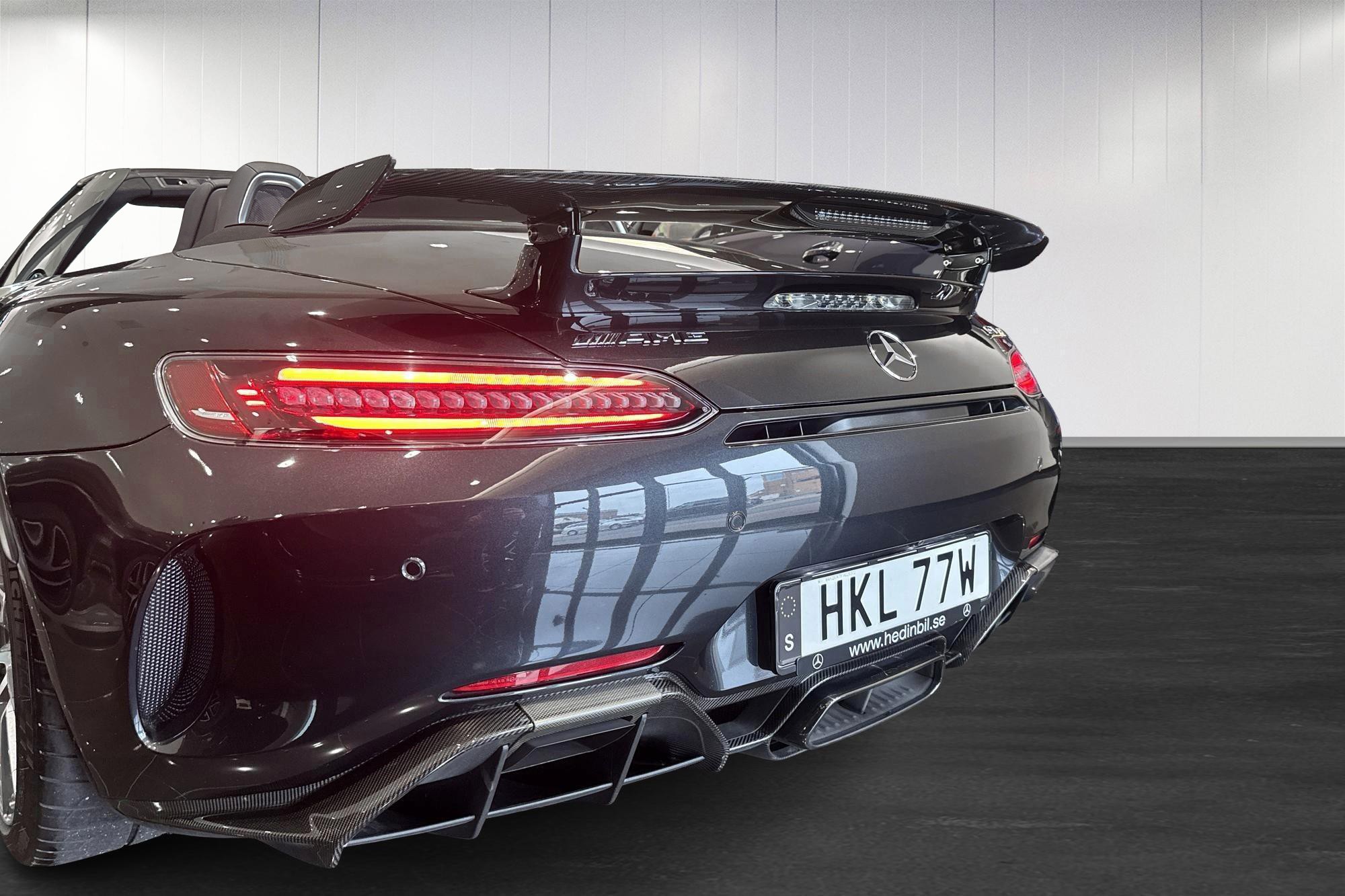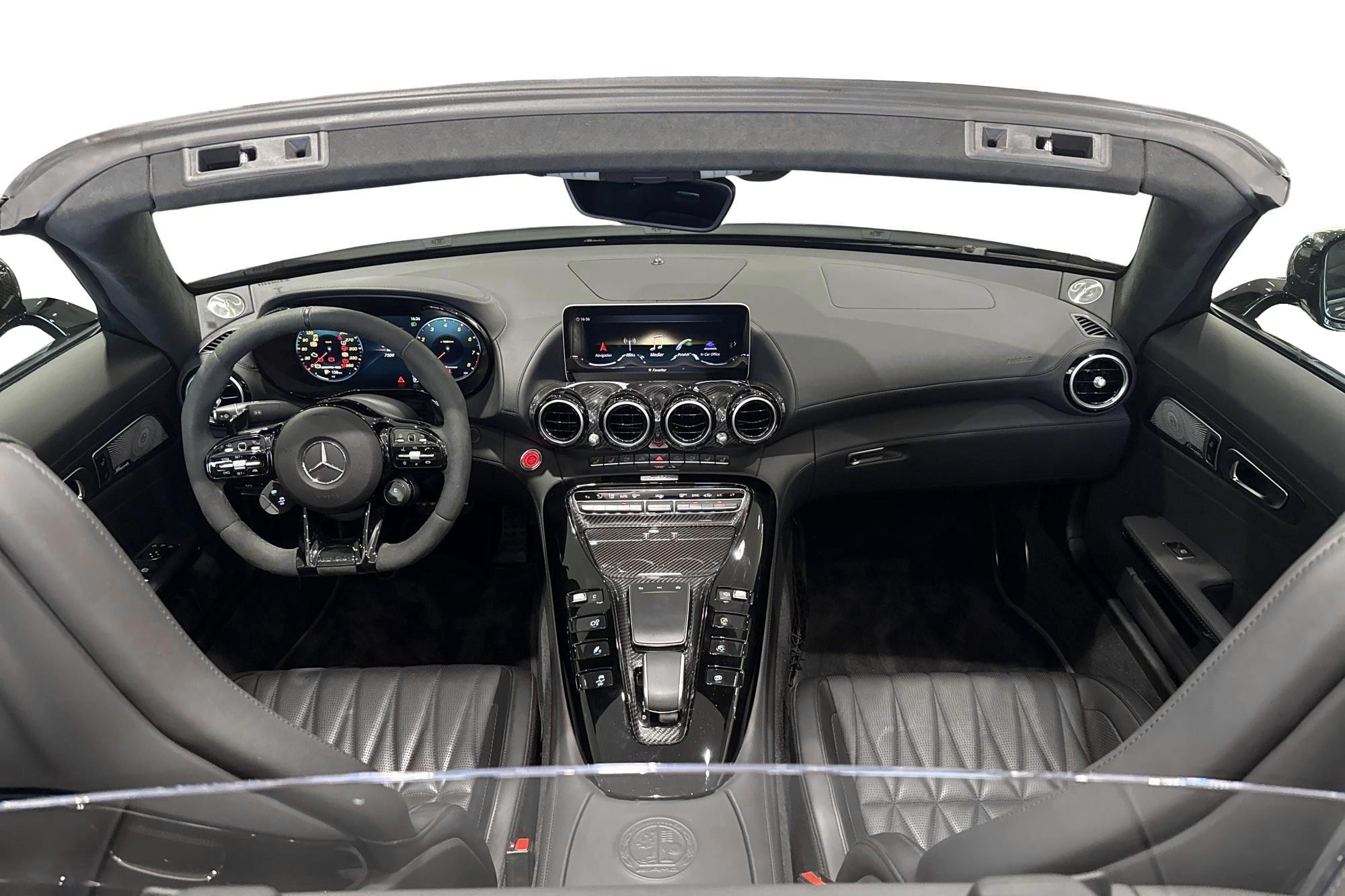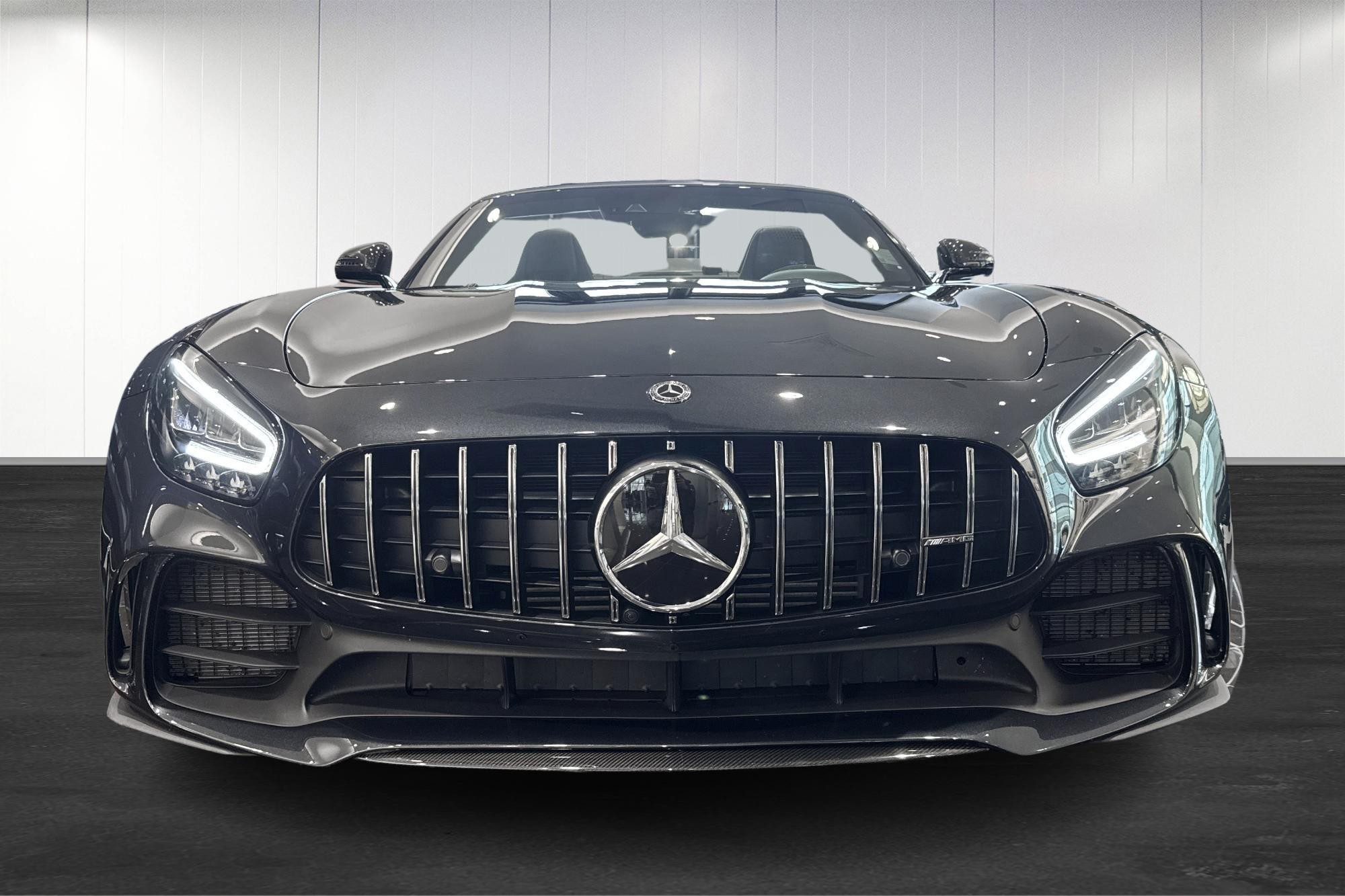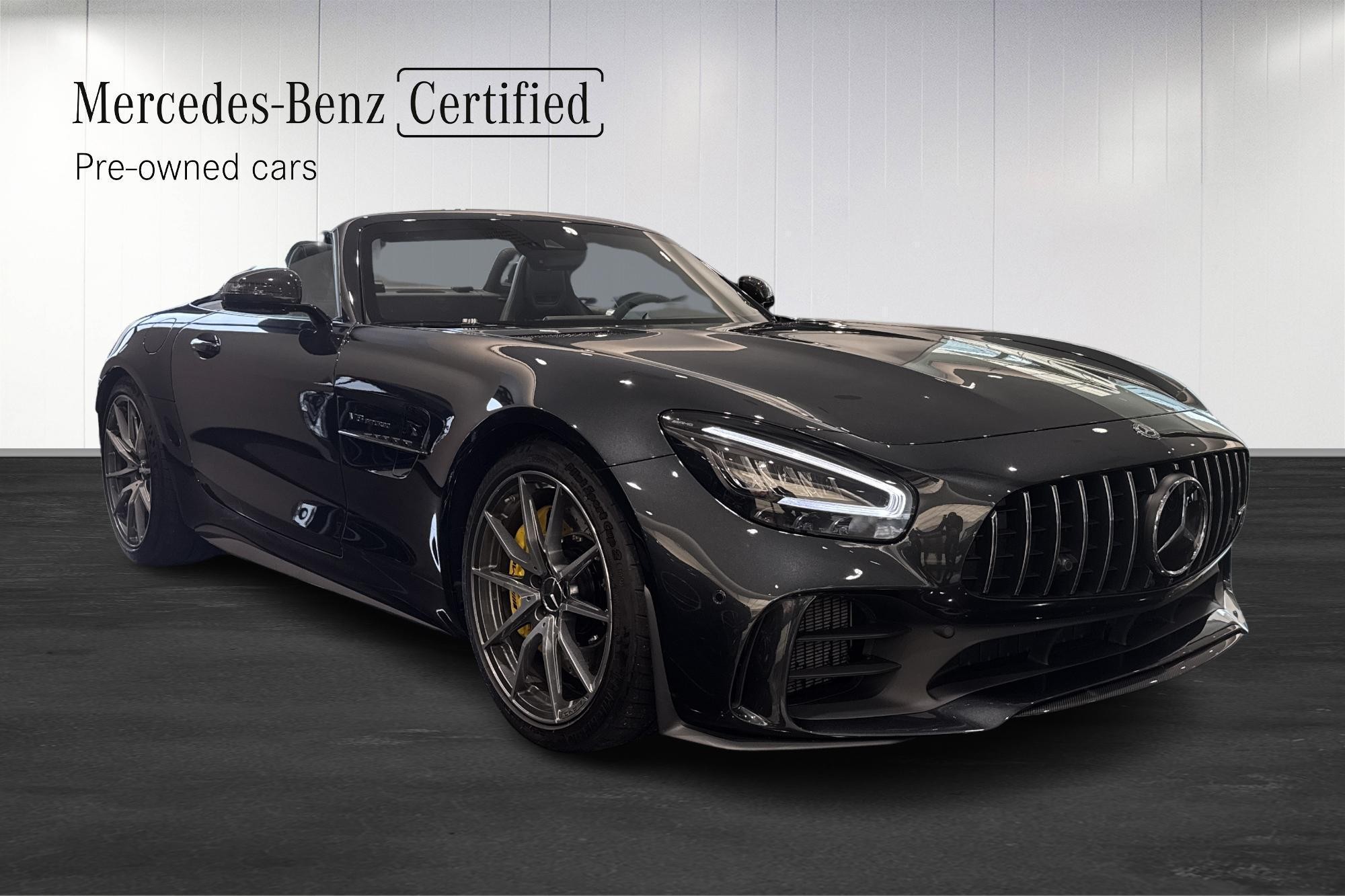 Mercedes-AMG GT R Roadster 1 OF 750, årsmodell 2020, i elegant grå kulör. En exklusiv och ovanlig roadster för dig som vill ha rå prestanda kombinerat med öppen körglädje.