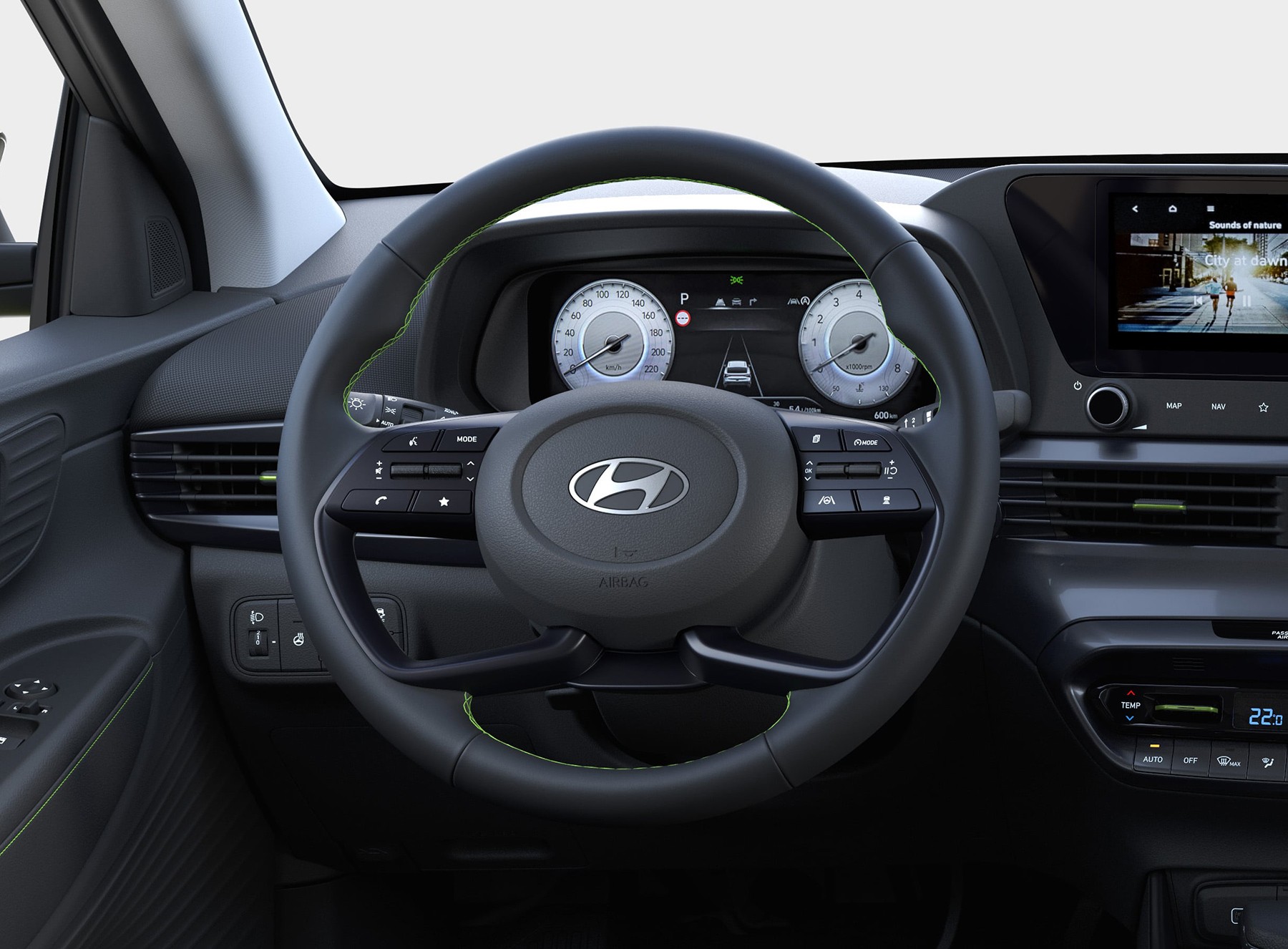 Genomtänkt och bekväm. Kupén i Hyundai i20 är utformad för att ge en känsla av rymd och funktionalitet, med smarta lösningar och gott om utrymme trots bilens kompakta format. Instrumentpanelen har en modern och enhetlig design som förstärker känslan av stil och komfort. Med trådlös uppkoppling, mobilintegration och tillgång till funktioner direkt via pekskärm får du en smidig och uppkopplad körupplevelse varje dag.Exteriör