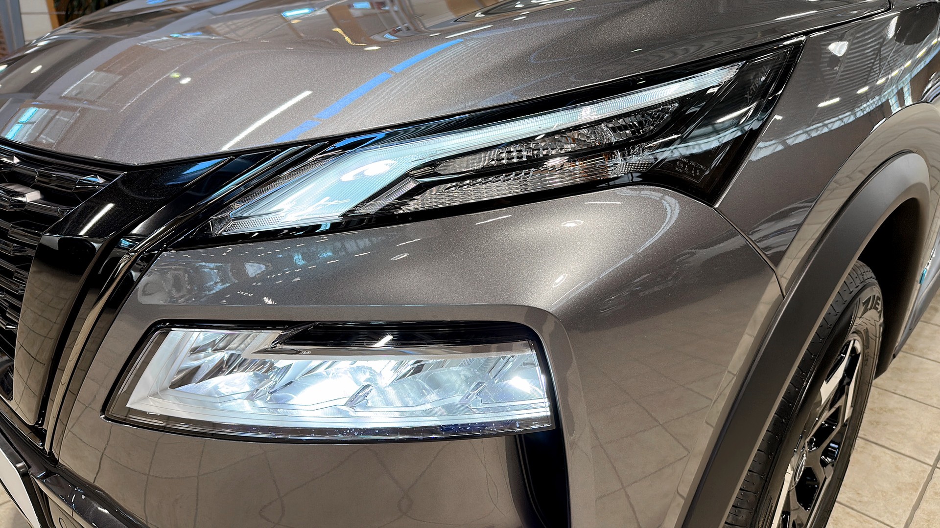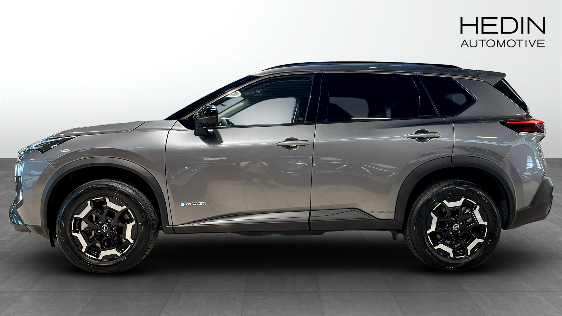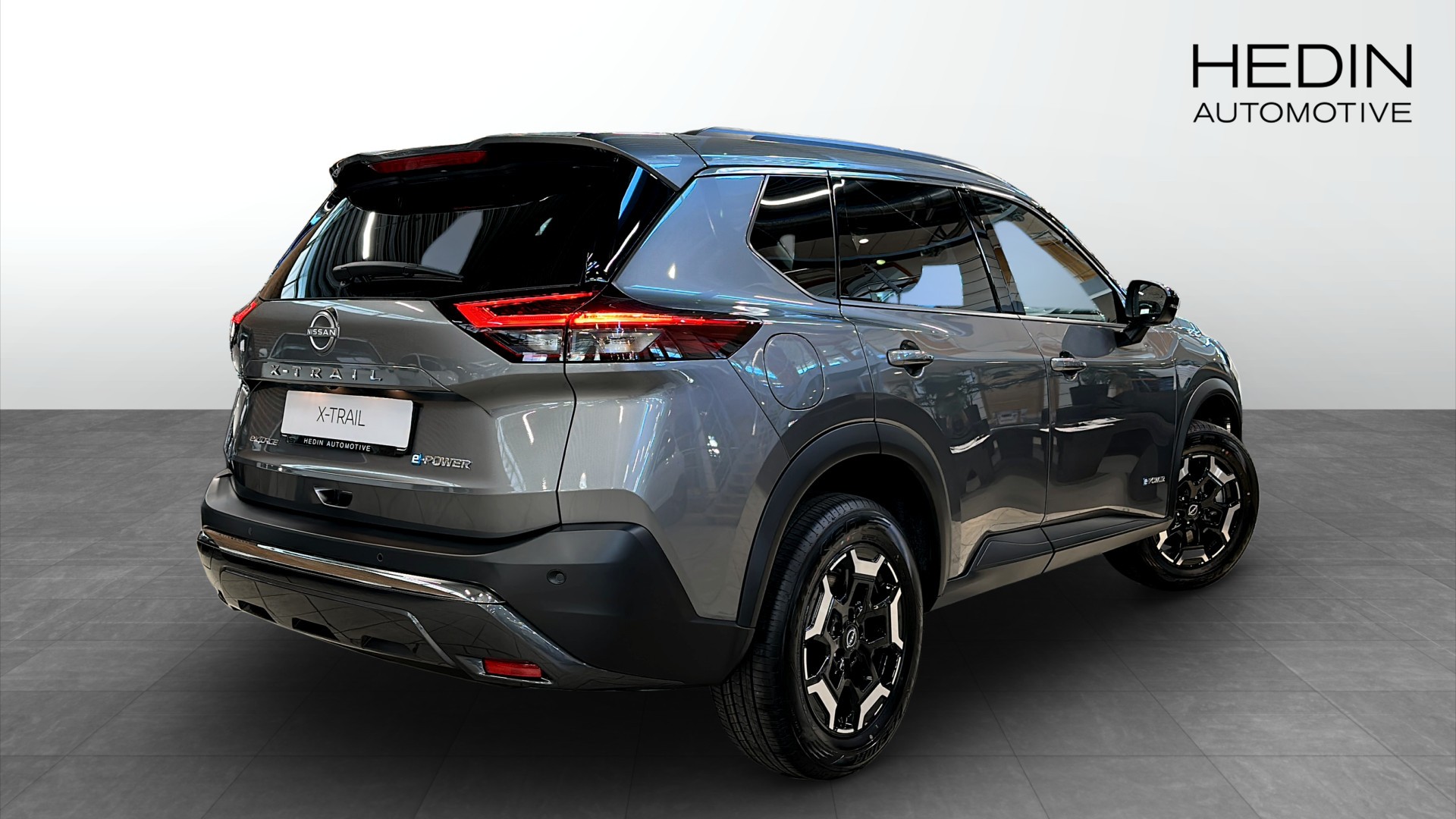 Den grå lacken passar bilens robusta och stilrena uttryck perfekt, och N-Trek-utförandet ger en extra tuff karaktär. Med e-4ORCE fyrhjulsdrift får du trygg och stabil körning året runt, samtidigt som bilen bjuder på hög komfort och smart teknik.