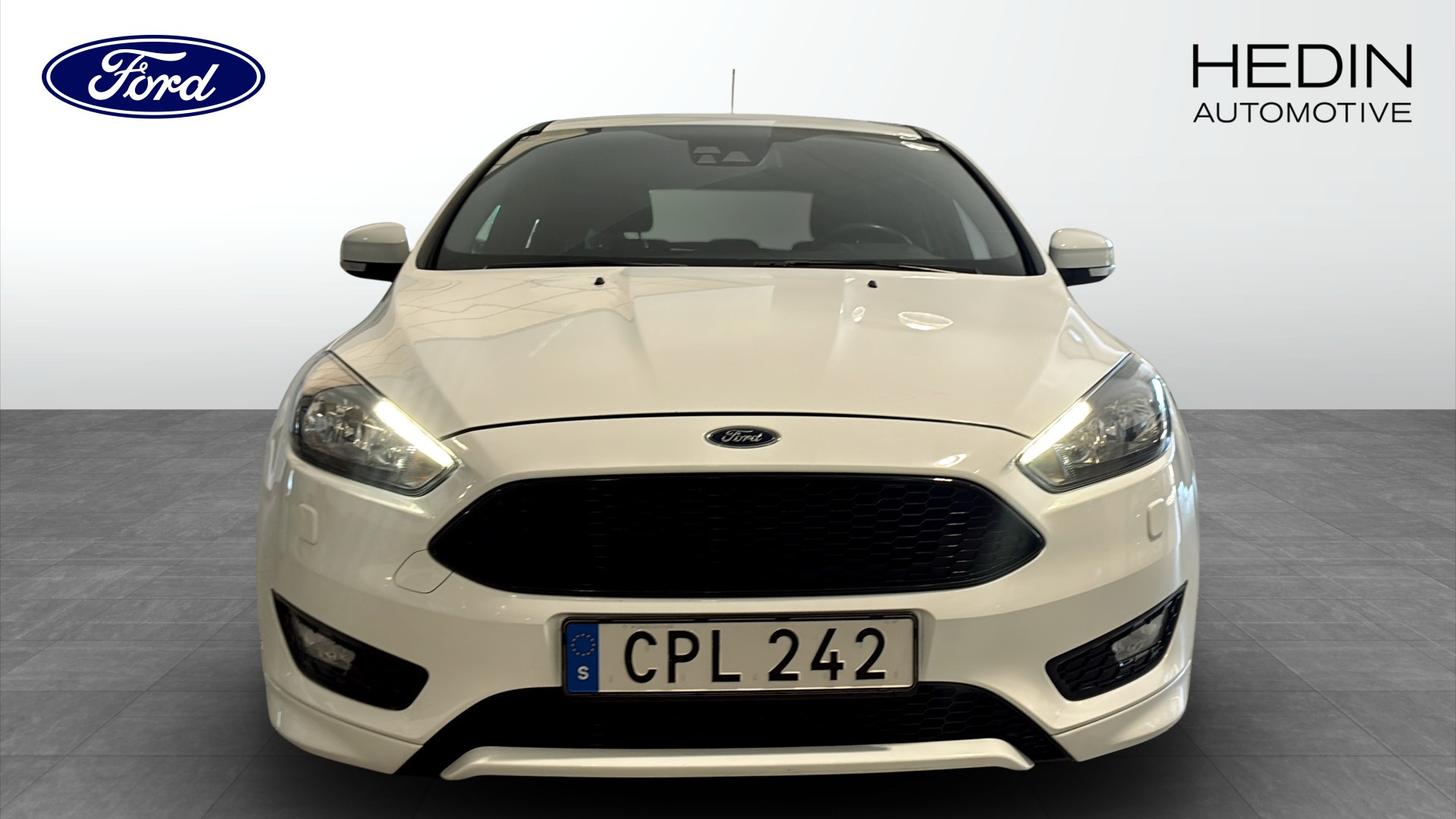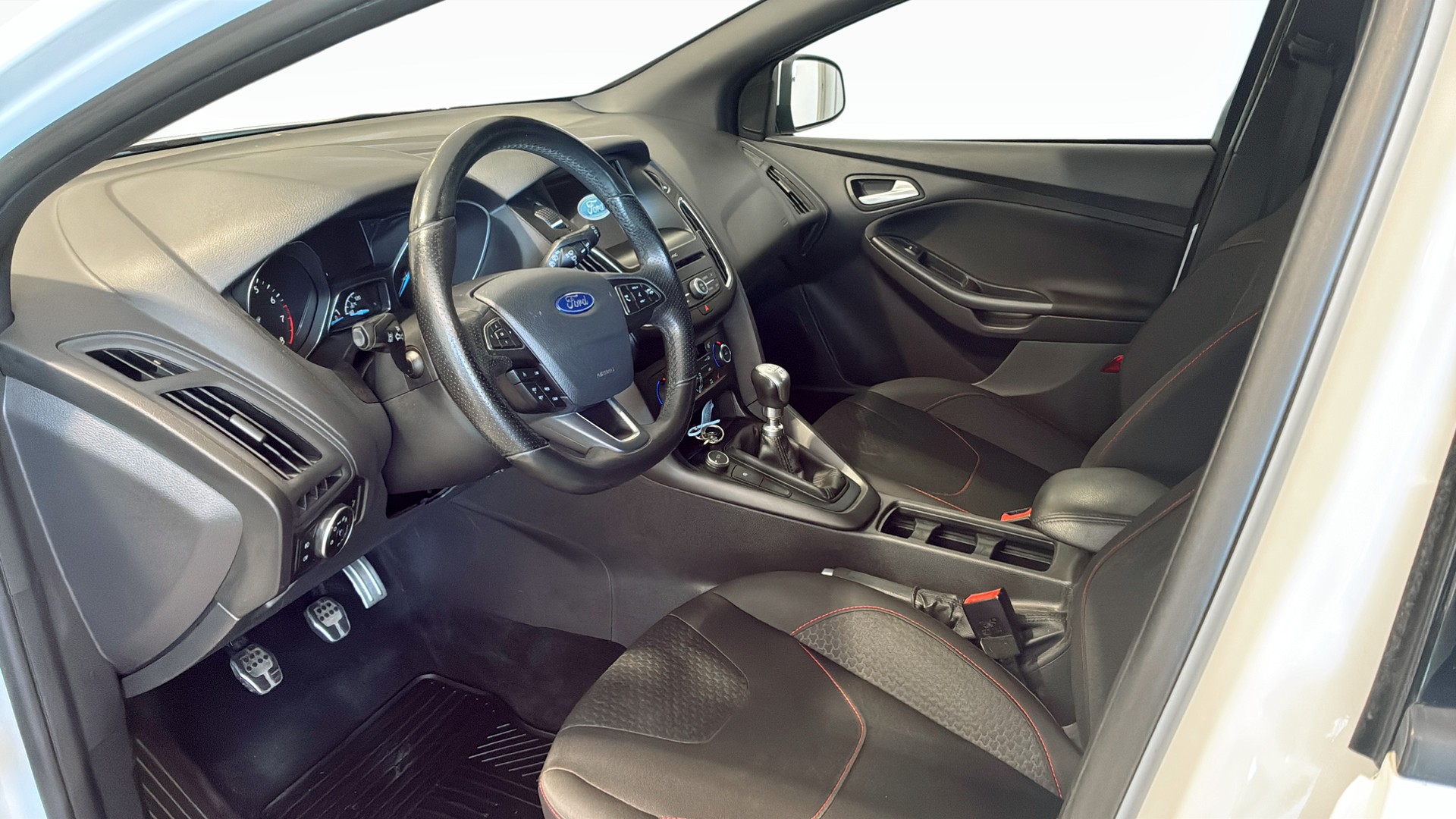 Ford Focus 1.0 EcoBoost 125 hk från 2016 i klassiskt vitt utförande. En populär och lättkörd hatchback med manuell växellåda, framhjulsdrift och bensinmotor som kombinerar pigga köregenskaper med låg förbrukning.