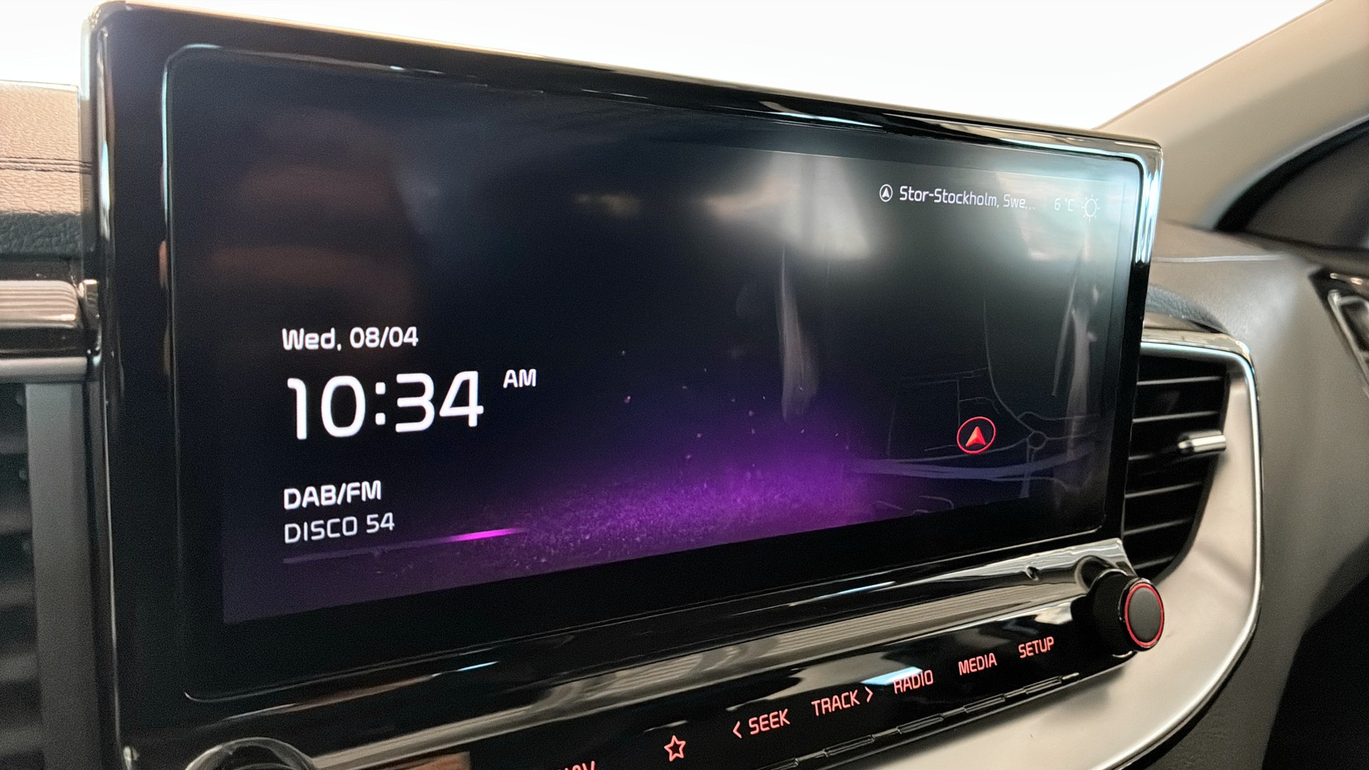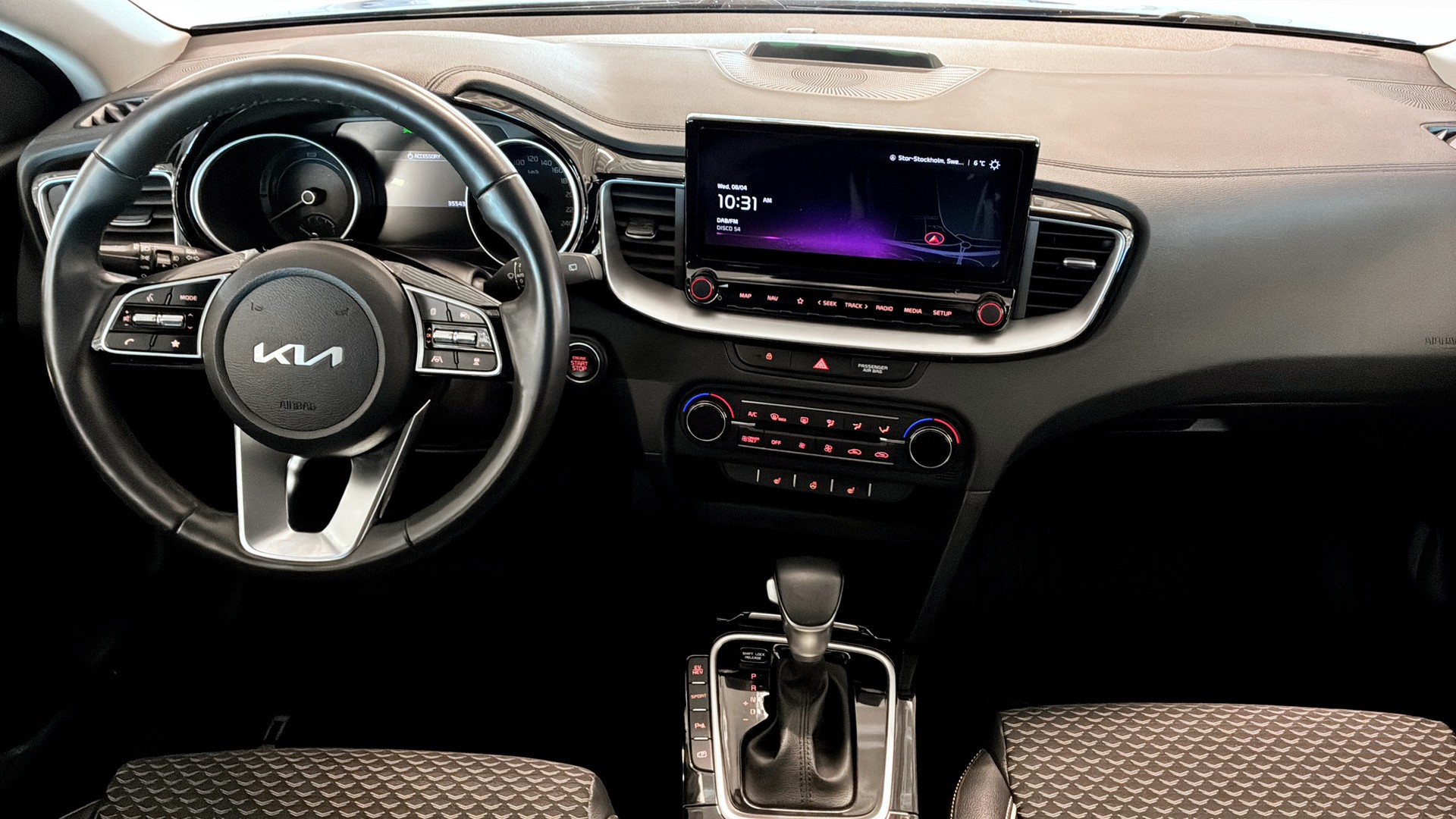 - Pekskärm med GPS, Apple CarPlay/Android Auto, Bluetooth och USB