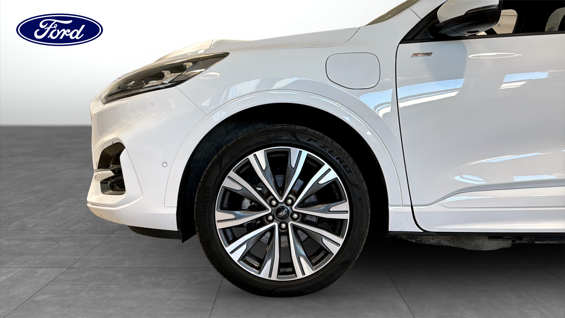 Ford Kuga ST-Line X Plug-in Hybrid 2023 i stilren vit med endast 5555 mil. En välutrustad SUV som kombinerar sportig design, hög komfort och riktigt smidig vardagsekonomi.