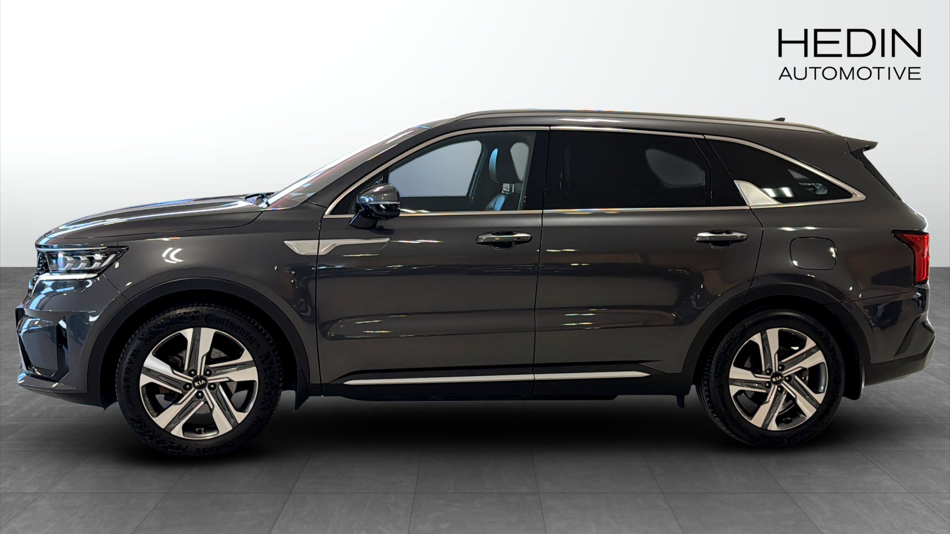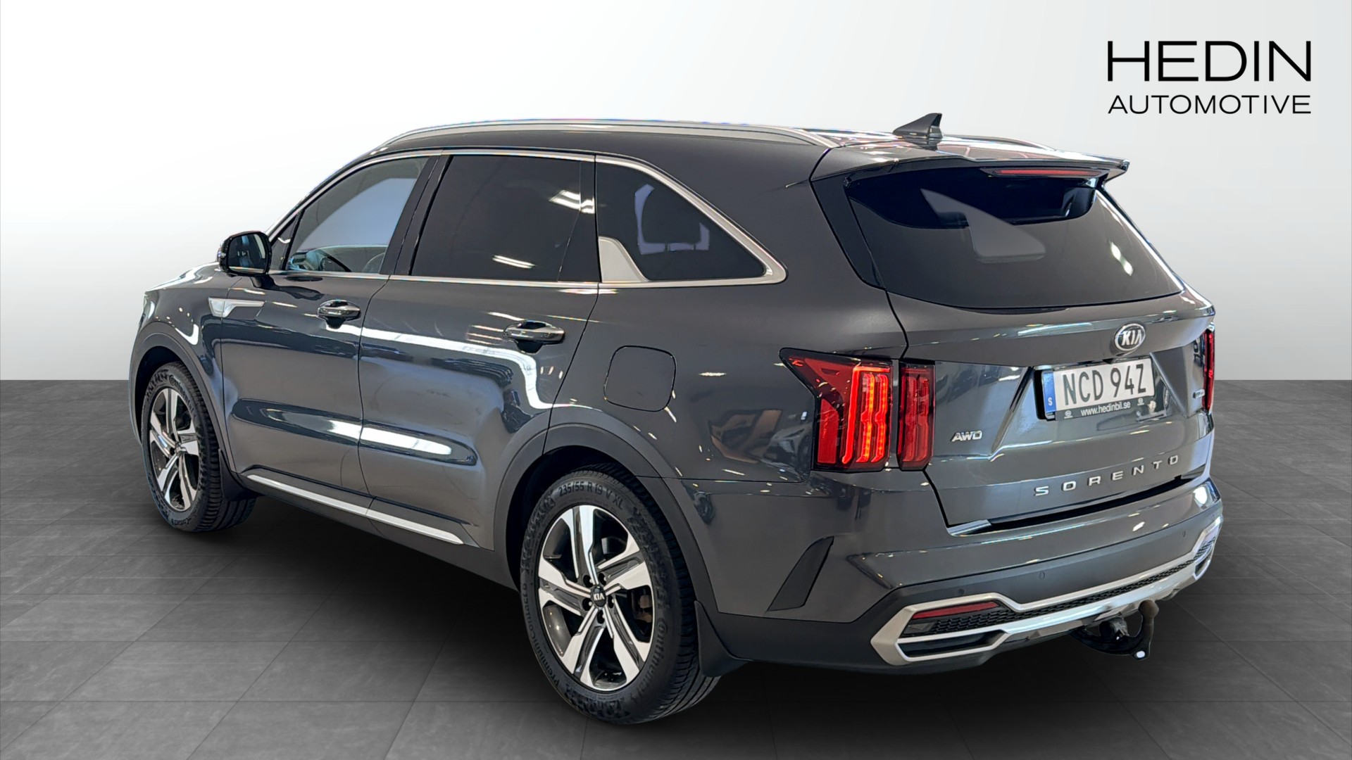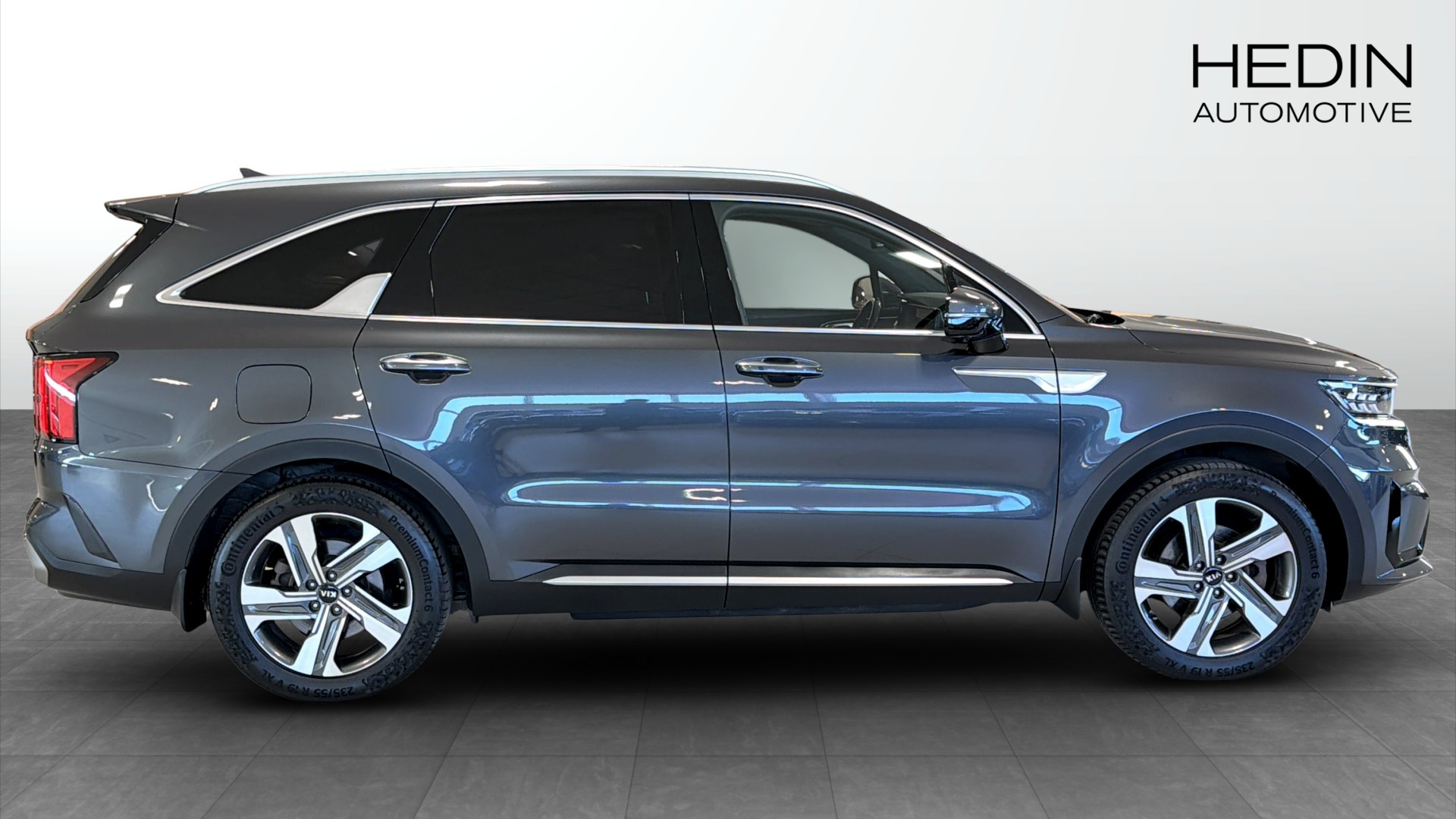 Kia Sorento PHEV AWD Advance Plus, årsmodell 2021, i elegant grå metallic. En rymlig och välutrustad laddhybrid-SUV med sju sittplatser, fyrhjulsdrift och automatlåda – perfekt för dig som vill kombinera komfort, praktiska egenskaper och låg förbrukning.