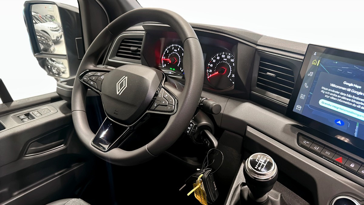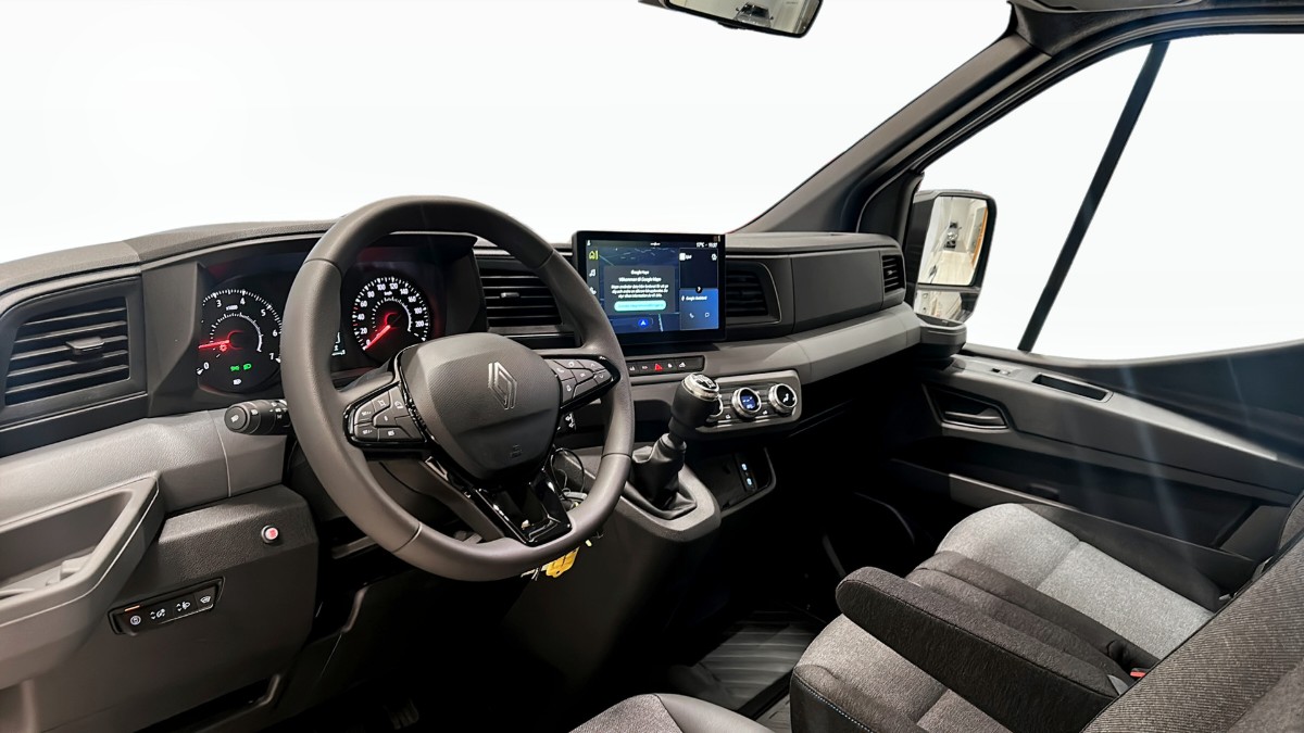 Renault Master är utrustad med avancerade funktioner som en backkamera, digital backspegel och parkeringssensorer bak, fram och på sidorna, vilket gör den enkel att manövrera även i trånga utrymmen. För maximal komfort erbjuder bilen en uppvärmd framruta, fjärrstyrd motorvärmare och en modern 10-tums OpenR-display med Google Maps, Apple CarPlay, Android Auto och röststyrning.