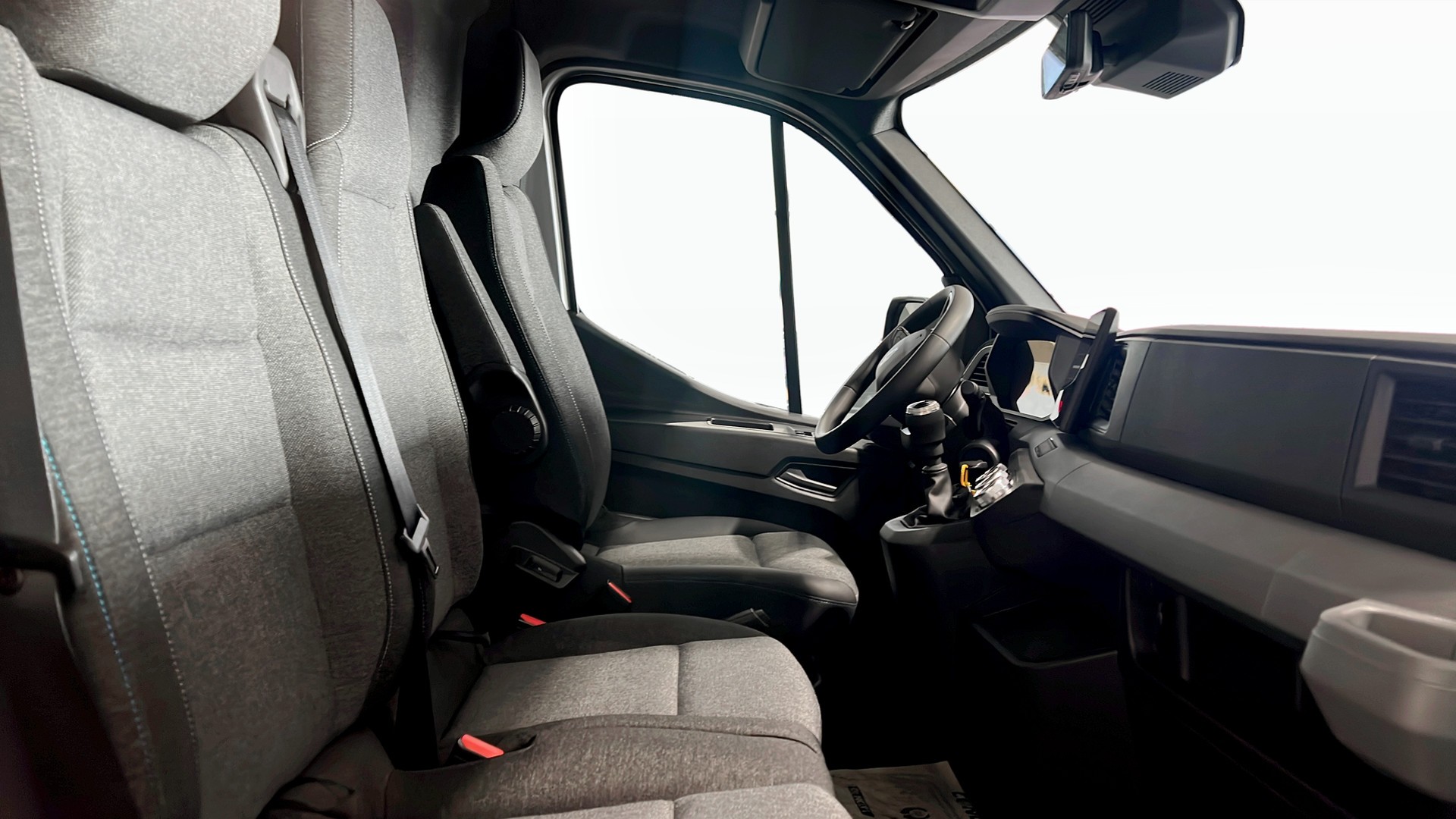 Förarplatsen är genomtänkt med premiumklädsel, förarstol med arm- och svankstöd, passagerarbänk med förvaring, sätesvärme, automatisk luftkonditionering, elhissar, eljusterbara backspeglar och flera smarta förvaringsfack.