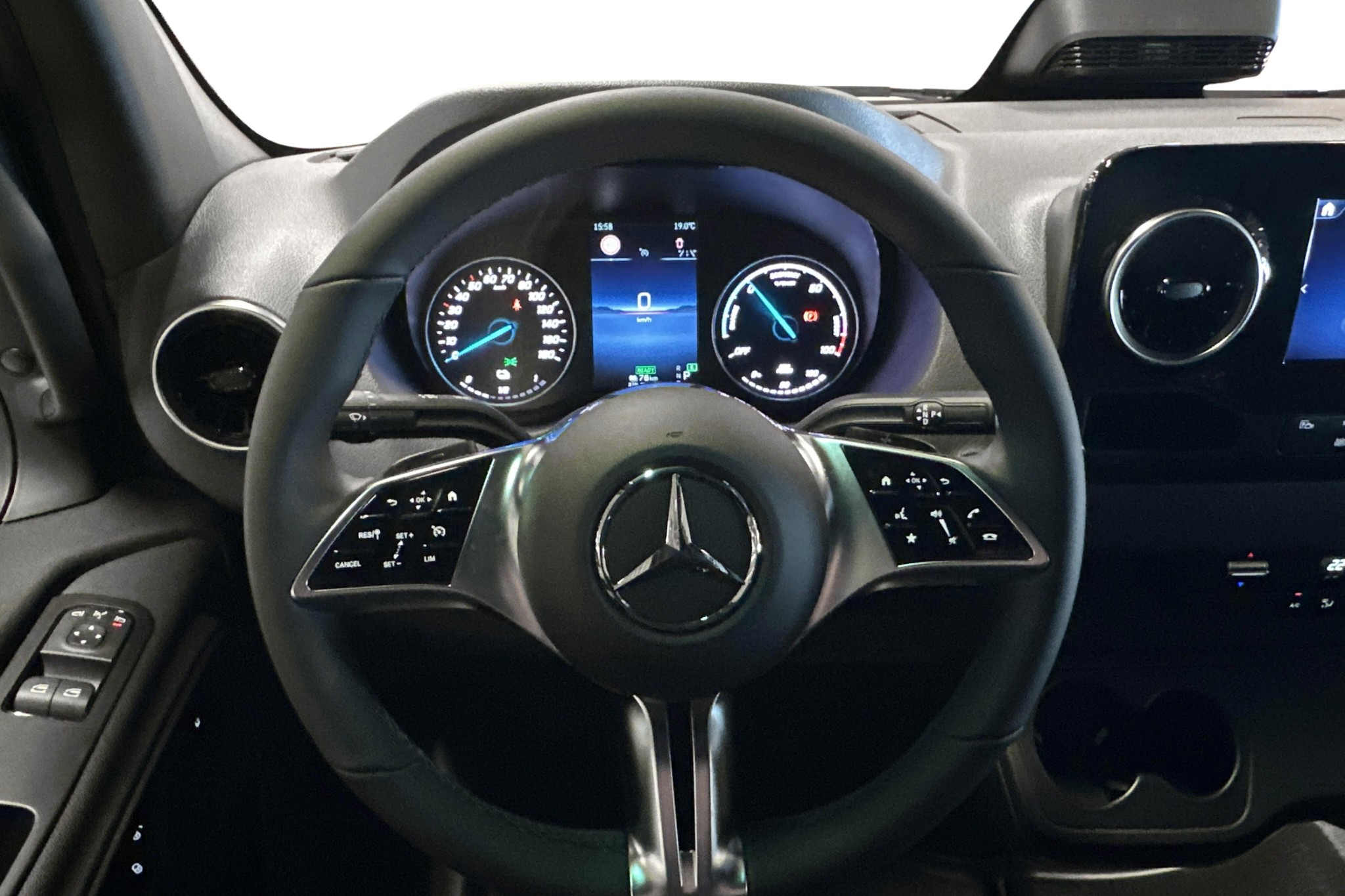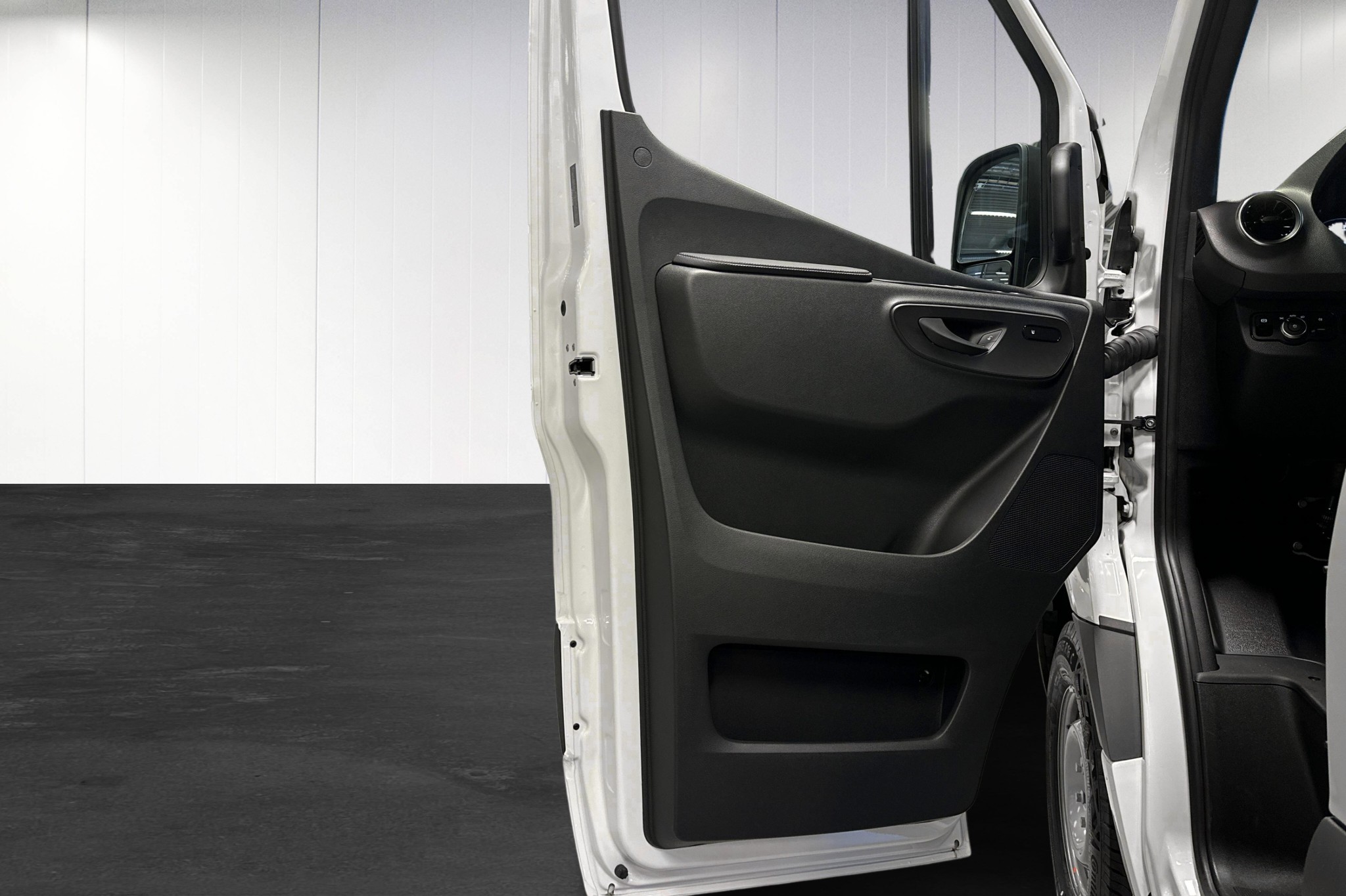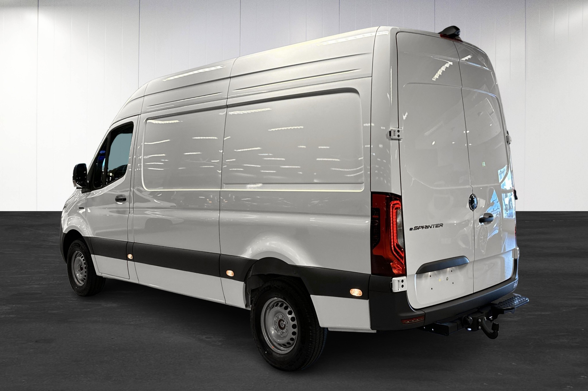 Den vita eSprinter har plats för tre personer och erbjuder klassledande förar- och passagerarkomfort med funktioner som integrerad MBUX-multimedia, uppvärmd multifunktionsratt och ett komfortsäte för föraren. Högvoltsbatteriet på 81 kWh ger rejäl kapacitet, och med DC-snabbladdningsmöjligheter kan du snabbt vara på vägen igen.