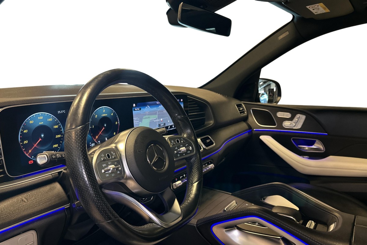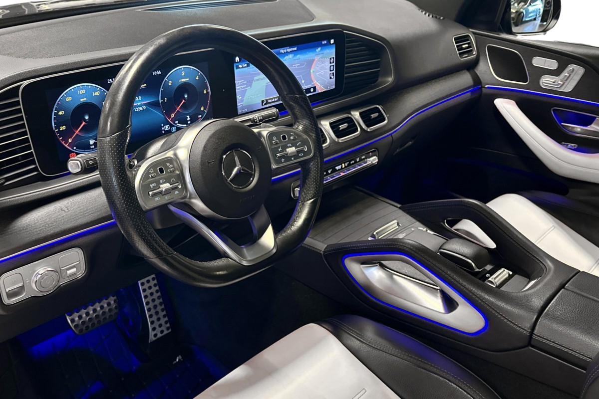 Elegant klädd i svart och utrustad med AMG Line för både exteriör och interiör, erbjuder den en sportig och sofistikerad känsla. Den har bara gått 13 288 mil och är fullmatad med premiumfunktioner, som panoramatak, adaptiv farthållare, 360-graders kamerasystem, AIRMATIC luftfjädring och dragkrok – redo för både stadspuls och lantliga äventyr.