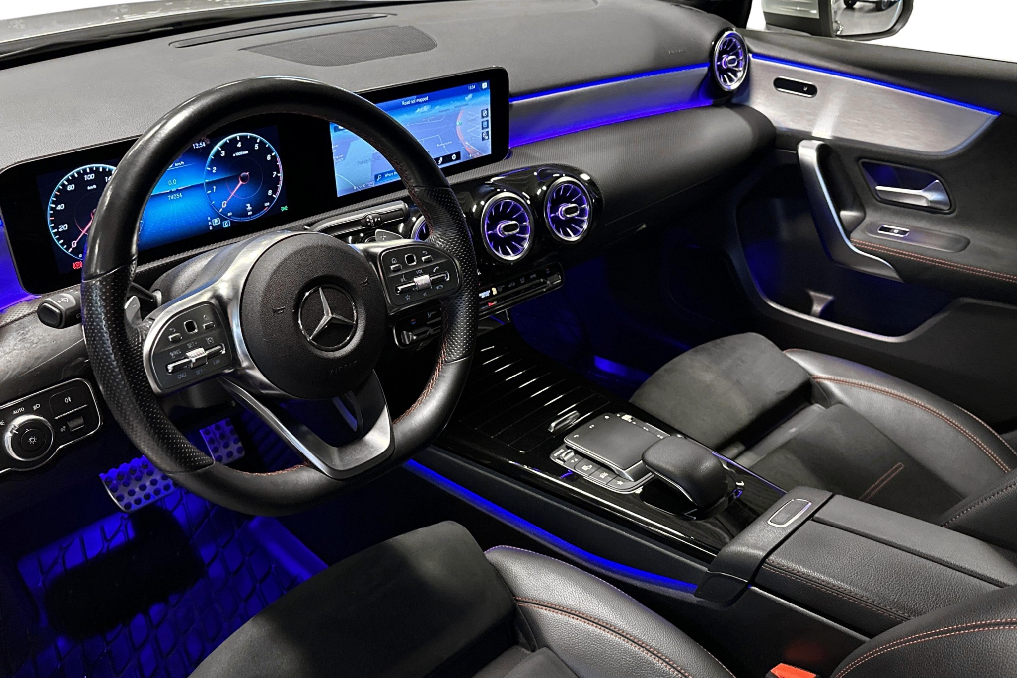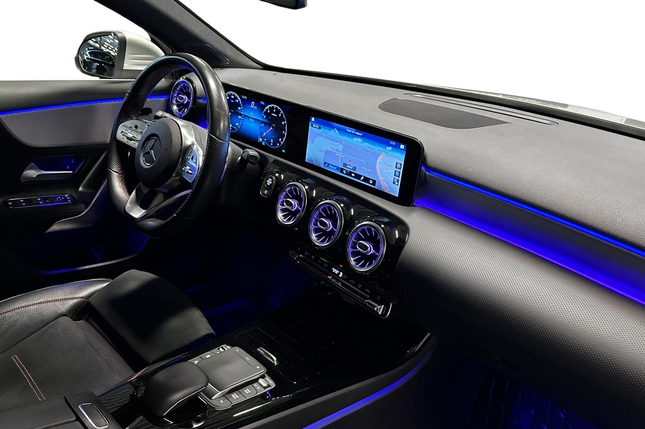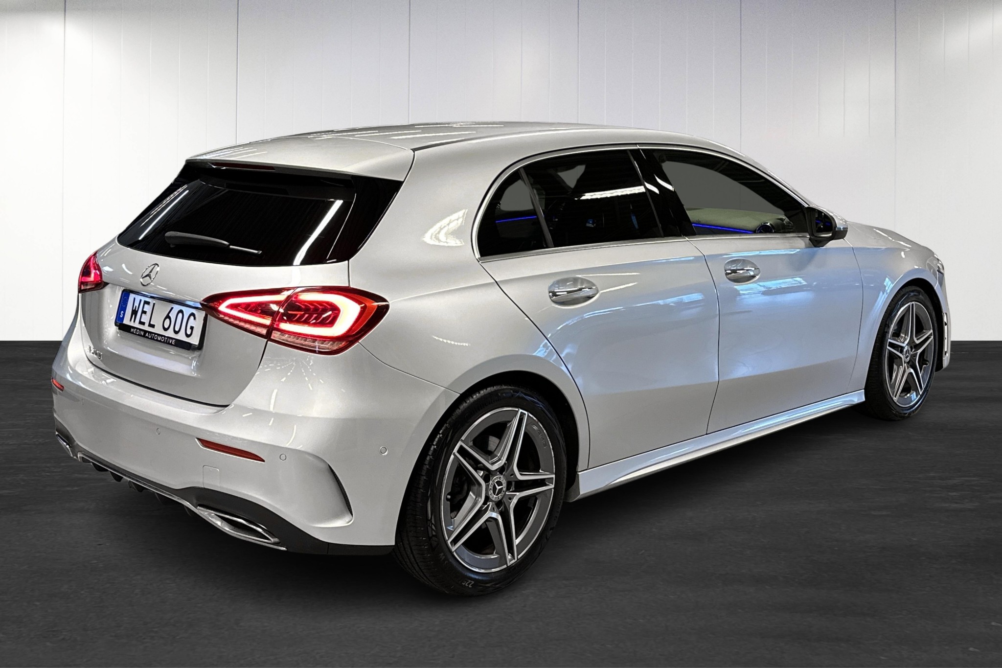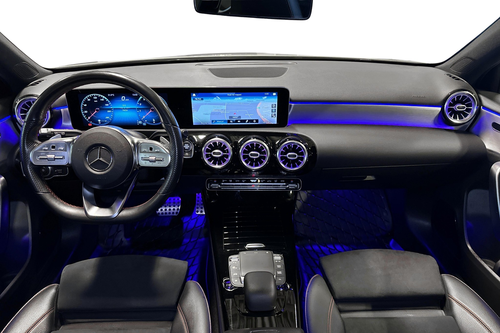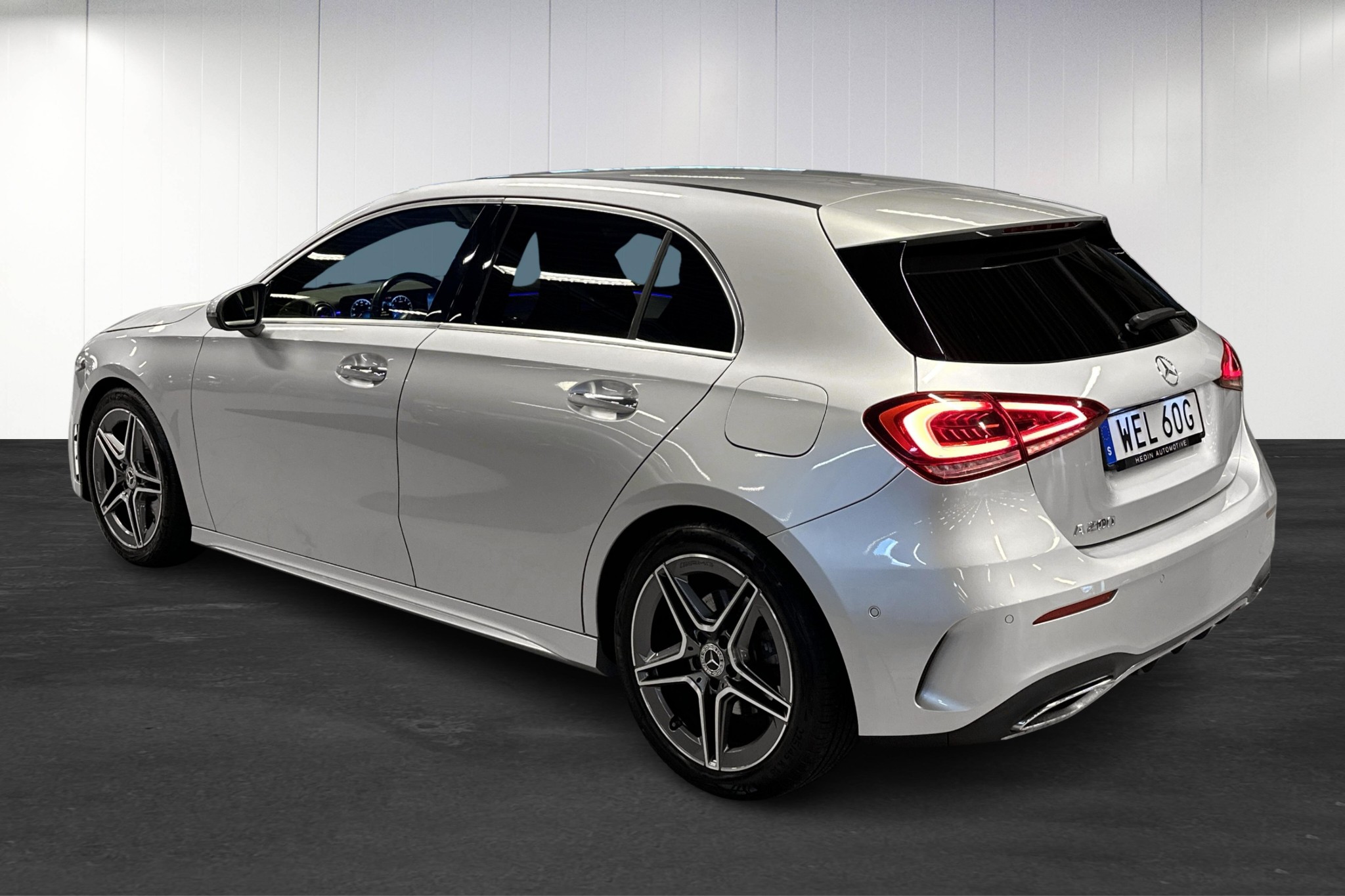 Interiören imponerar med MBUX multimediesystem, sofistikerad panelbelysning i 64 färger och bekväma eluppvärmda stolar med förstklassigt säteskomfortpaket. Höj säkerheten och komforten med aktiv parkeringsassistent, backkamera, och farthållare med hastighetsbegränsare. Exteriört skiljer sig bilen med sina sportiga AMG-lättmetallfälgar**, mörktonade rutor, och LED High Performance-strålkastare.