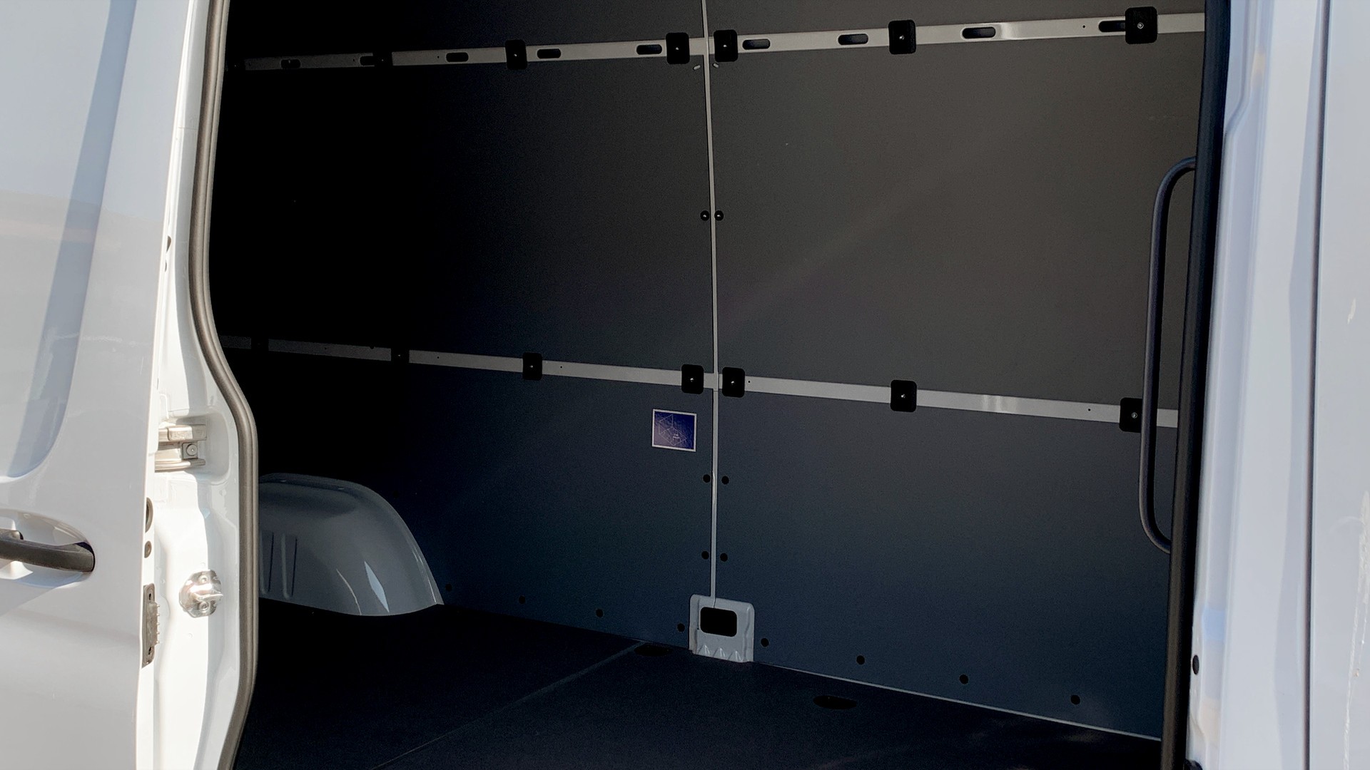 Bilen har ett generöst lastutrymme med trägolv och dessutom inklädda väggar, vilket gör den idealisk för professionell användning.