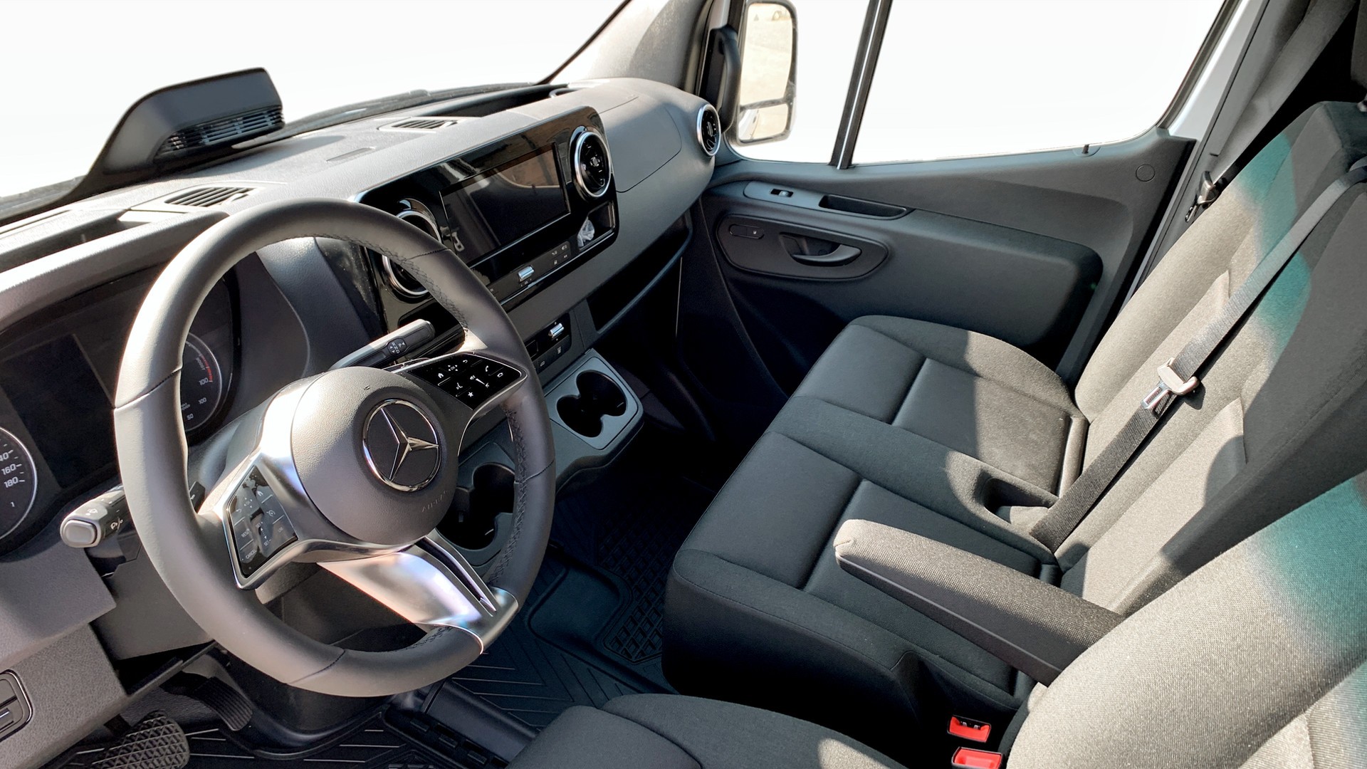 Dessutom möjliggör AC-laddning på 11 kW och DC-snabbladdning på 110 kW snabba och smidiga laddningar. E Sprinter är även utrustad med en modern MBUX multimediaskärm och smart förklimatisering – perfekt för den moderna företagaren.