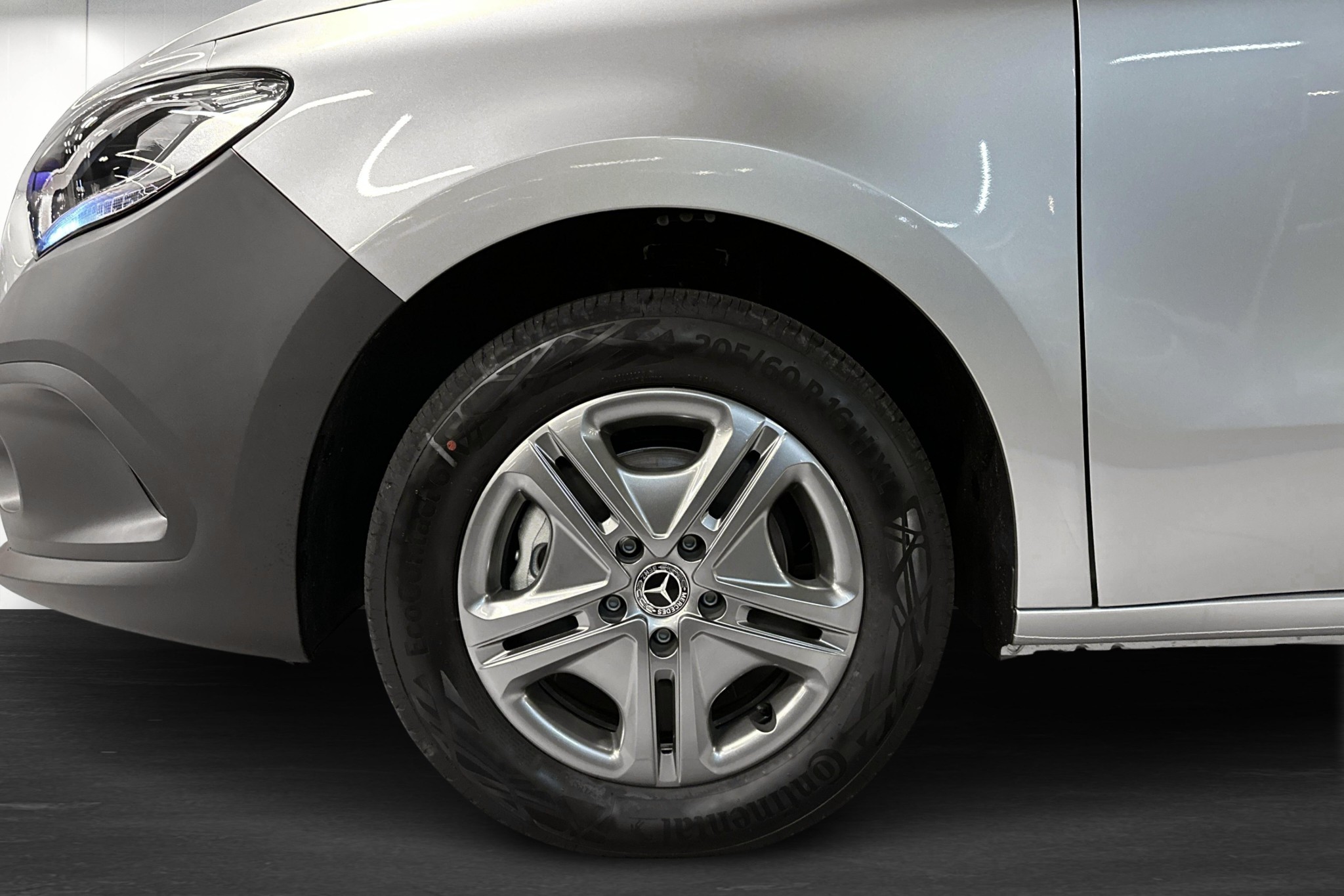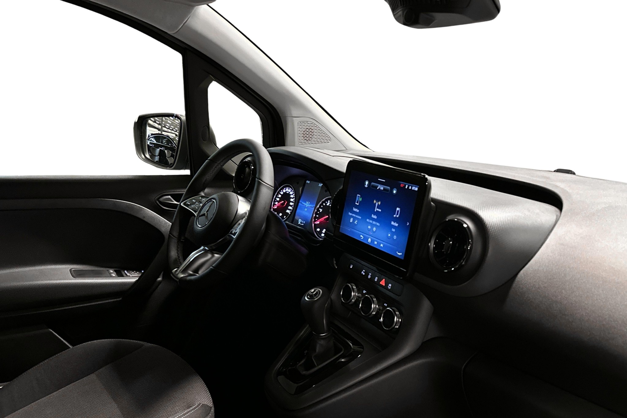 Invändigt rymmer bilen tre säten och är fylld med moderna funktioner som backkamera, digitalt MBUX-multimediasystem med en 9,5-tums skärm, LED-belysning och uppvärmd vindruta för optimal komfort och bekvämlighet. Exteriören kännetecknas av en stilren design, utrustad med en praktisk skjutdörr och vinterpaket som förbereder dig för alla väderförhållanden.