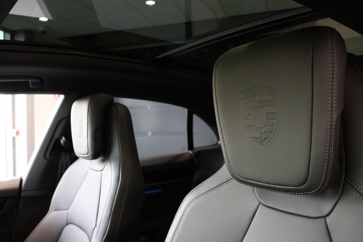 - Porschevapen präglade på nackstöd