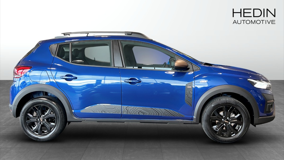 Upptäck nya Dacia Sandero Stepway Extreme DCT 2025, en modern och stilren hatchback i en unik och iögonfallande "Blå Iron". Med en bränslesnål bensinmotor på 91 hk och en smidig automatisk växellåda får du både bekvämlighet och pålitlighet i alla körsituationer.