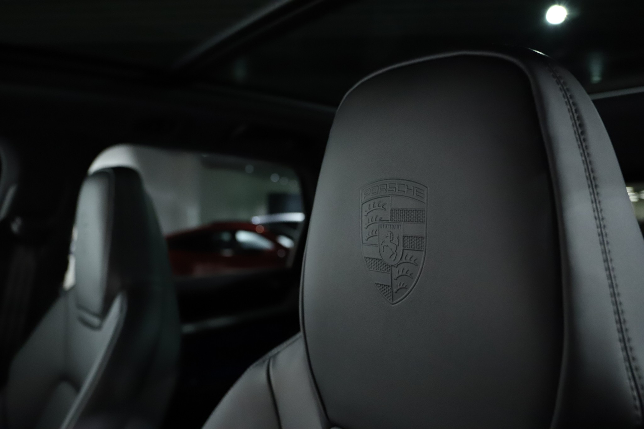 - Porschevapen präglade på nackstöd