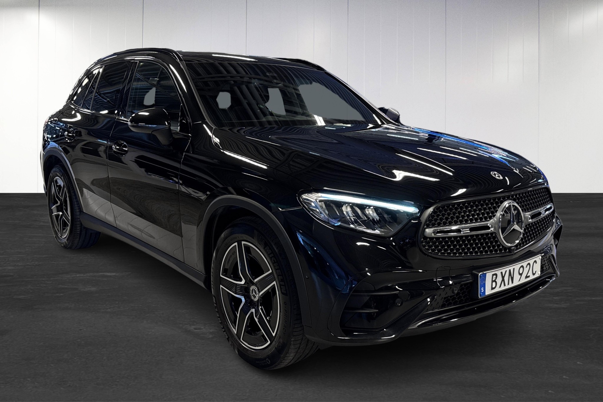 Mercedes-Benz GLC 220 d 4MATIC AMG Line, årsmodell 2023, i elegant Obsidiansvart metallic – en nästan ny bil med endast ca 4425 mil på mätaren. Här får du en sportig, välutrustad premium-SUV med stark och snål dieselmotor, 9G-Tronic automatlåda och trygg fyrhjulsdrift för alla väder.